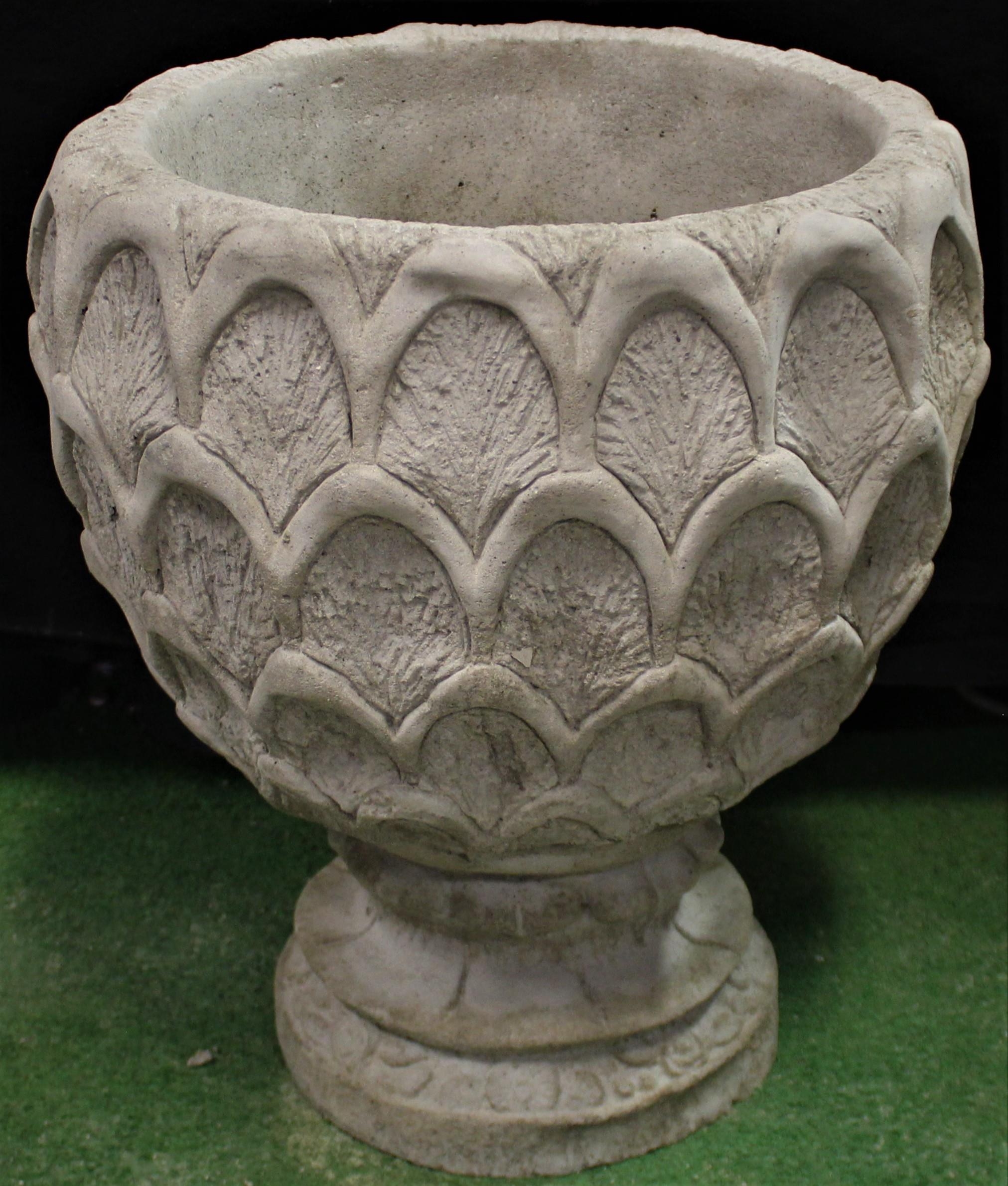 DEEP STONEWORK PINEAPPLE PATTERN PLANTER ON CIRCULAR BASE (COMES IN 2 PIECES) (H50, W38cm) WITH OPTION OF LOT 2