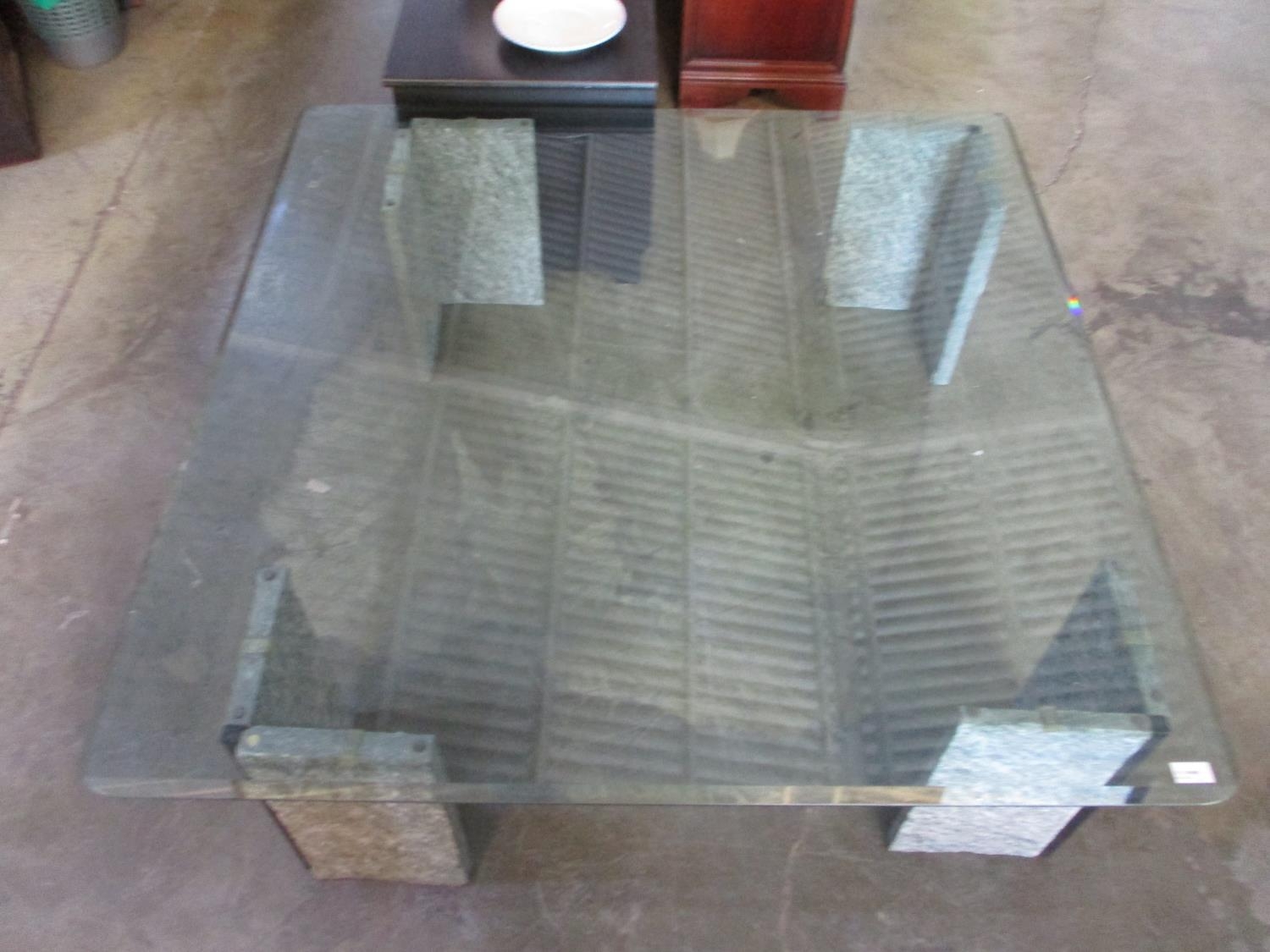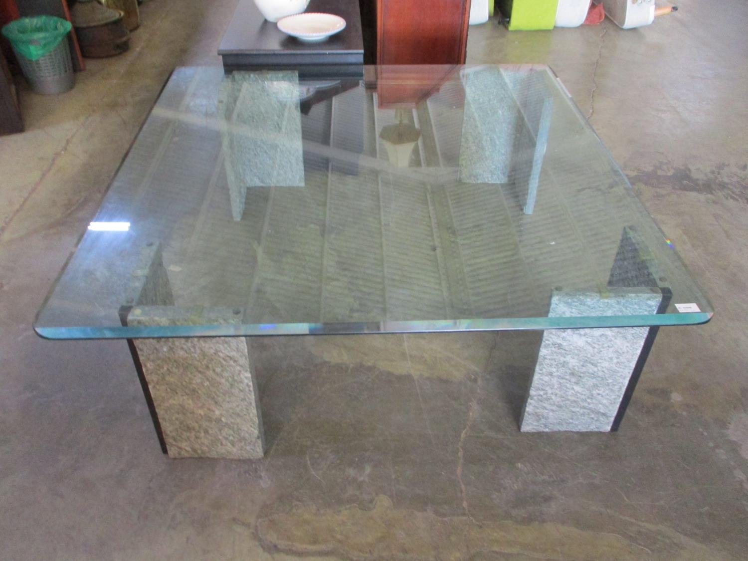 Bevelled Edged Glass Coffee Table with Granite Legs (Size: 120cm x 120cm)