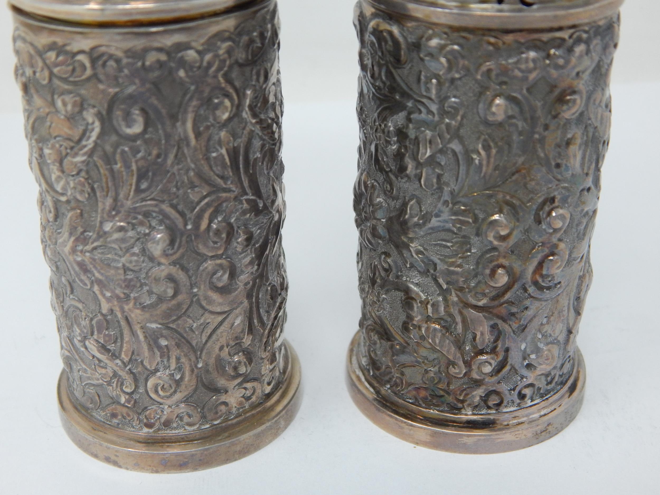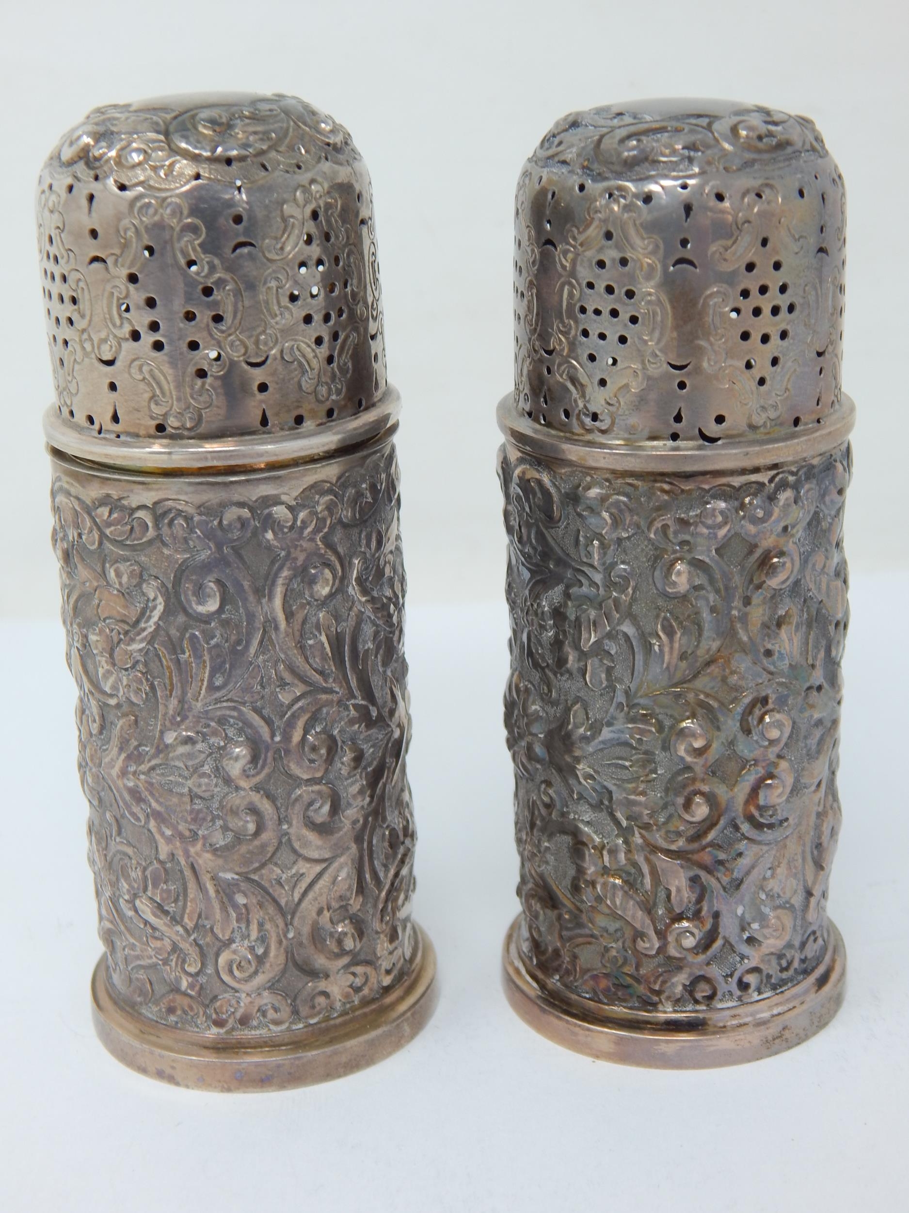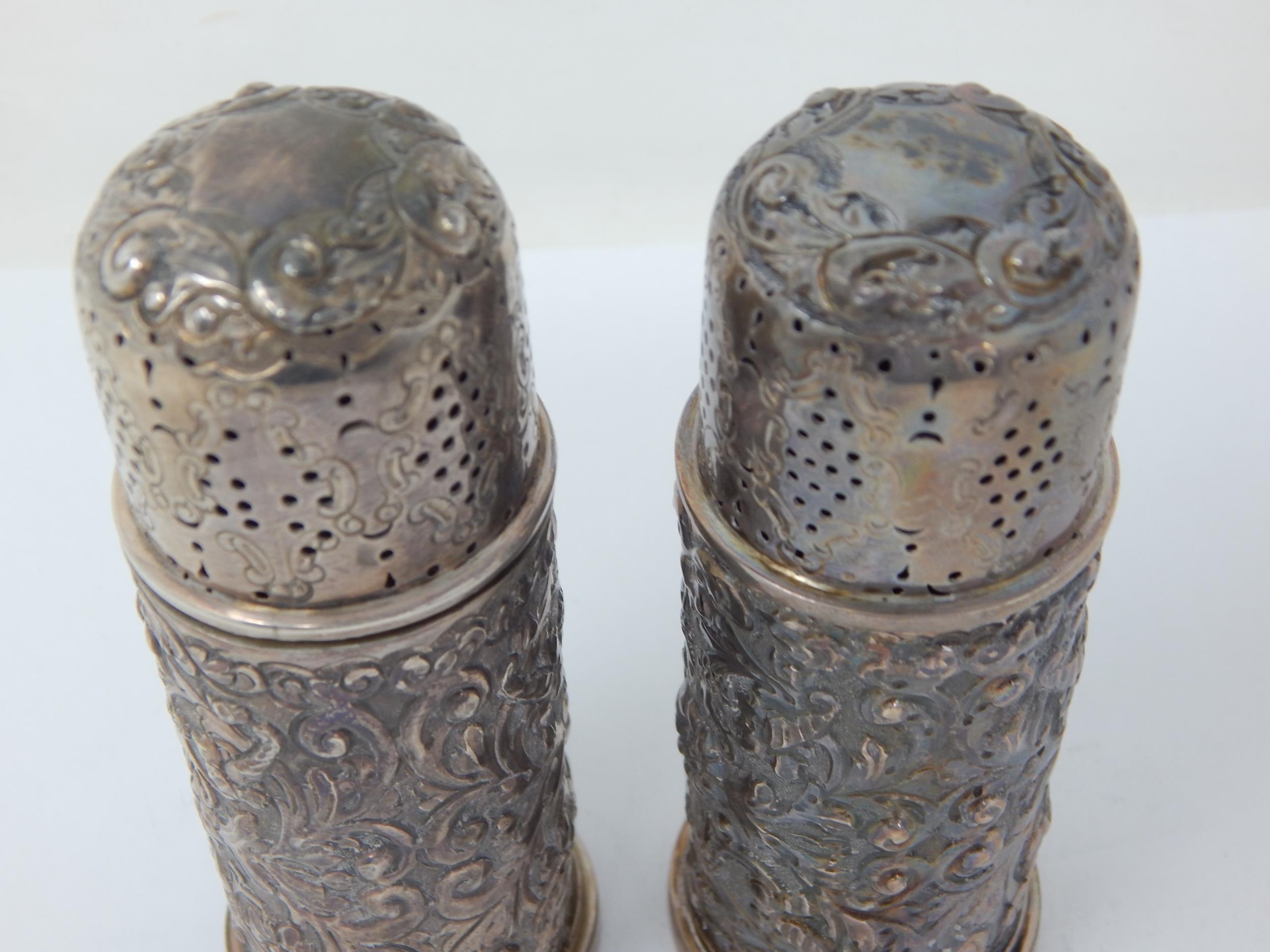 Pair of Victorian Silver Pepper Casters: Hallmarked London 1892 by Edgar Finley & Hugh Taylor: 10cm high: Weight 134g