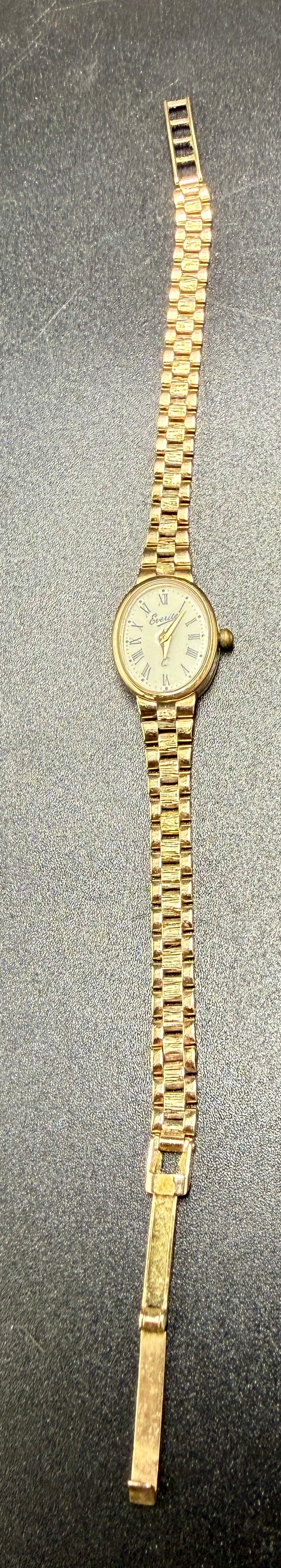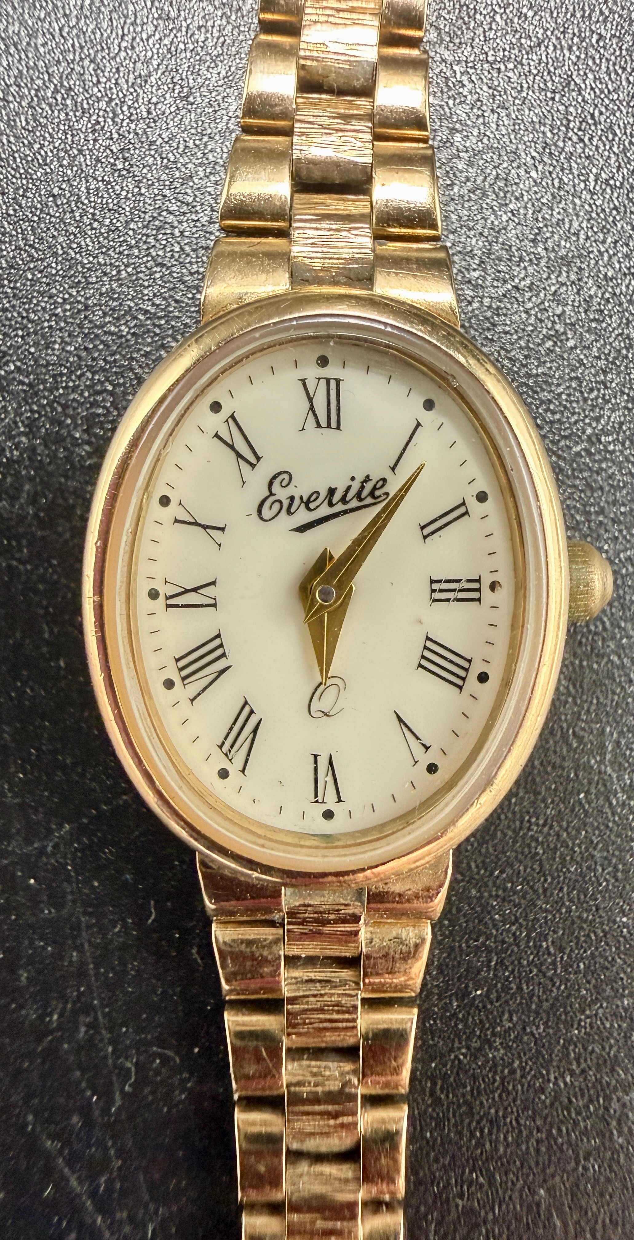A 9 carat gold cased ladies Everite wristwatch with a 9 carat gold bracelet strap. Total weight 14.6gm.