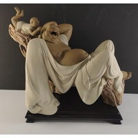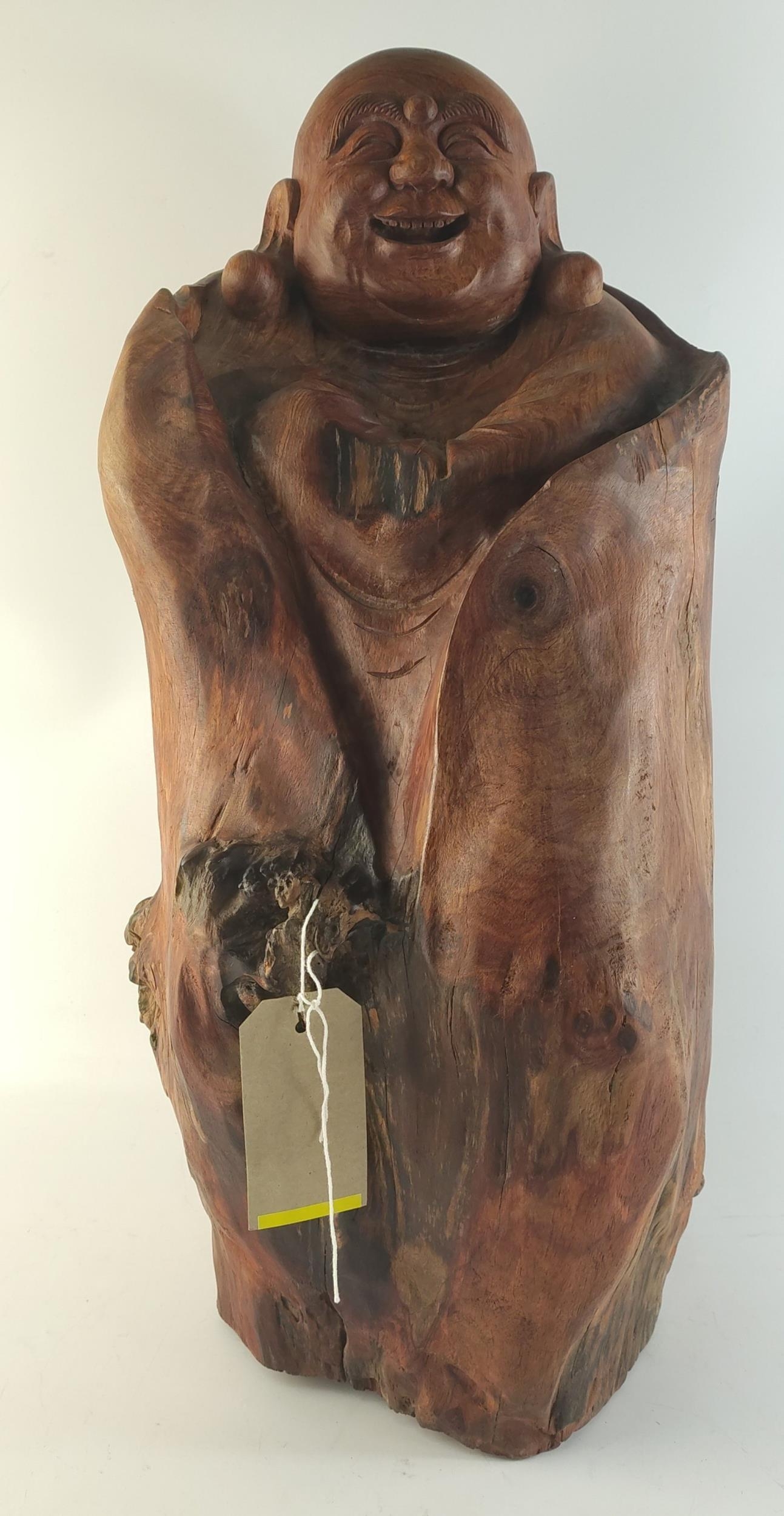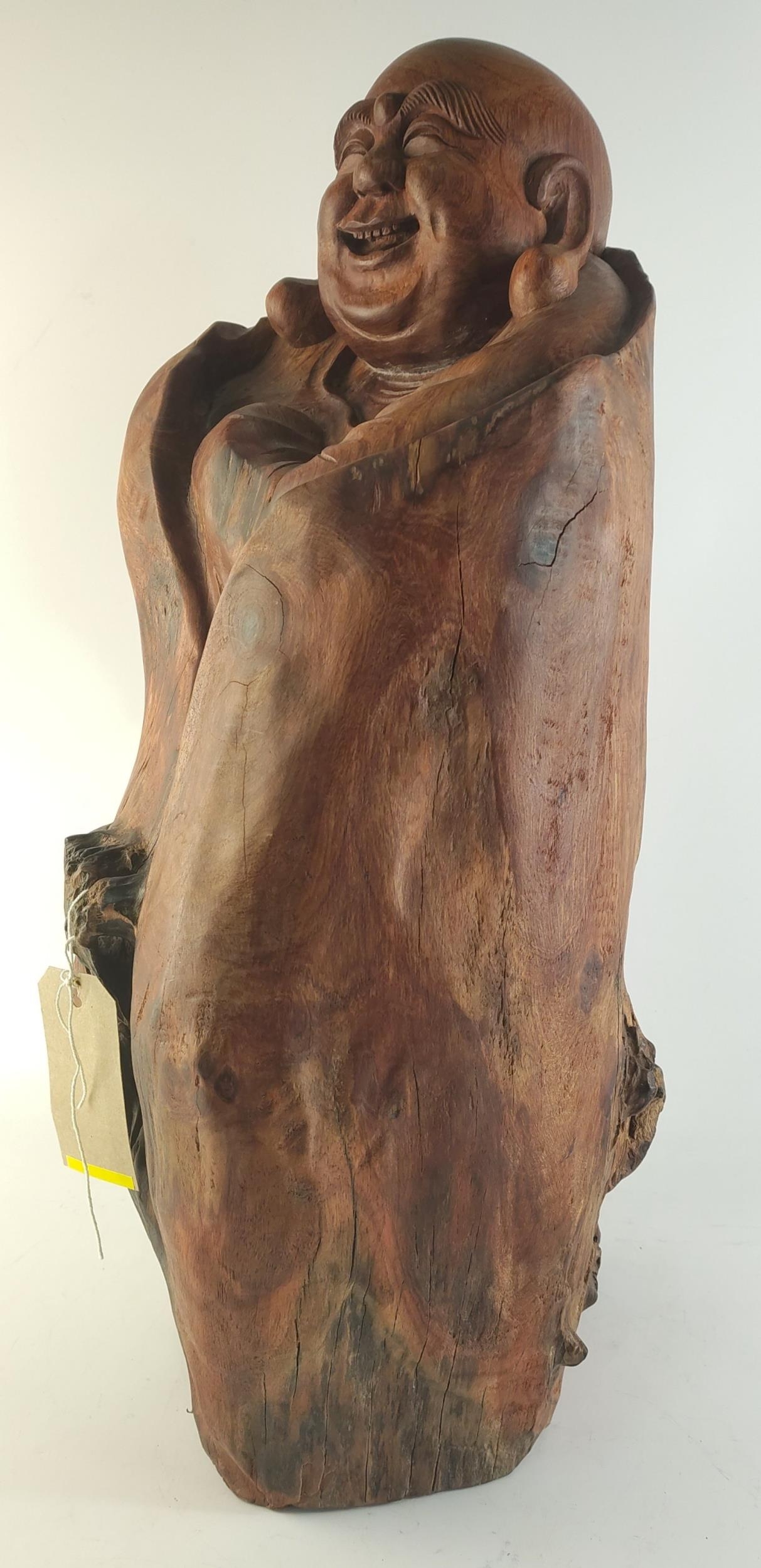 A rare hand-made wooden BUDDHA carved from one piece of beautifully grained wood. Origin Thailand. Circa 1990s. Condition very good.