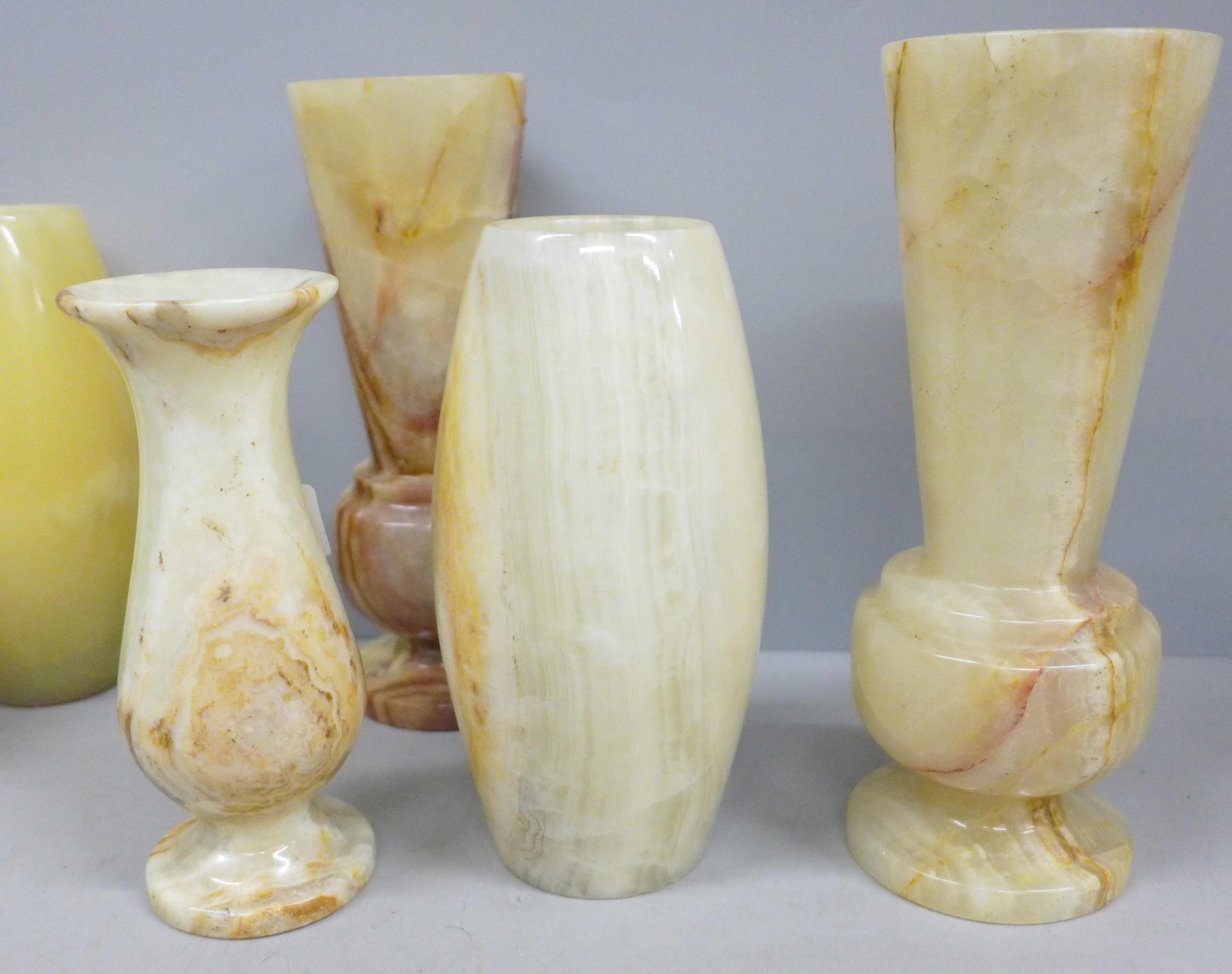 A collection of onyx vases, Turkish, seven in total, two a/f *Not for Posting and Packing*