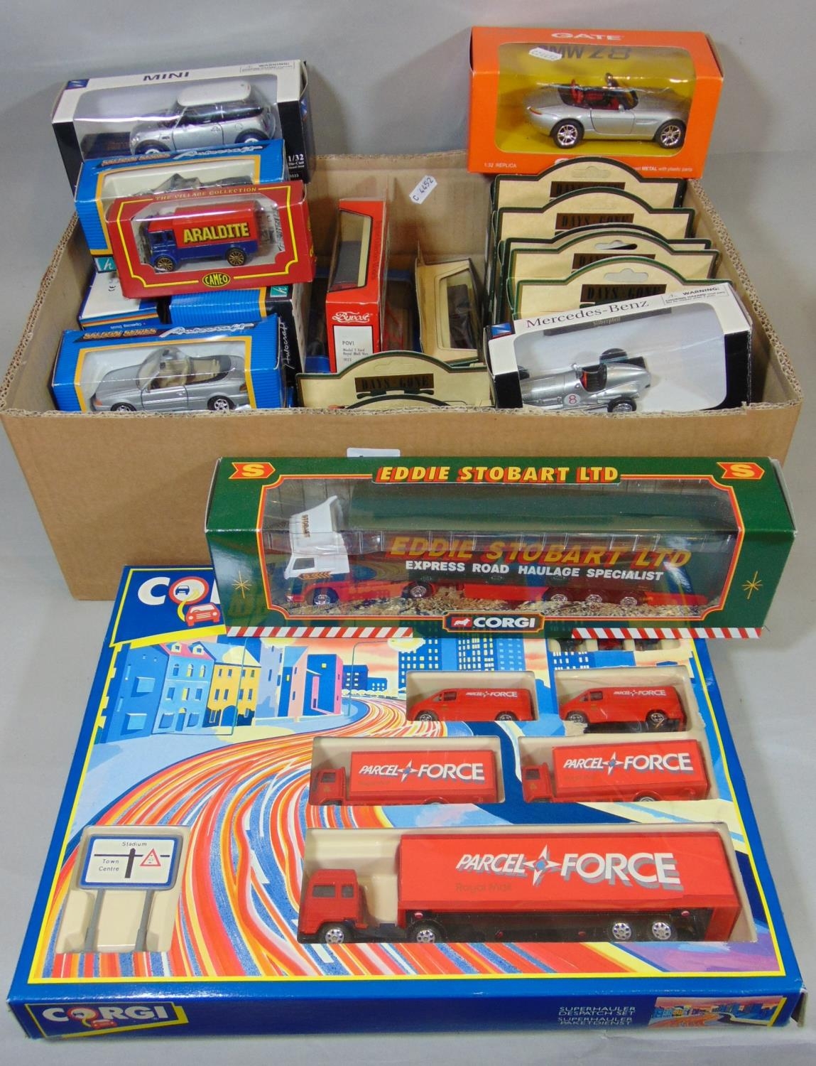 Collection of boxed model cars including Corgi Superhauler set 92610, corgi Eddie Stobart 59504, cars by Auto craft, Super Racer and Days Gone etc (approx 30)