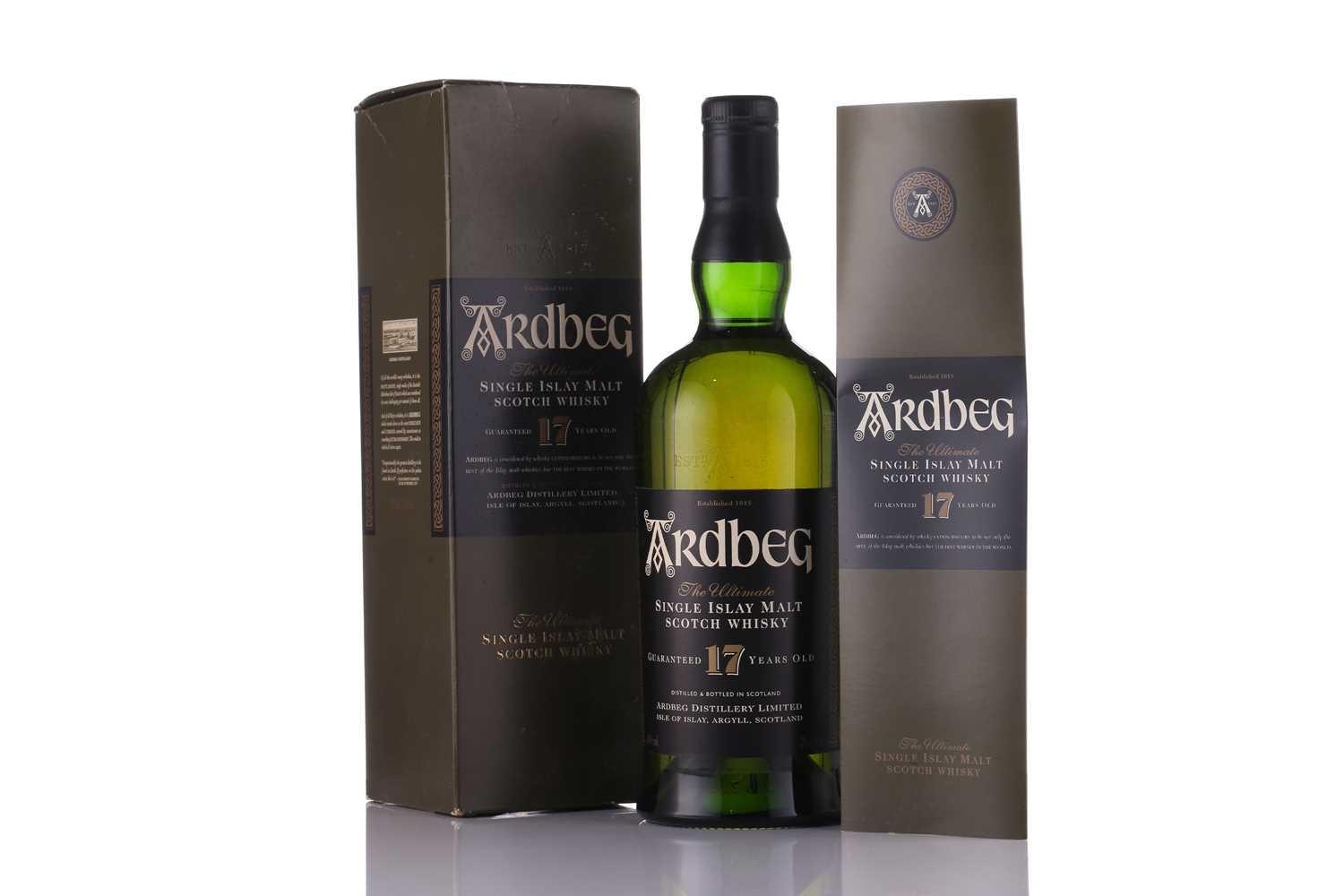 A bottle of Ardbeg Single Islay Malt, Scotch Whisky, 17 years old, 40% Vol, 70cl, in a carton