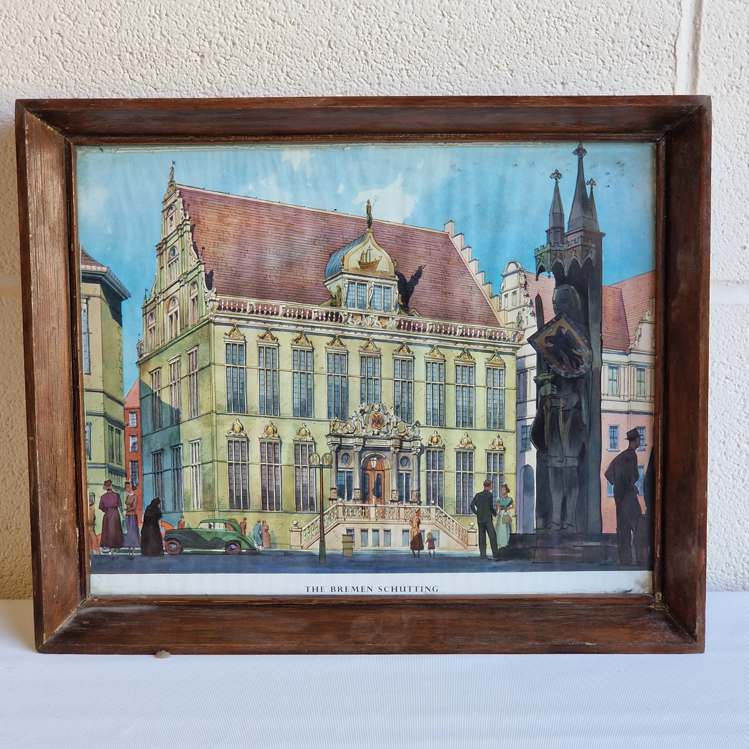 FRAMED PRINT OF A WATERCOLOUR DEPICTING BREMEN MARKET SQUARE, GERMANY