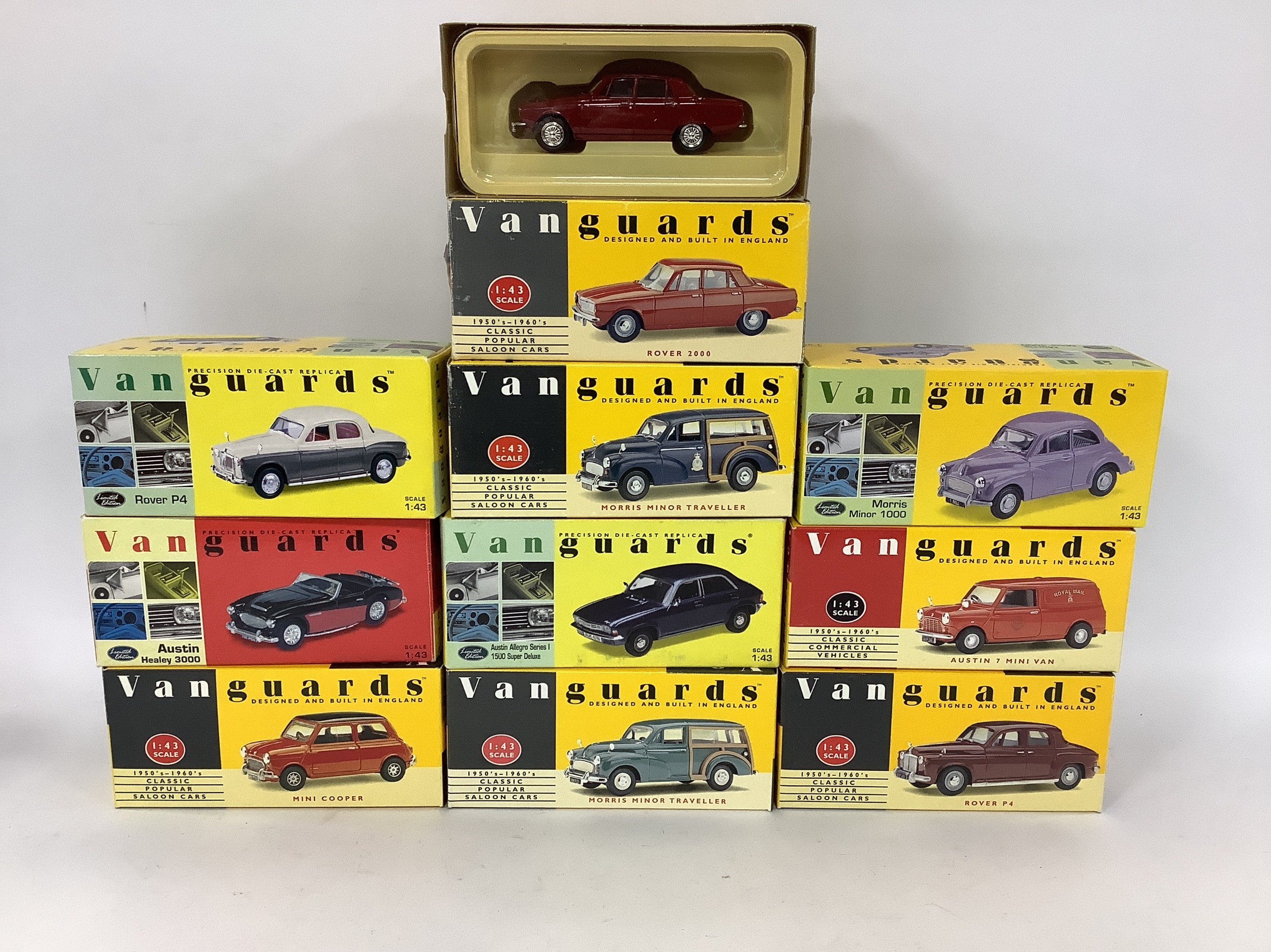 Ten Lledo Vanguards 1:43 Scale Diecast Model Cars to include Austin Allegro Series 1 1500 Super Deluxe, Rover 2000, boxed.