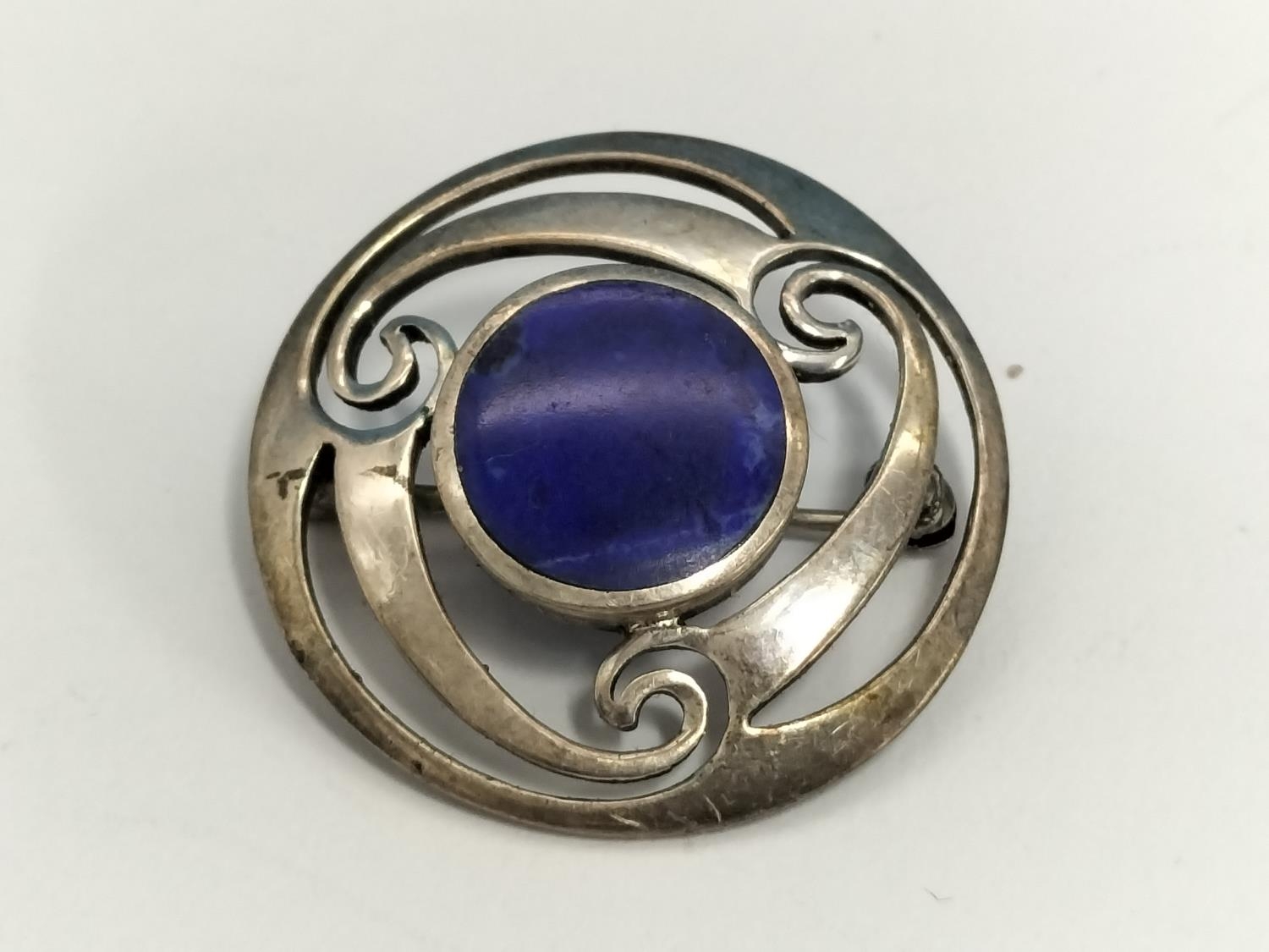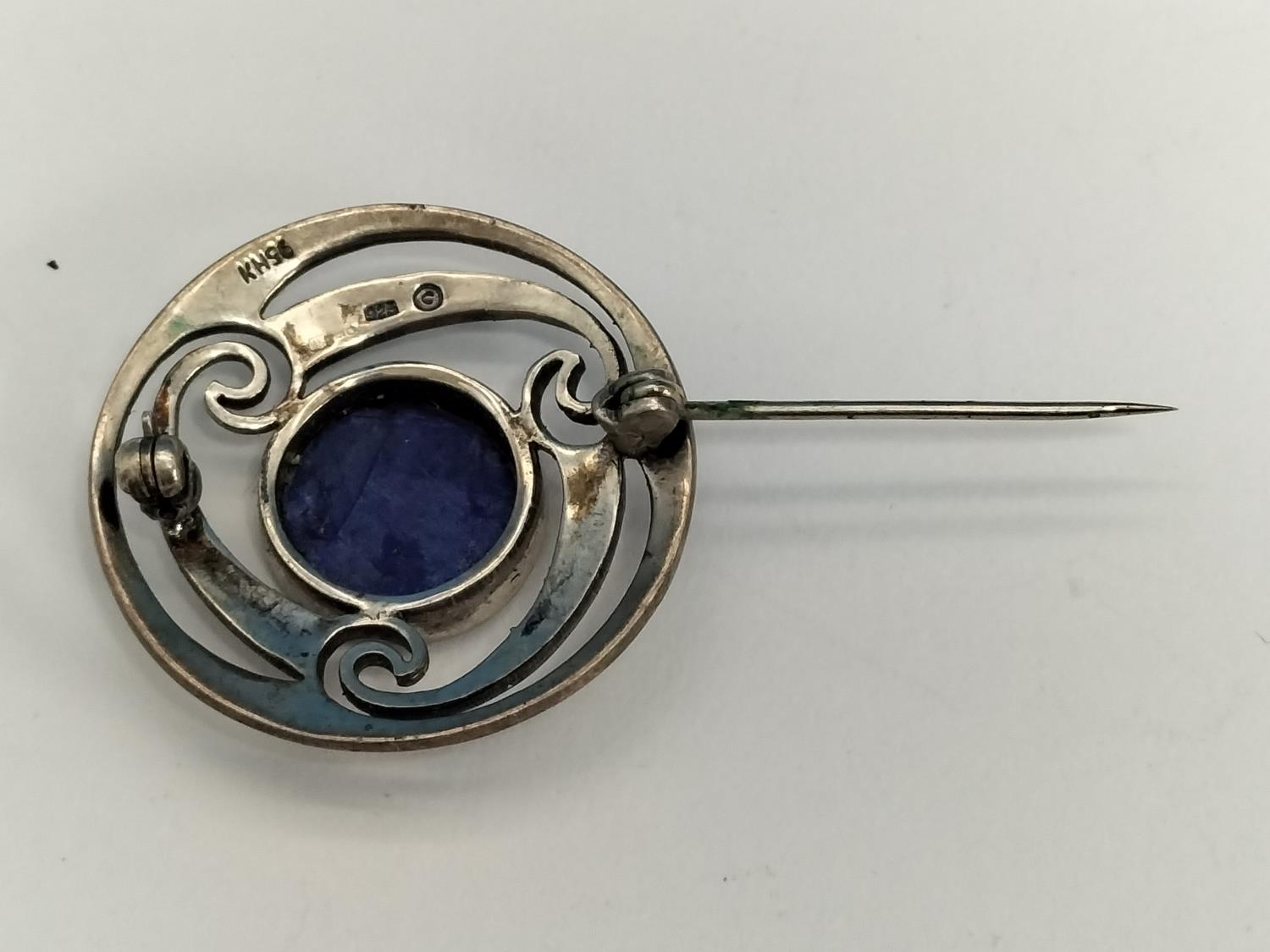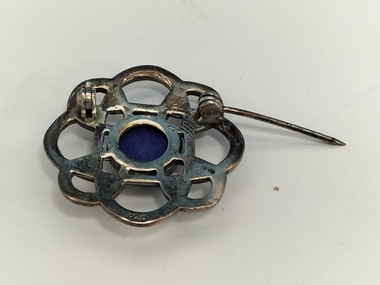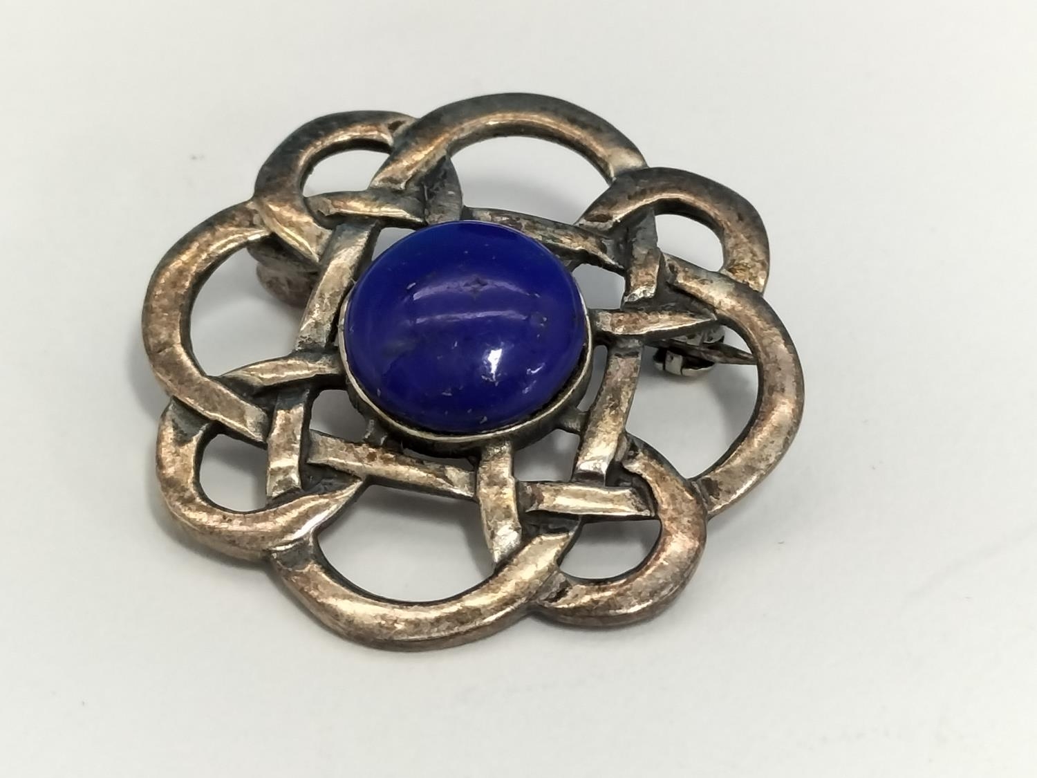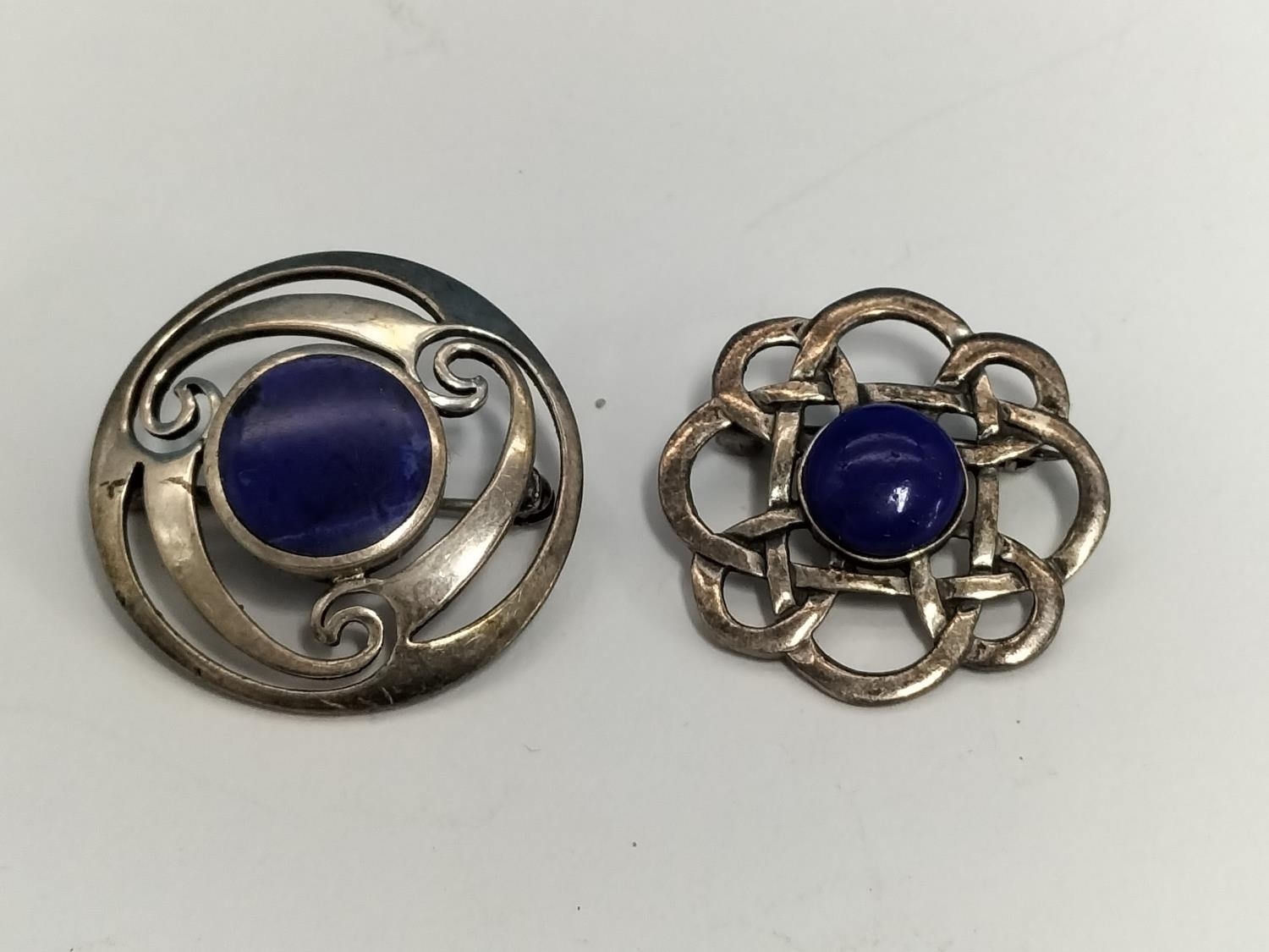Silver Celtic Brooches with Lapis Lazuli Centres (2).