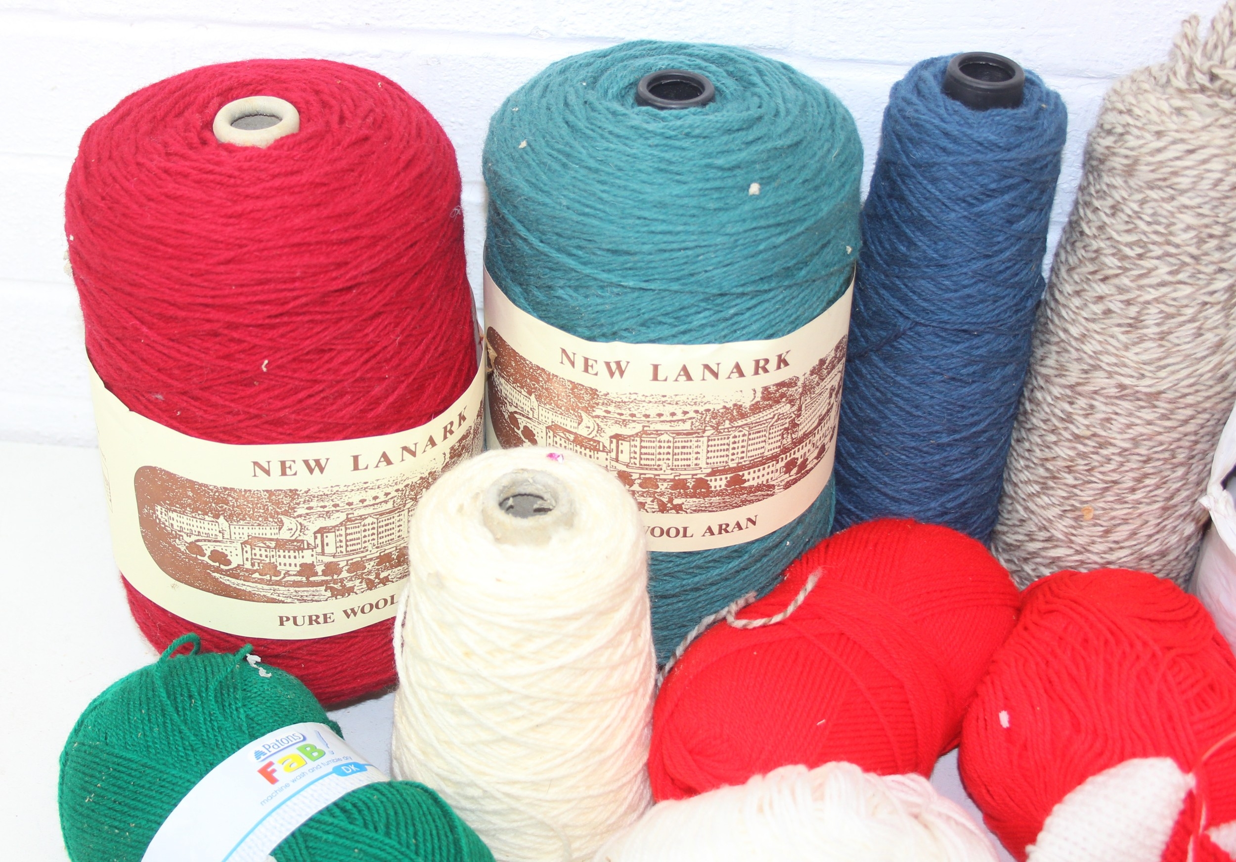 Two boxes of assorted wool to inc some large rolls by New Lanark [2 boxes]
