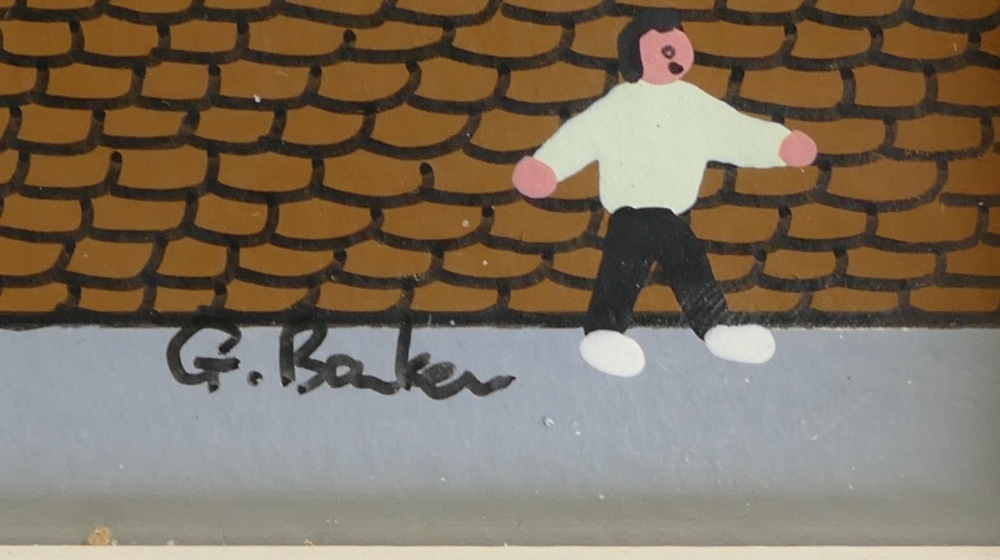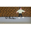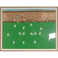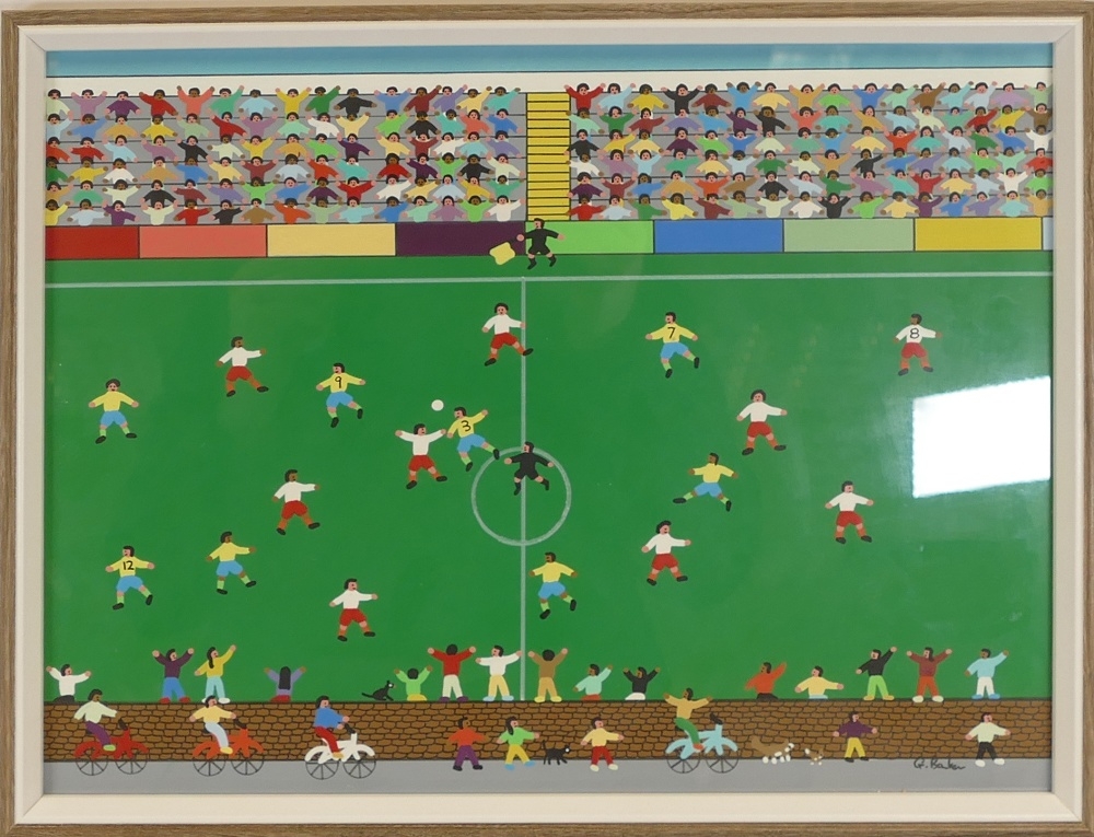 Gordon Barker 'The Big Game On Saturday', signed, acrylic on paper. 33cm x 43cm Including The Frame. Artist born in 1960, started painting in 1981. Gordon has paintings in many countries throughout the world, selling to collectors & corporate institutions. Look out for a hidden cat in his work, he nearly always includes one.