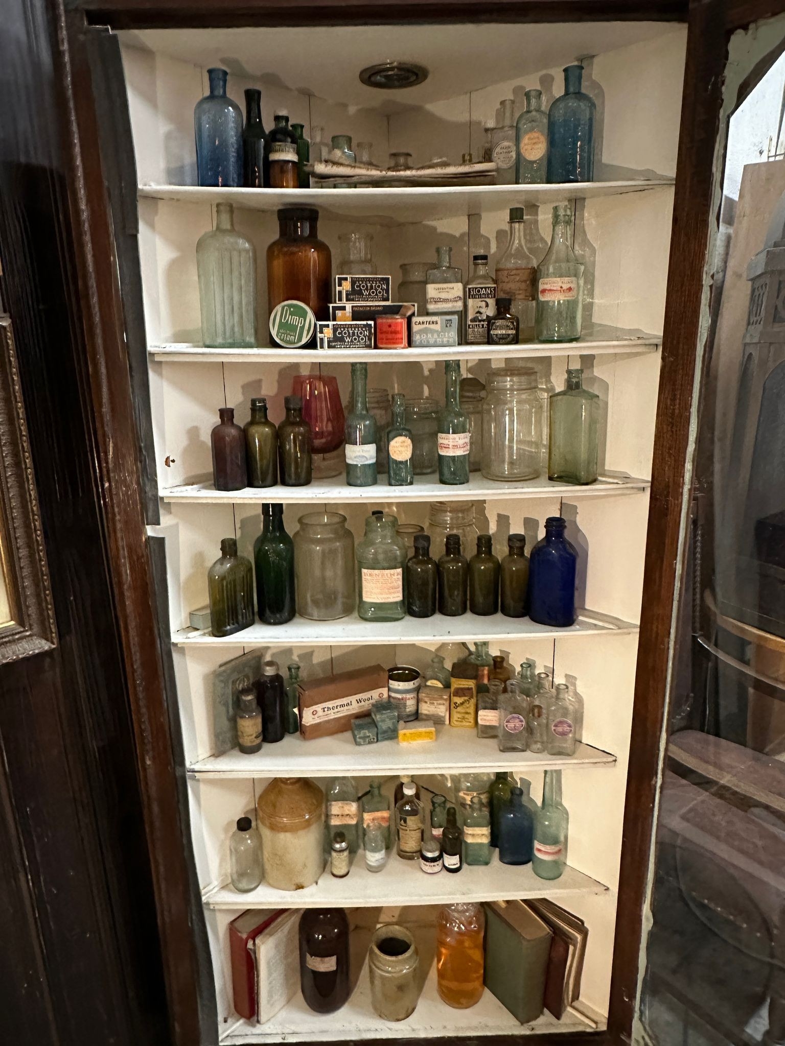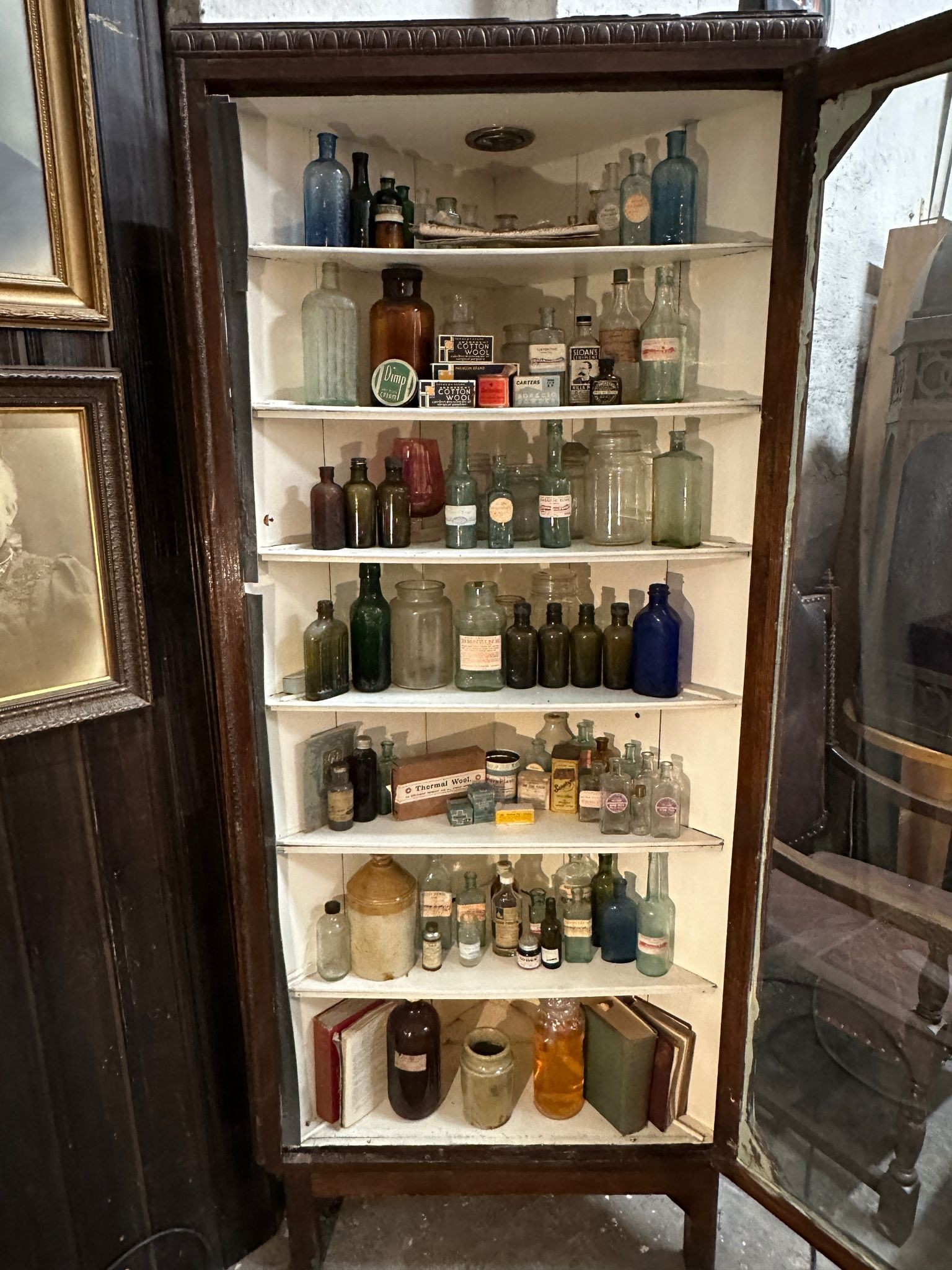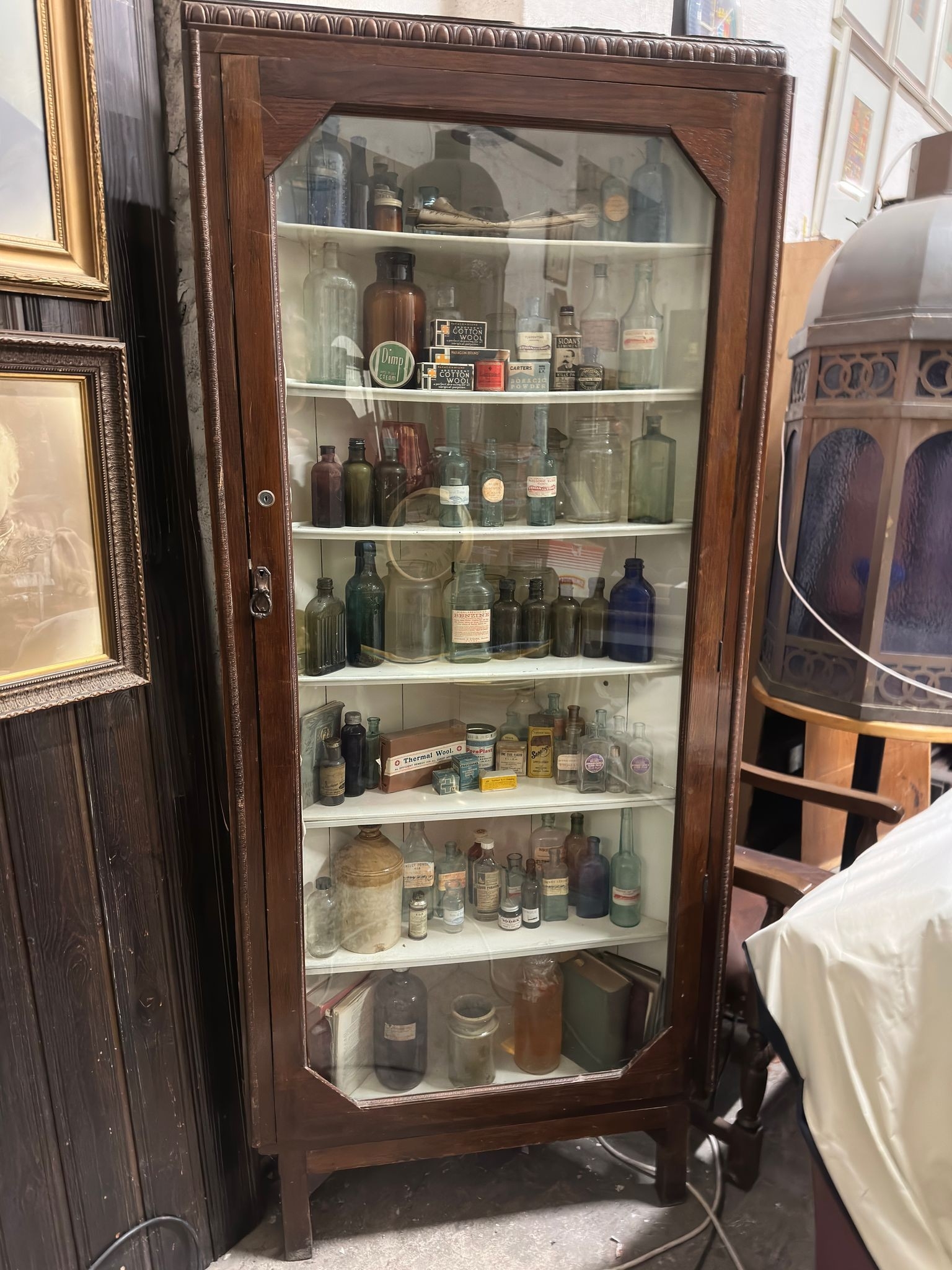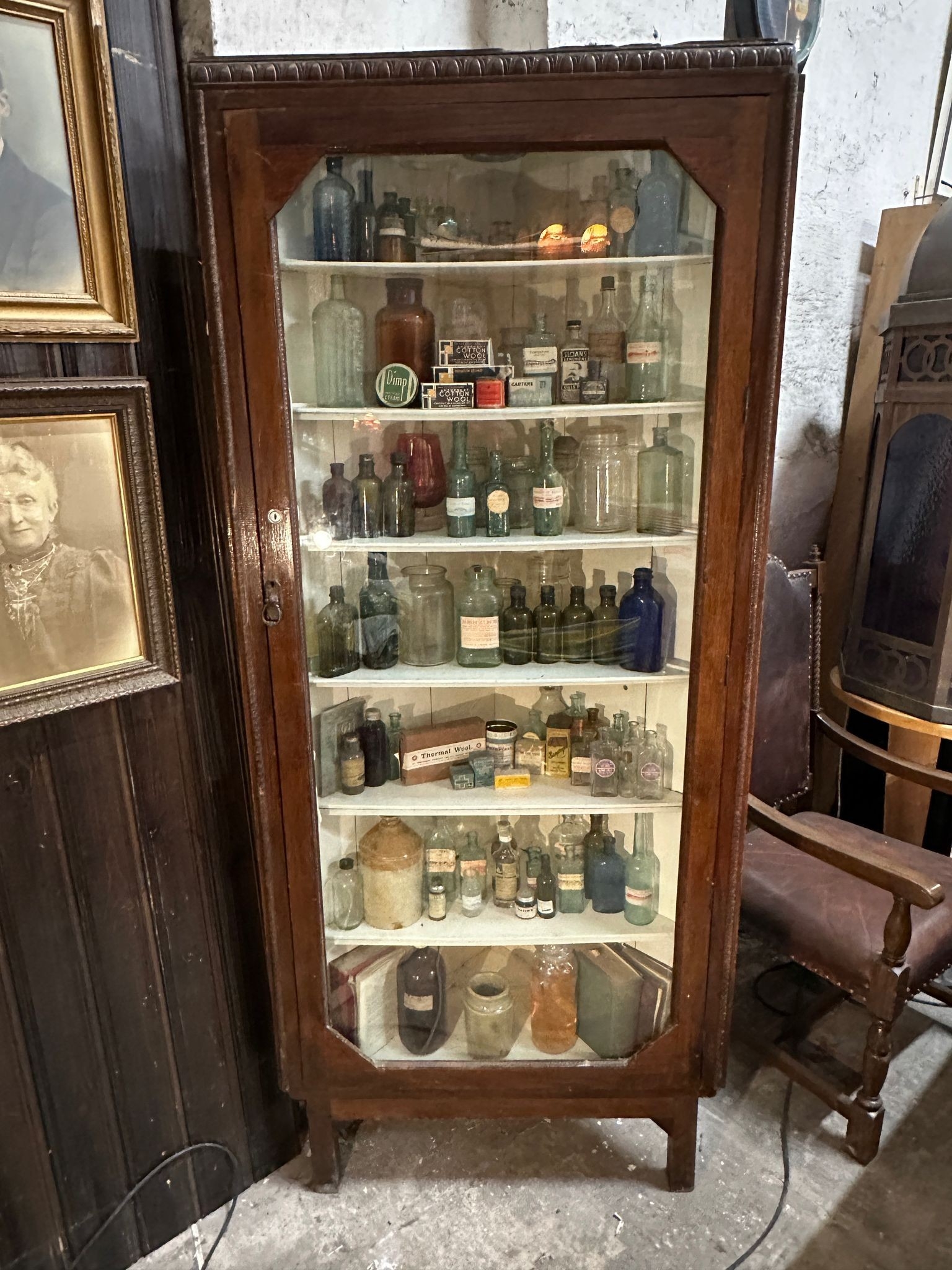 Limerick Chemist Shop Corner Display Cabinet including Contents - Large Quantity of Chemist Bottles and Books. Believed to be from Listons,108 O'Connell Street, Limerick