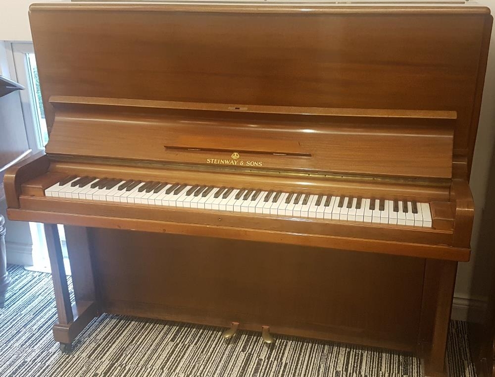 Steinway (c1909) An upright piano in a mahogany case.