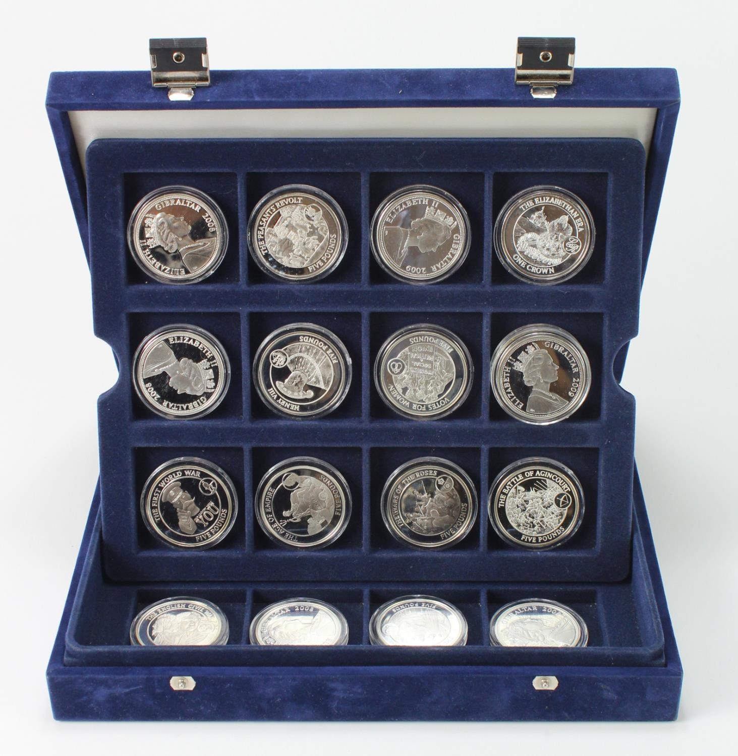 World Silver Proof issues (25) All Crown-size £5s from Gibraltar dated 2009. aFDC/FDC in hard plastic capsules and in a "Westminster" box