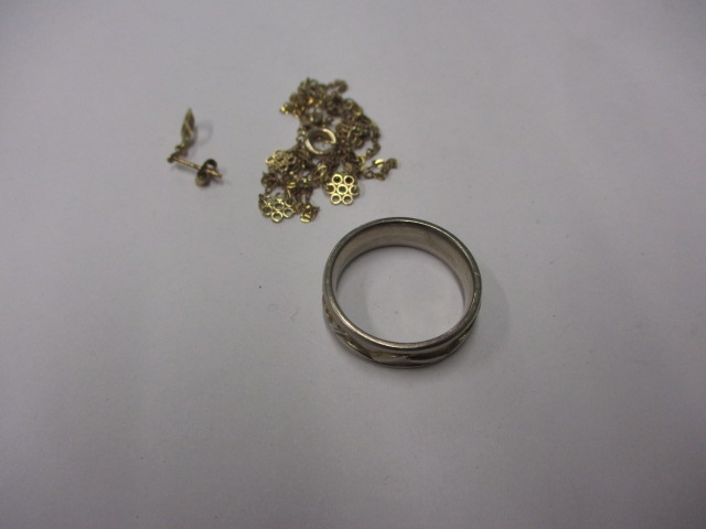 A vintage 18ct gold wedding band and a 9ct gold chain, approx ring size ‘P’, approx weight 8.4g, chain damaged approx weight 1,7g