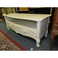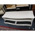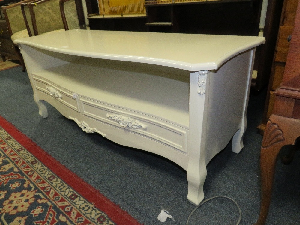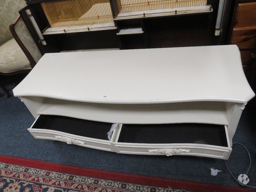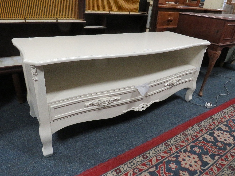 A modern cream two drawer media cabinet
