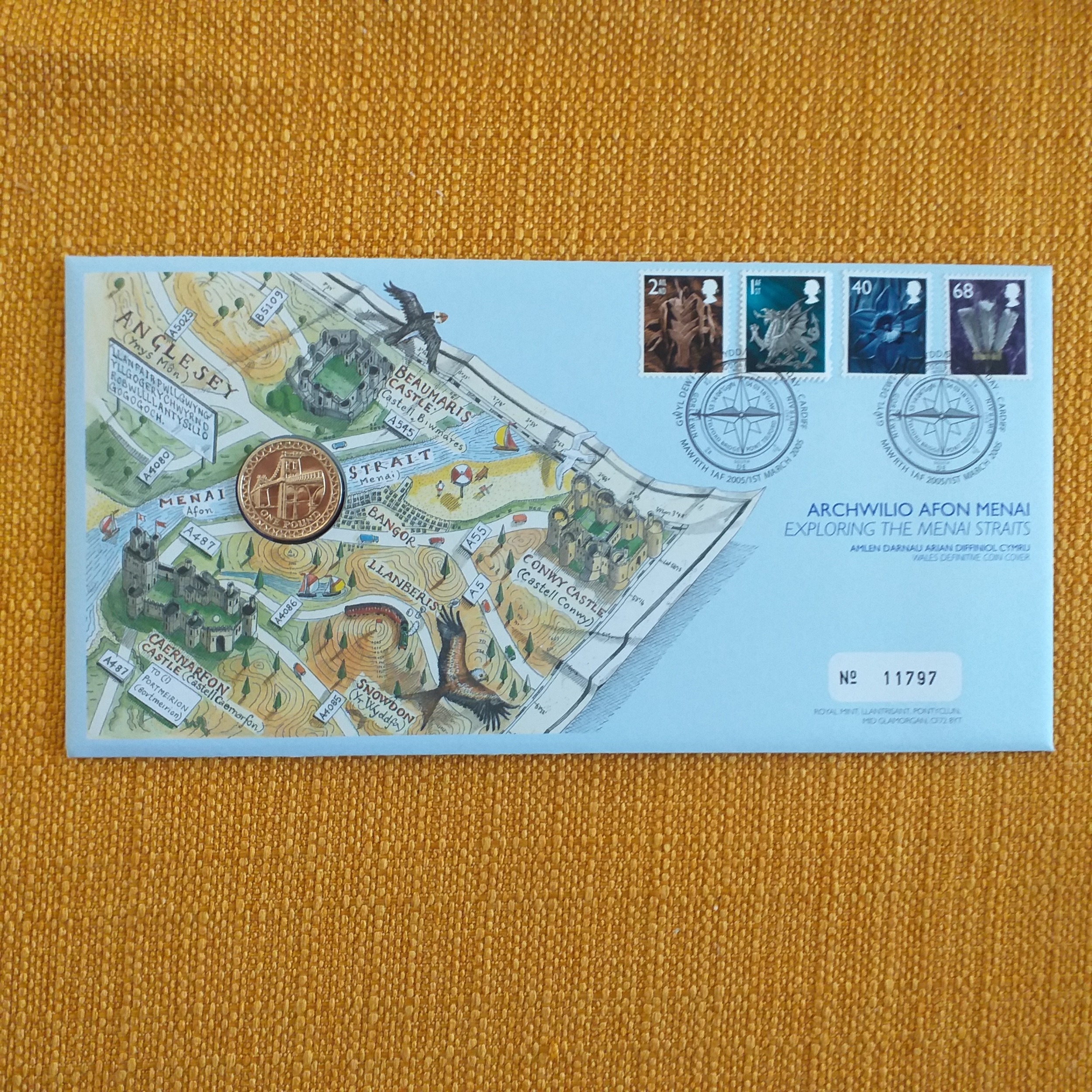 GB Royal Mail/Mint PNC's - 2005, Trafalgar 5, Nelson 5, End of WWI 2 & Medal, Menai Bridge 1, Samual Johnson 50p, World Heritage Joint Issue with Australia 50p & 50c.