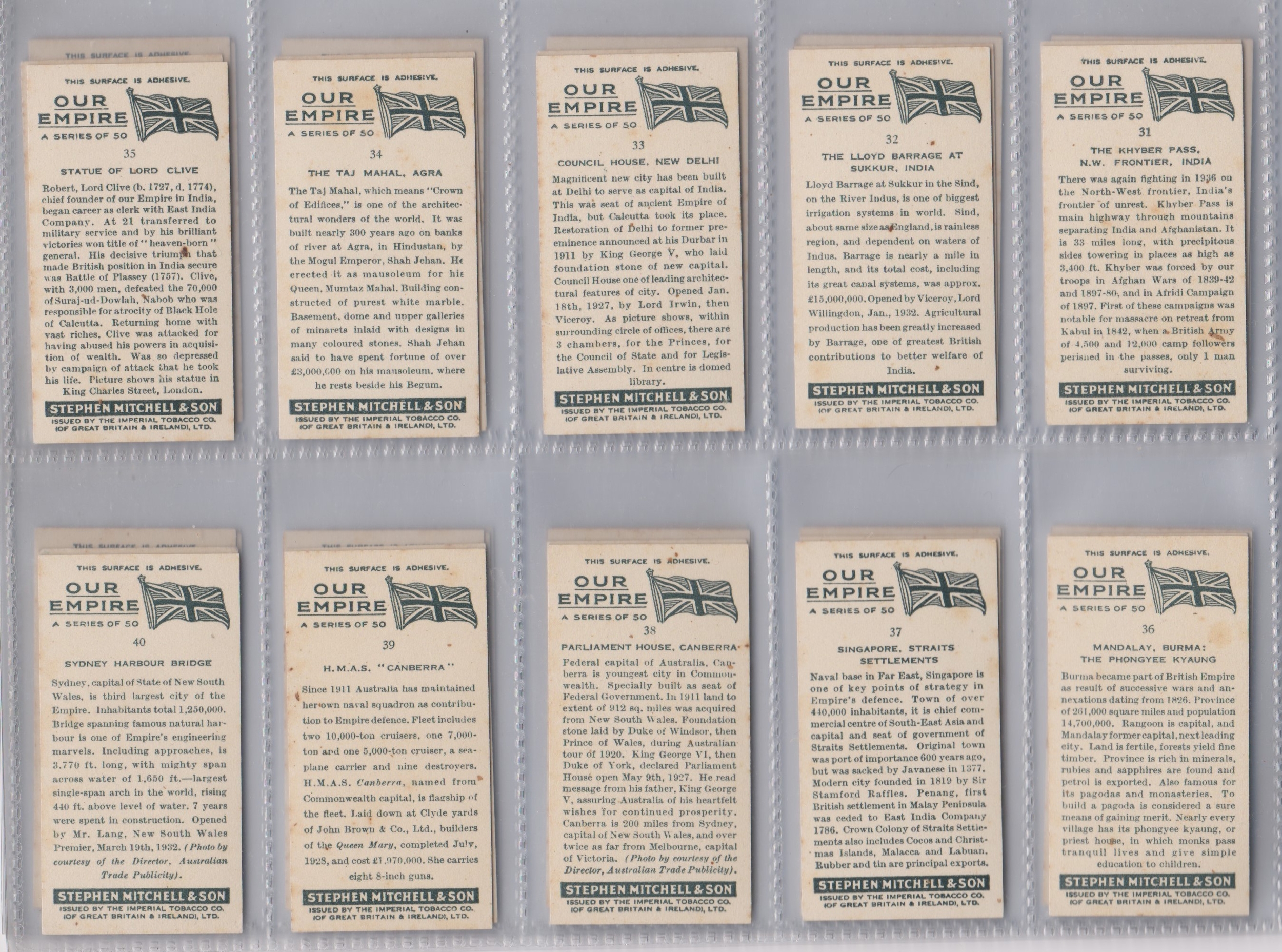 Stephen Mitchell & Co Our Empire 1937 set 50/50 cards VGC