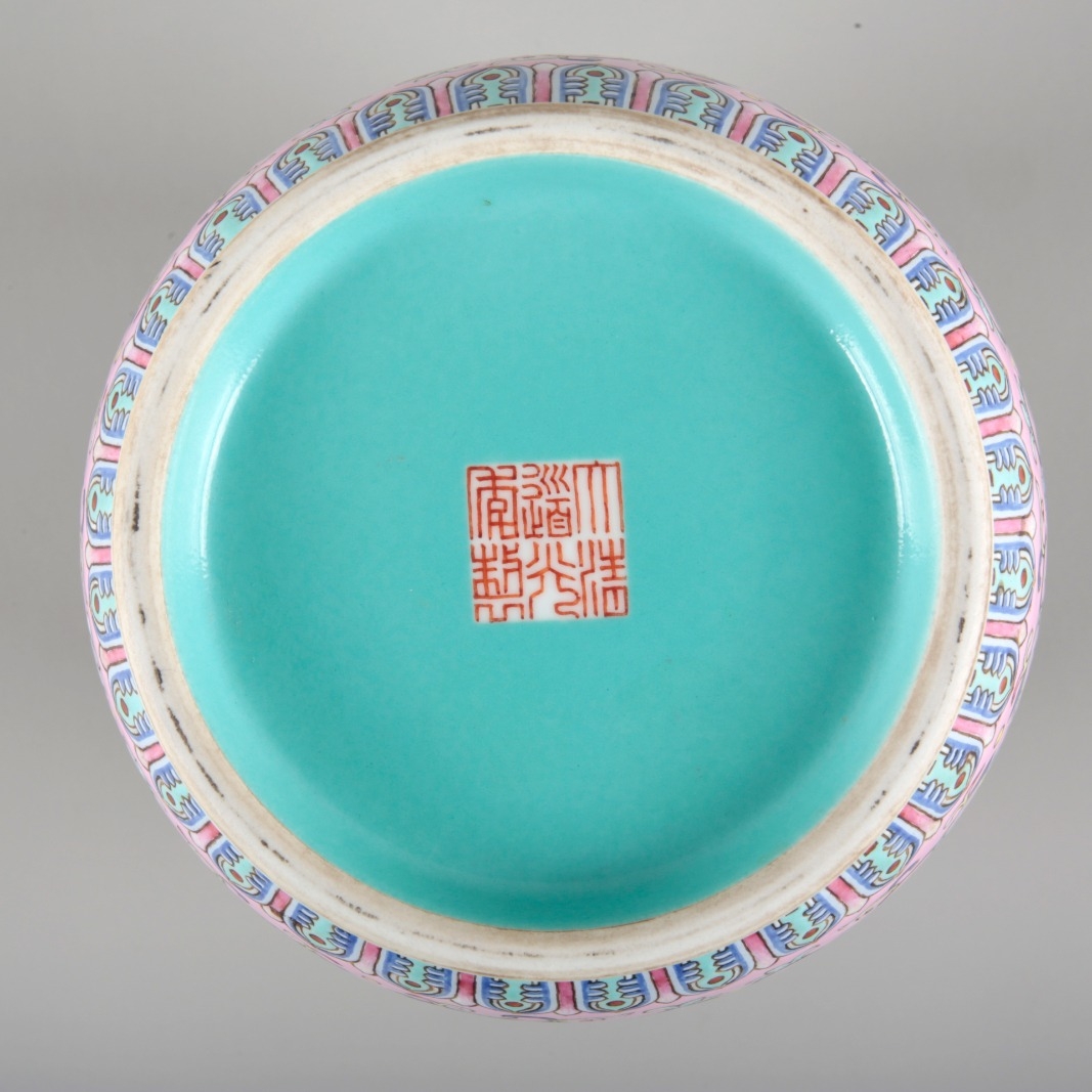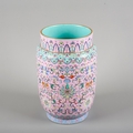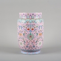 A CHINESE FAMILLE ROSE PINK GROUND SLEEVE VASE