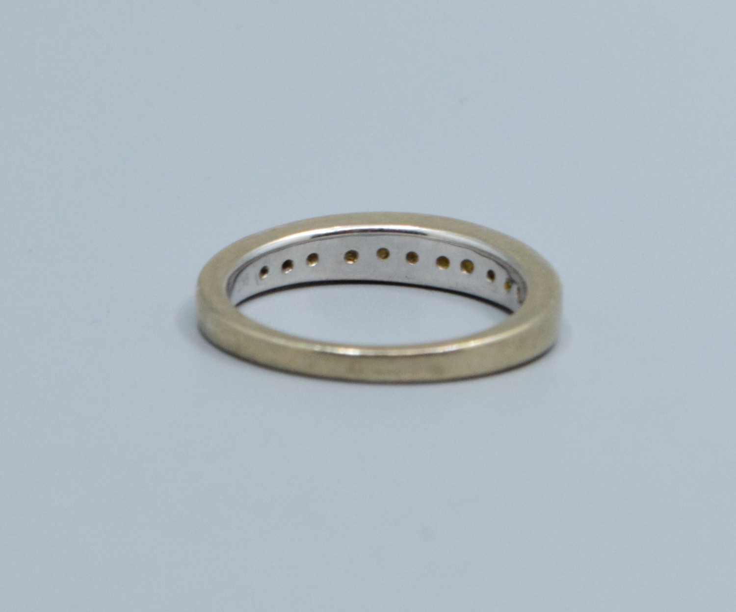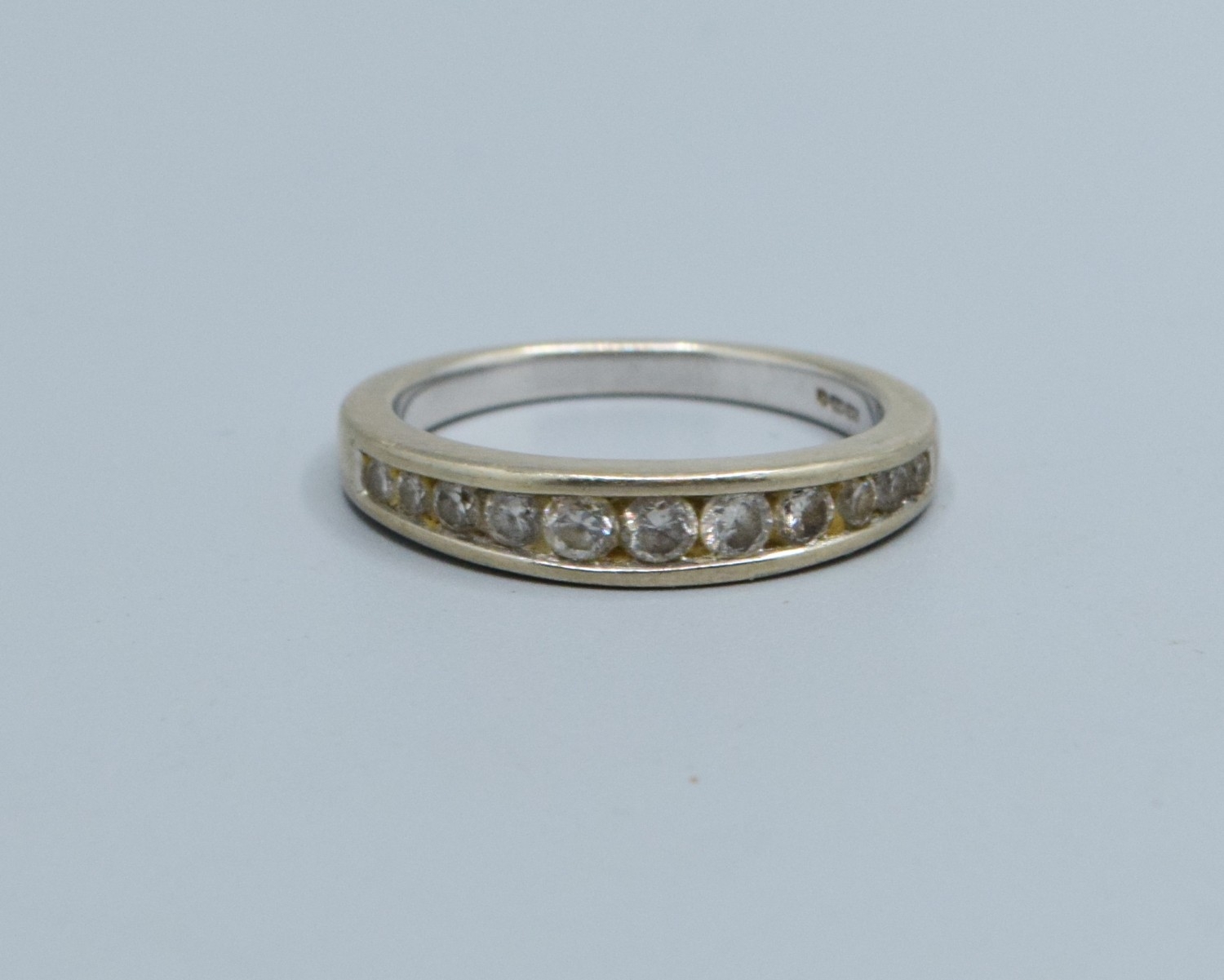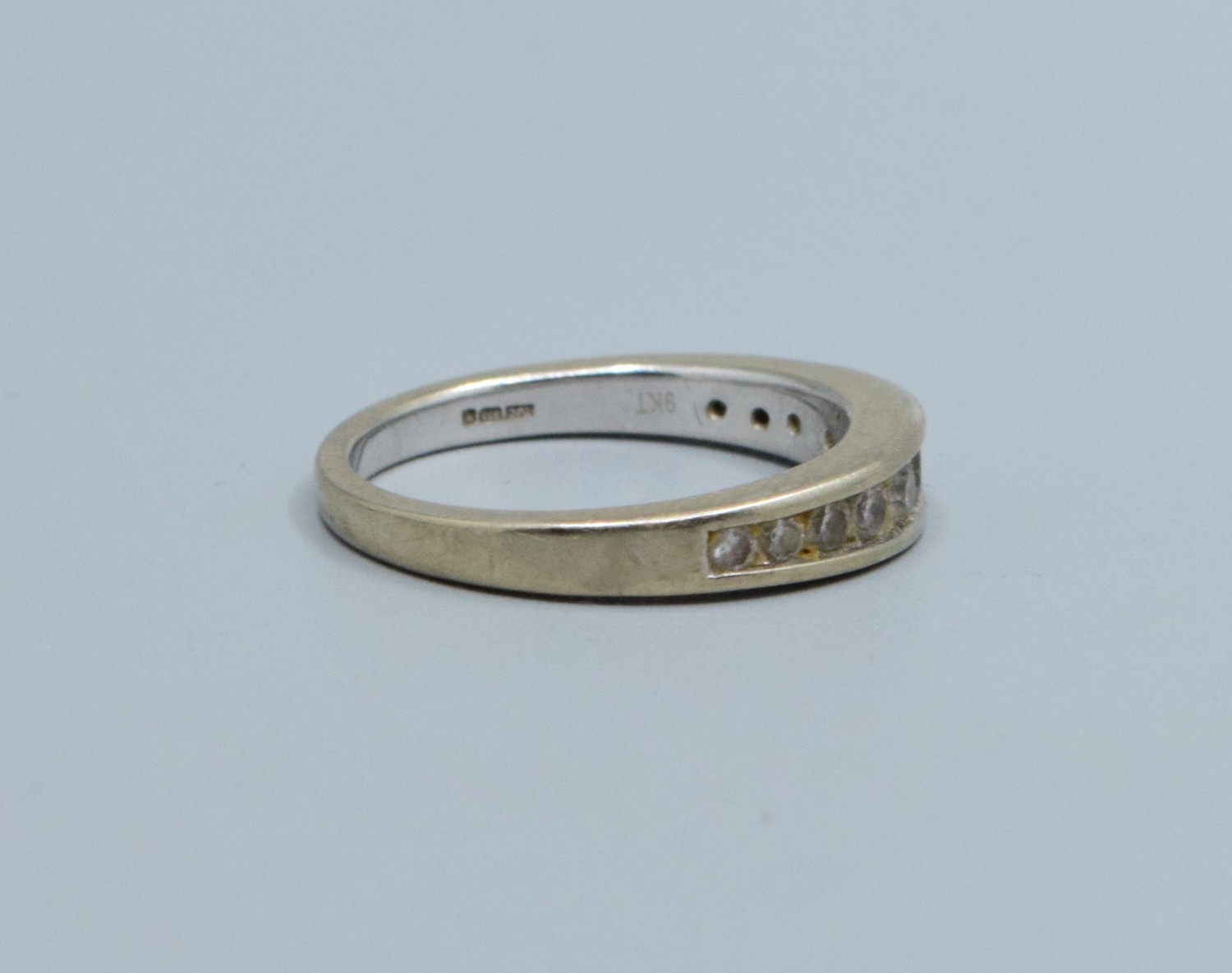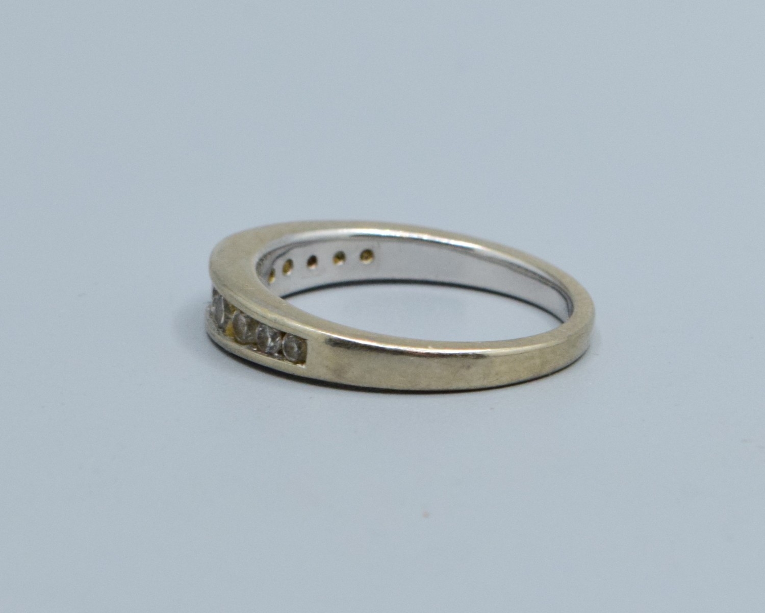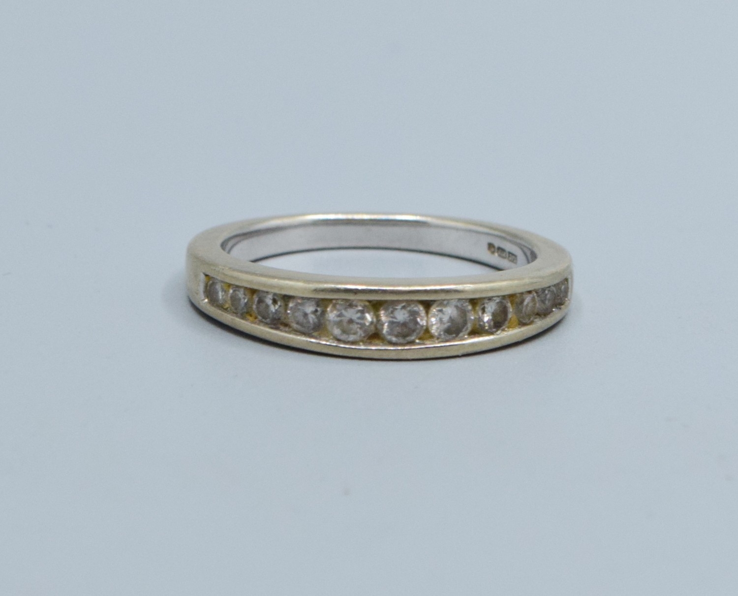 9ct white gold ladies Graduating Diamond half eternity ring with an estimated Diamond value of 0.33cts size M. 3.1grams