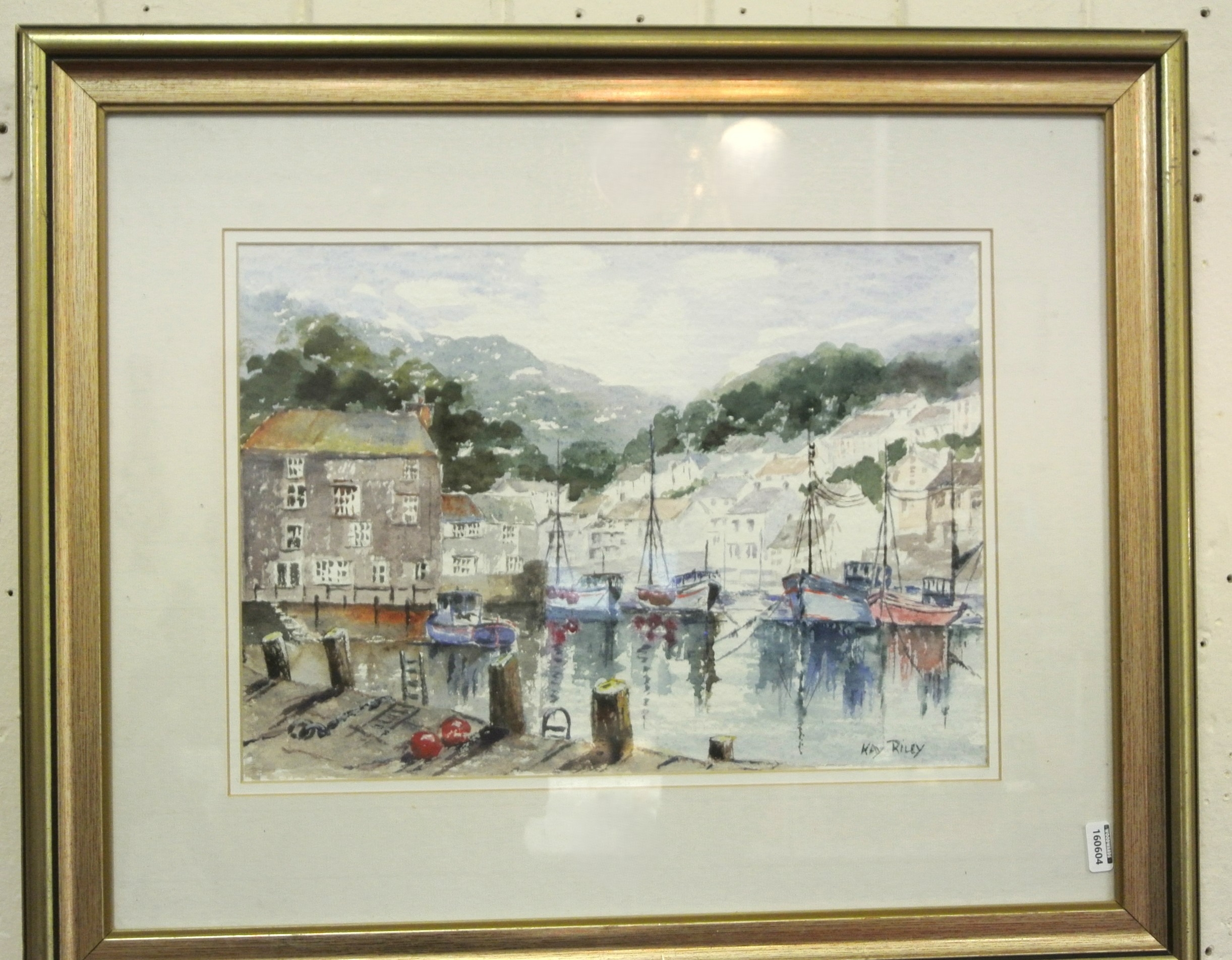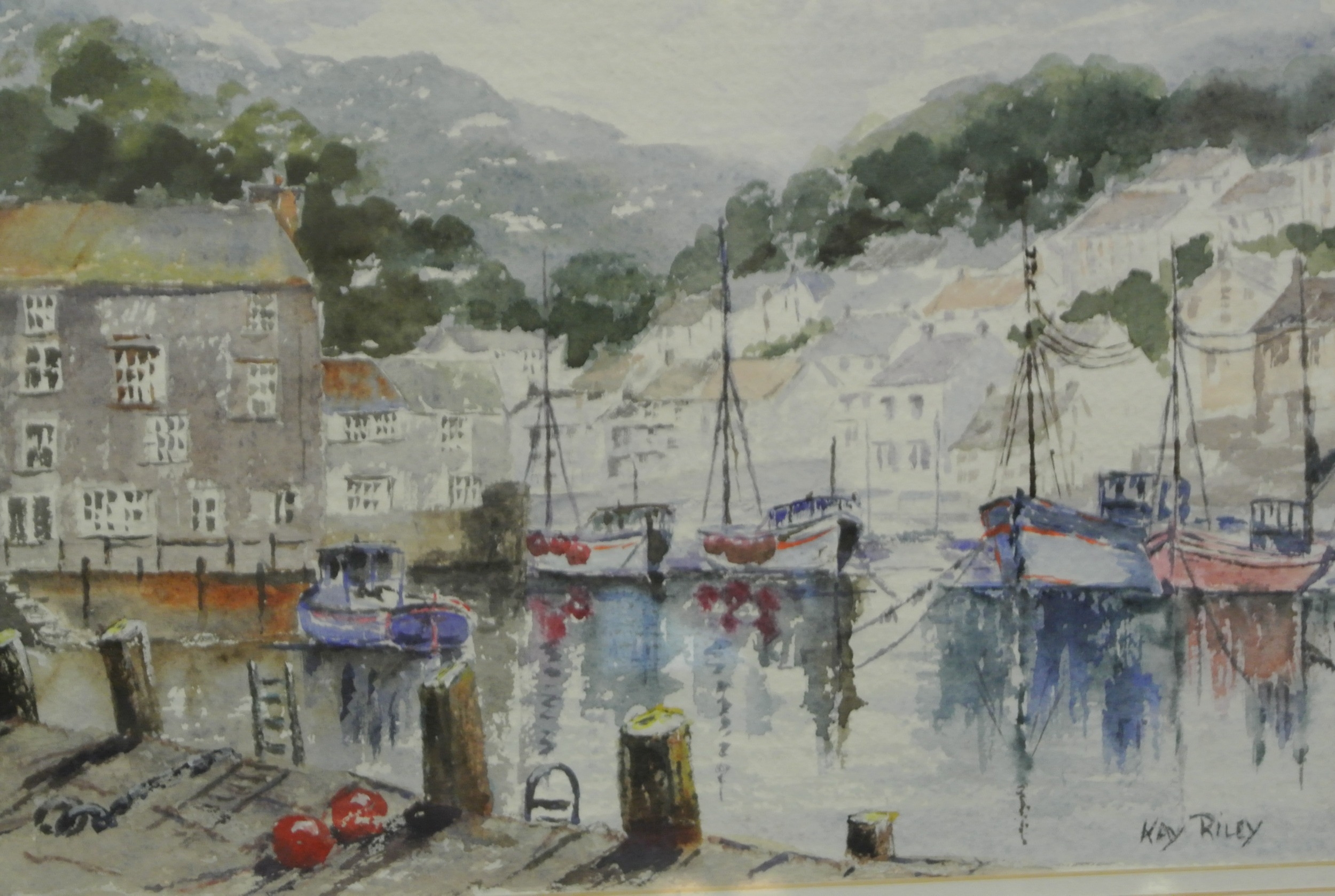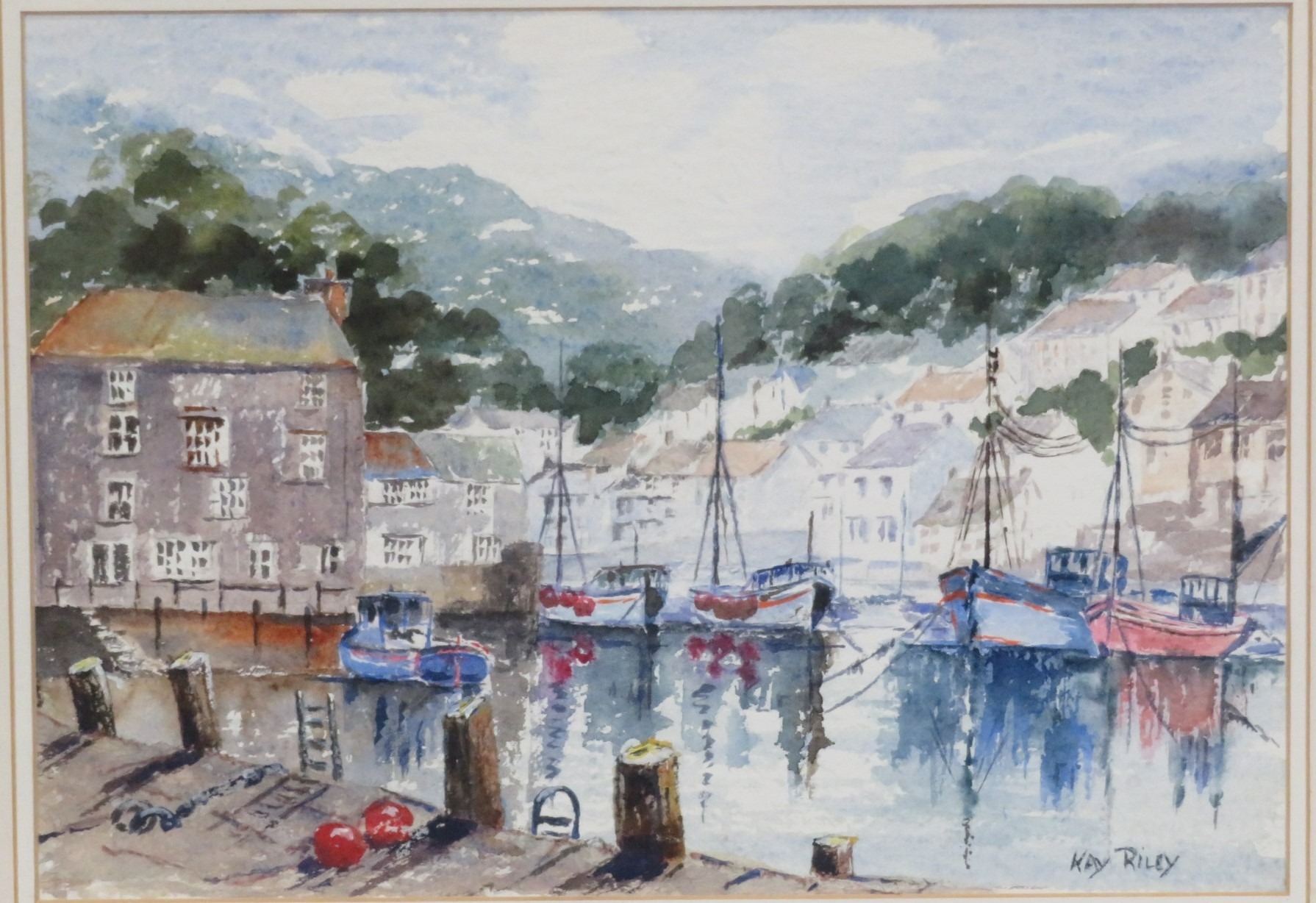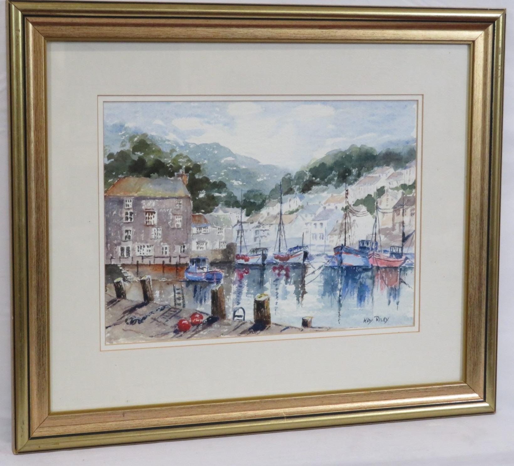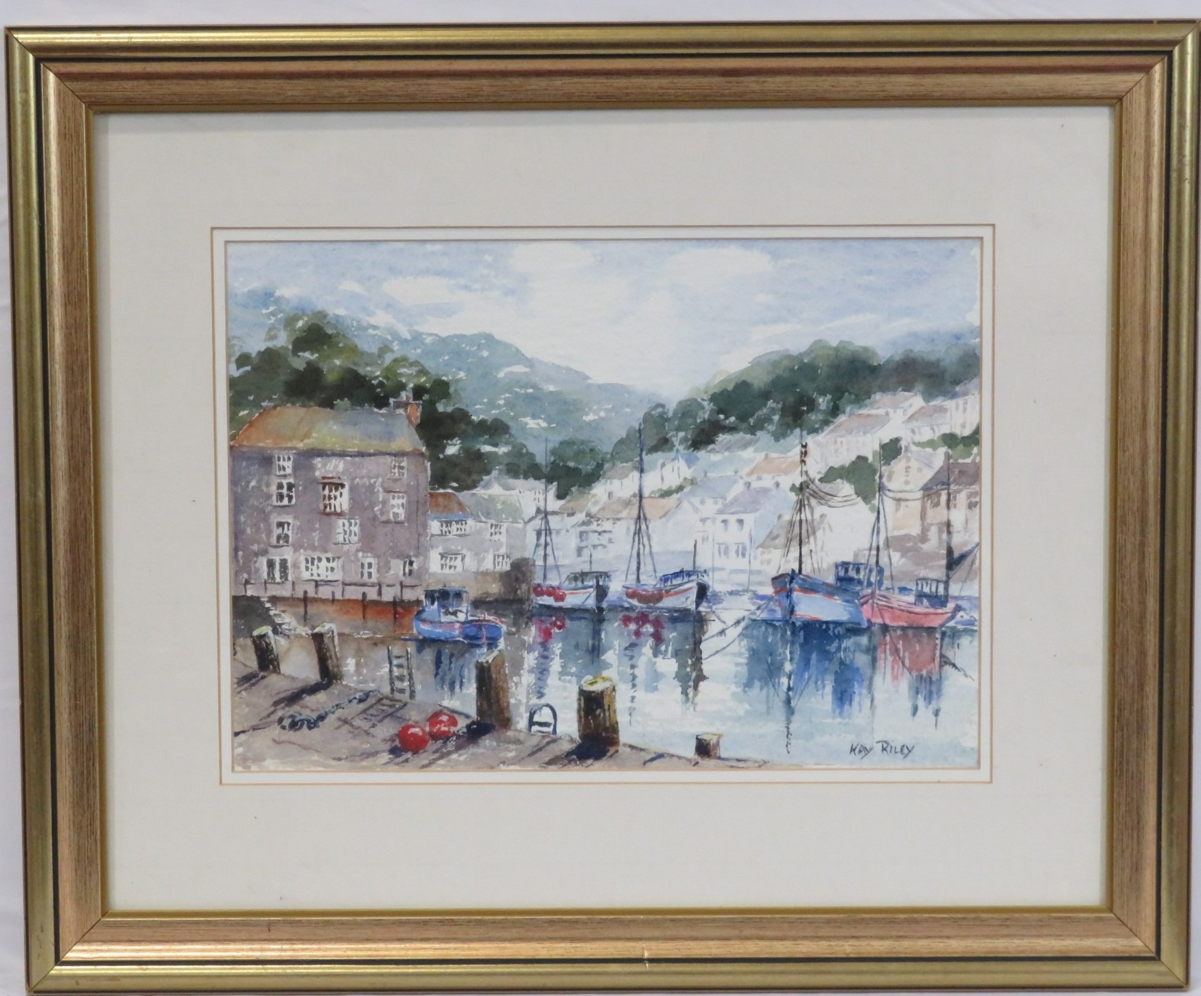 Kay Riley 'Inner Harbour, Polperro' watercolour 26x36cm signed