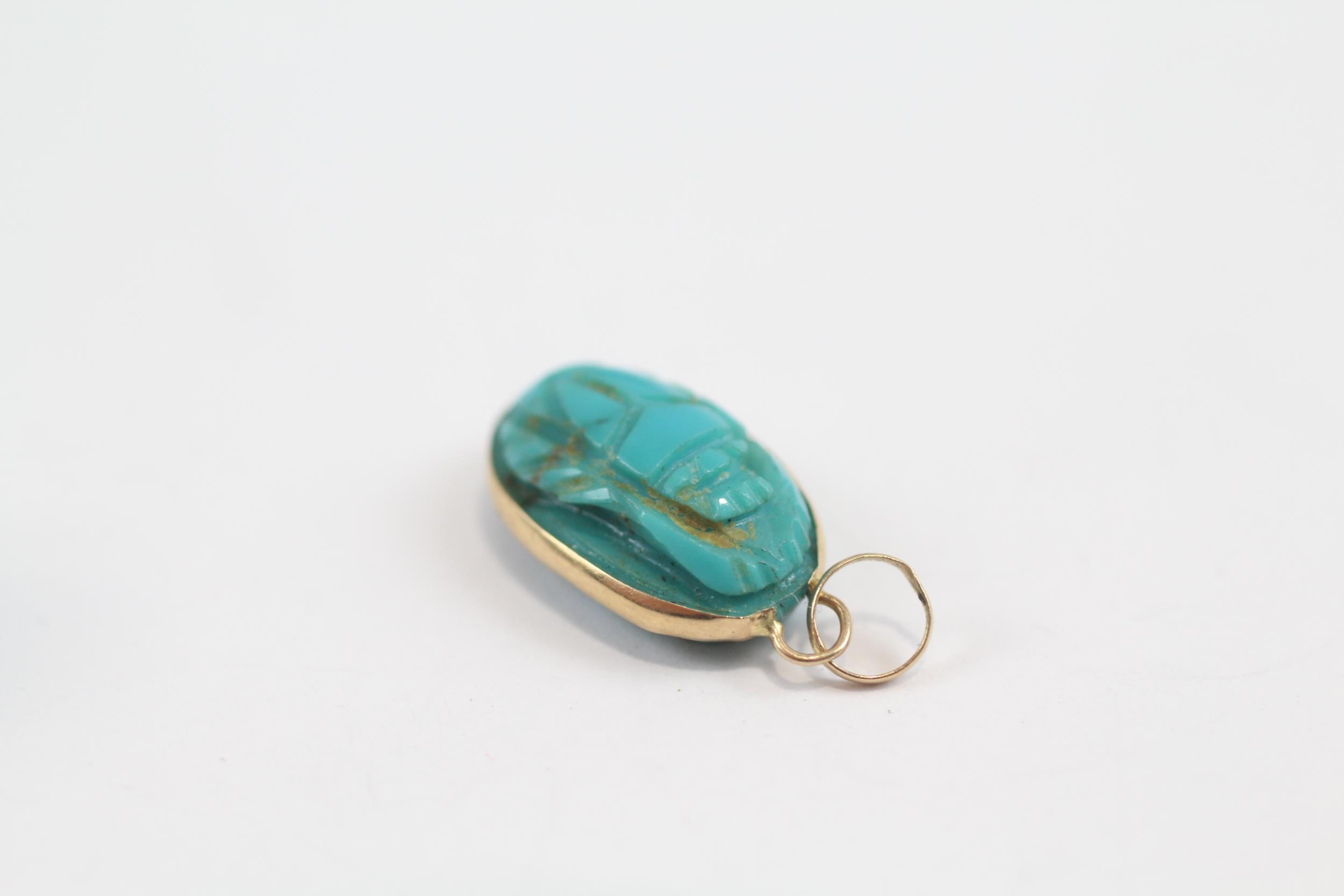 14ct Gold Turquoise Scarab Pendant (1.2G)