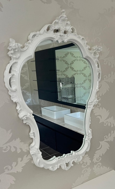 Rocco style white wall mirror 97cm x 66cm