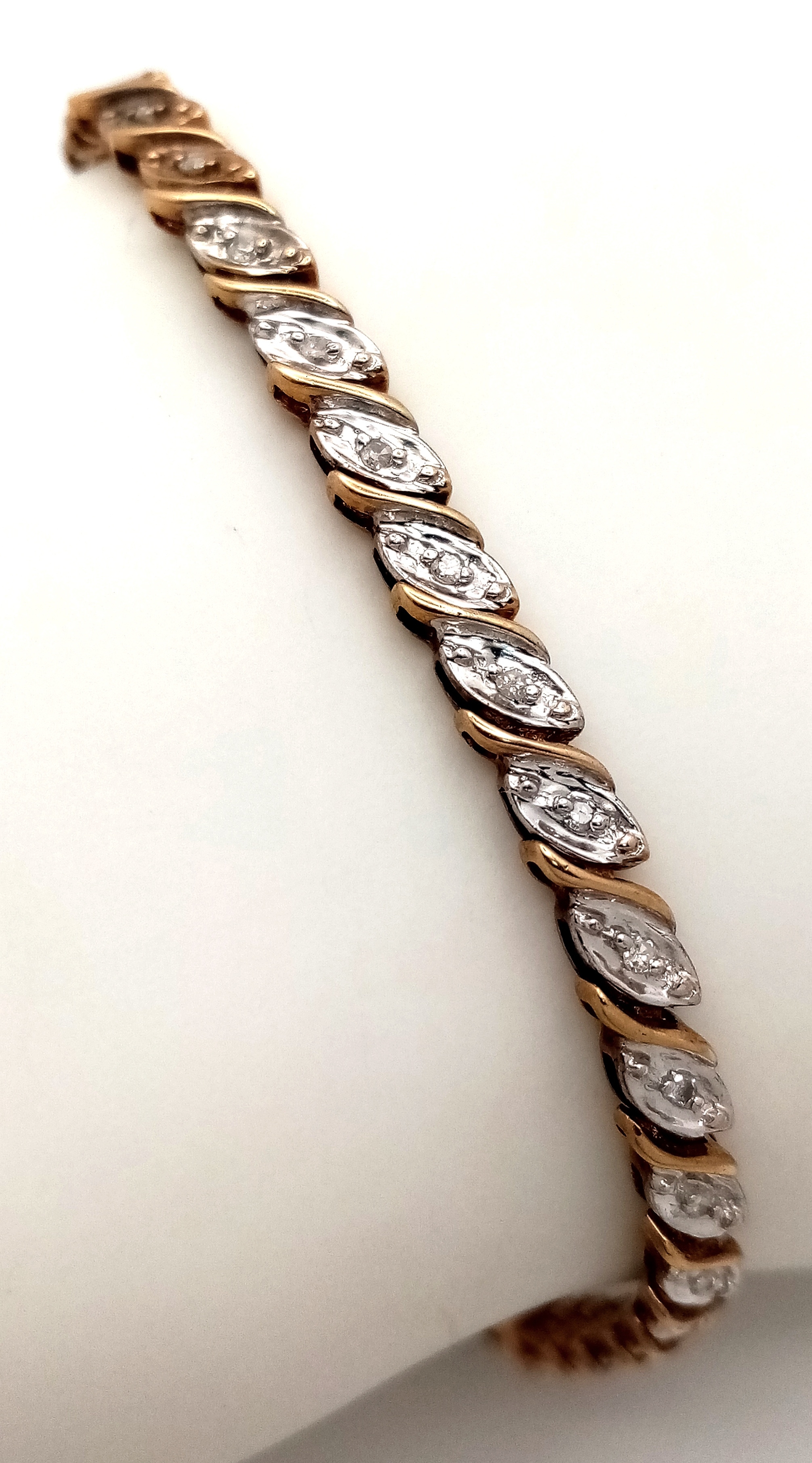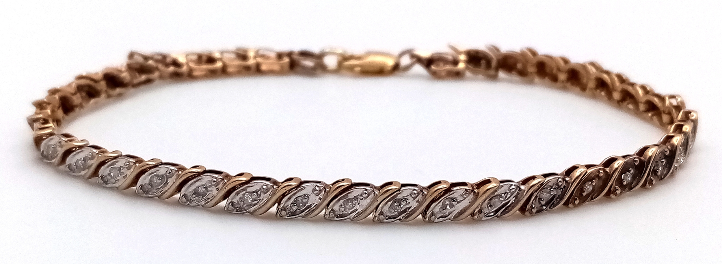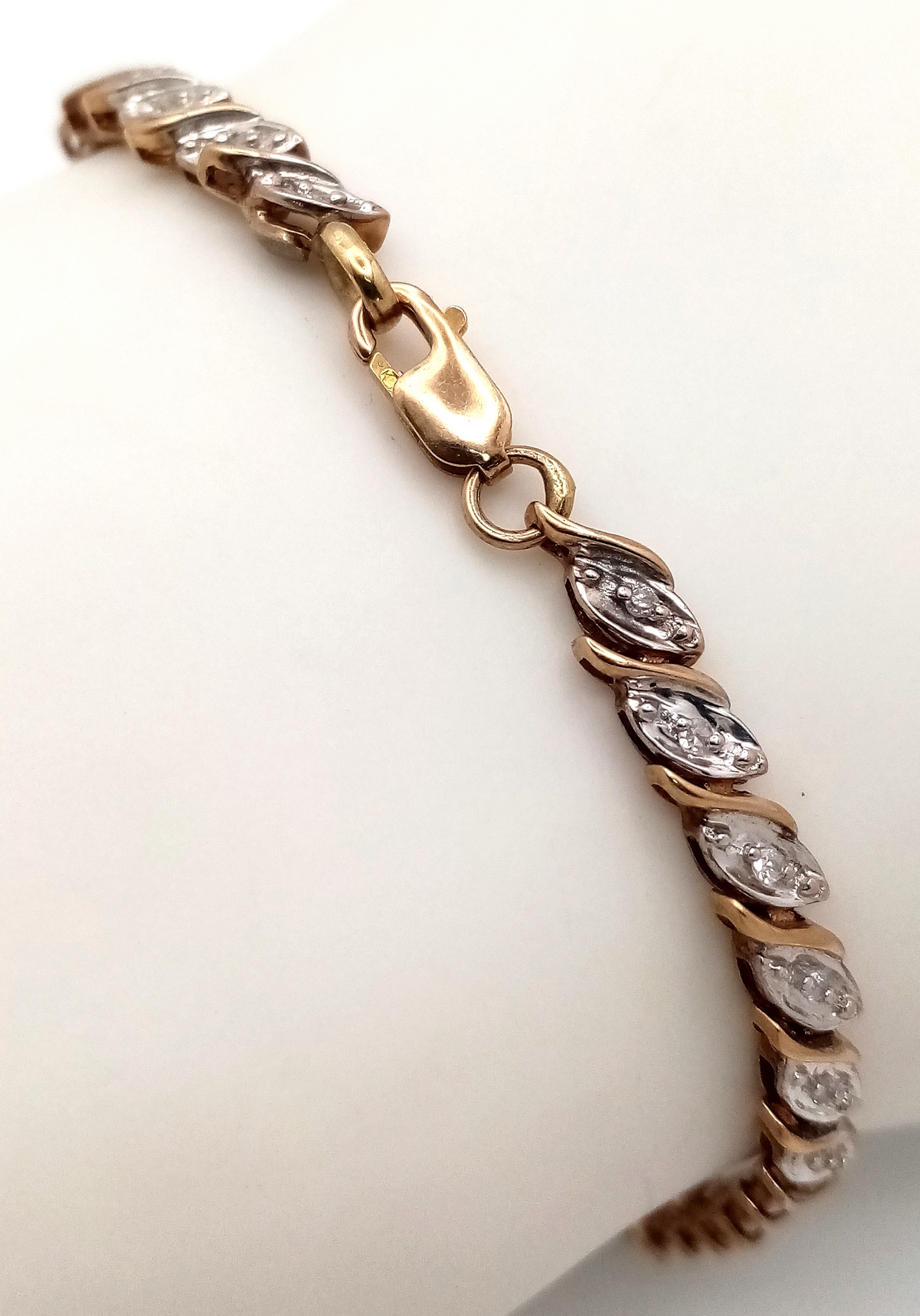 A 9K YELLOW GOLD DIAMOND SET BRACELET 5.9G , 18.4CM IN LENGTH. REF: SC 9056