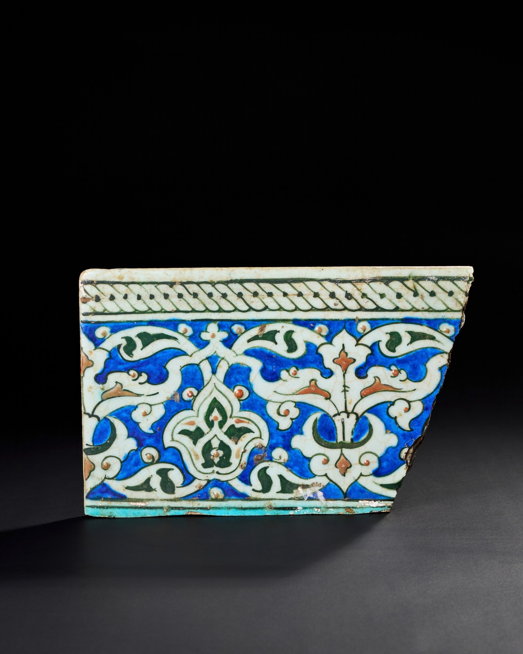 A 16TH CENTURY OTTOMAN IZNIK GLAZED POTTERY TILE