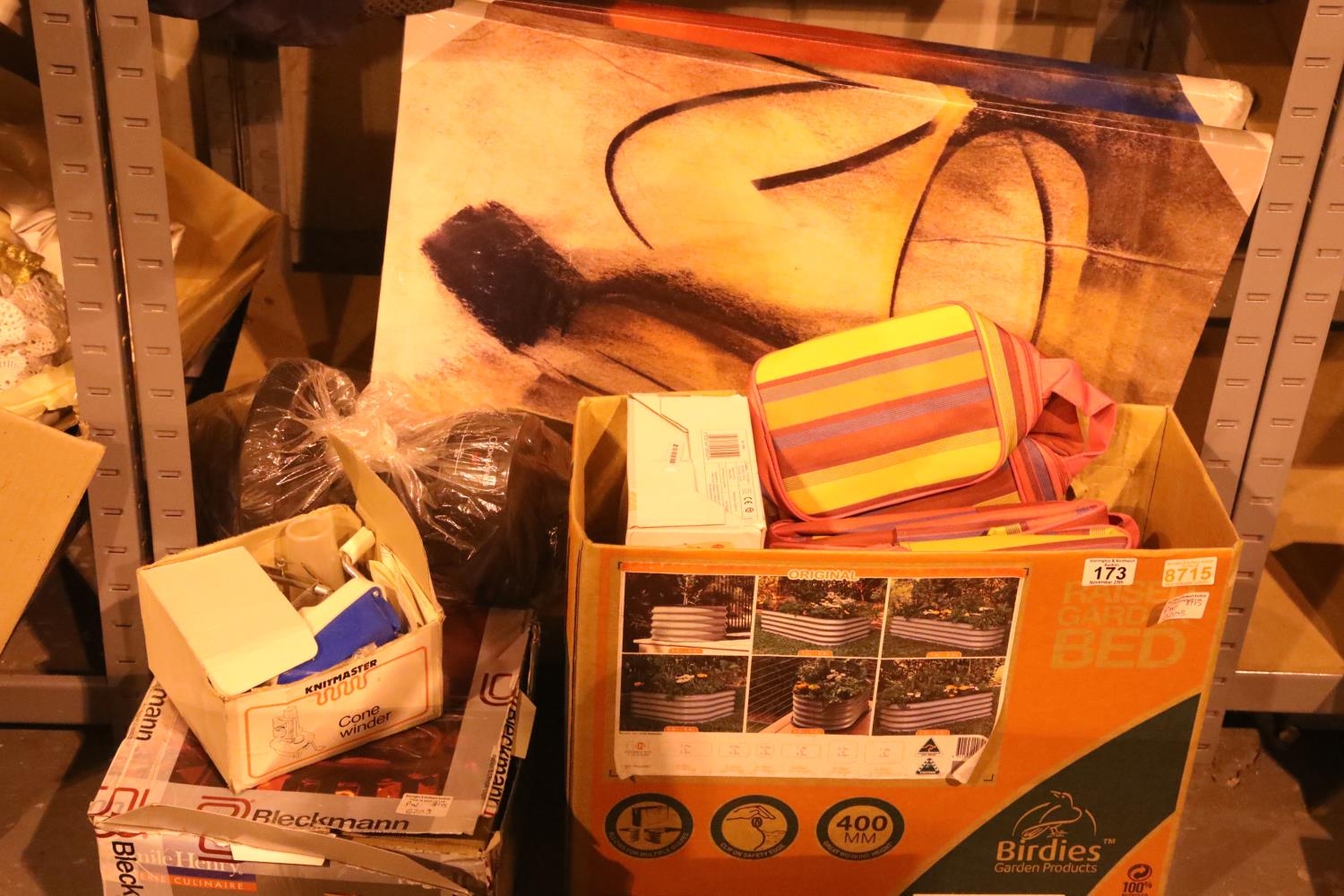 Box containing unused cooler bags, electric heat pad, Cookworks coffee machine and other items. Not available for in-house P&P