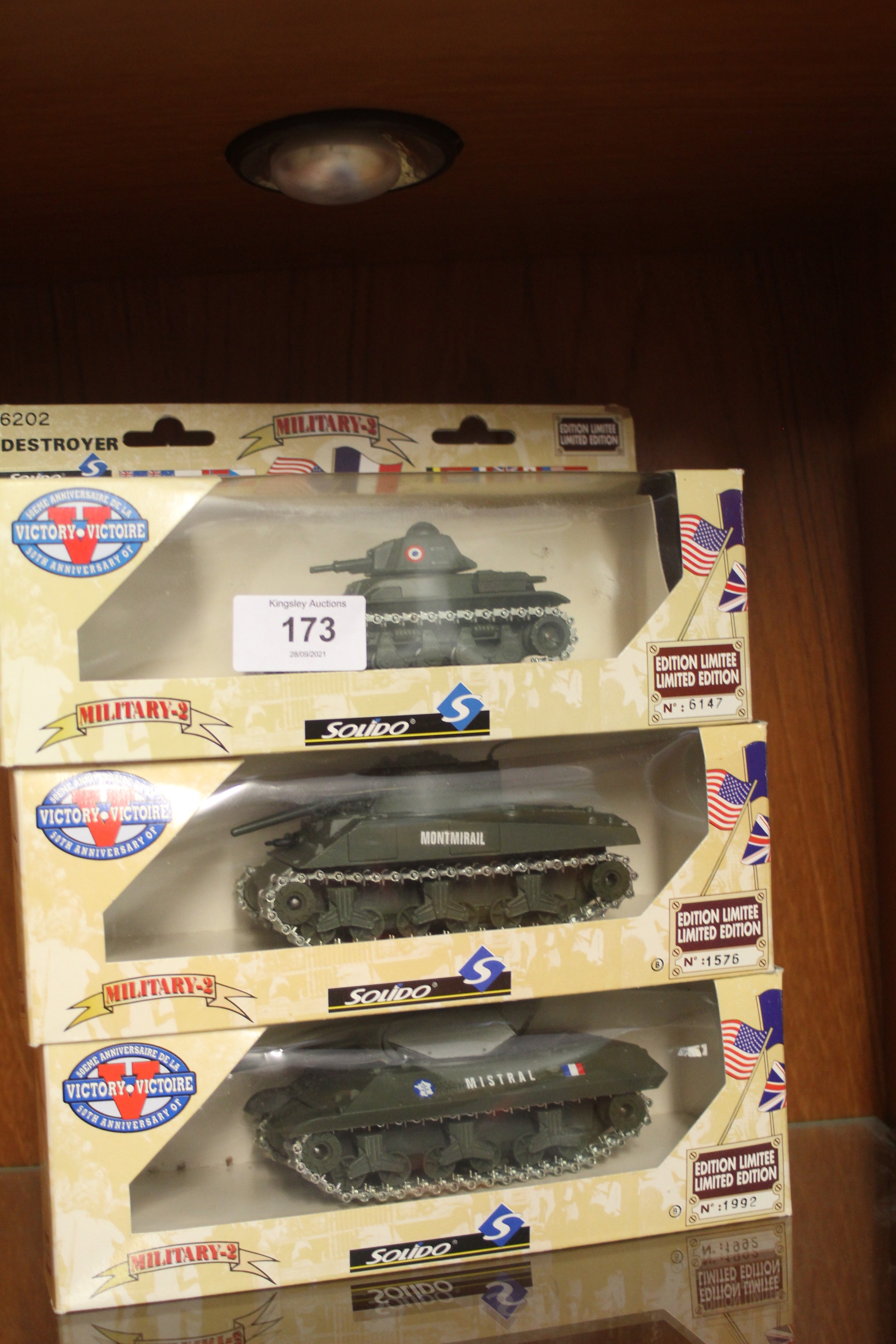 Mint in Box Solido 6210 U.S Sherman Tank Grand Battles Series Military Die Cast Boxed 1/50, Solido Military- R35 Char Renault Tank -Limited Edition -Boxed and a Solido Military Army 1/50 #6205 Tank Renault 35 Victory 50th Anniversary-all Limited Editions
