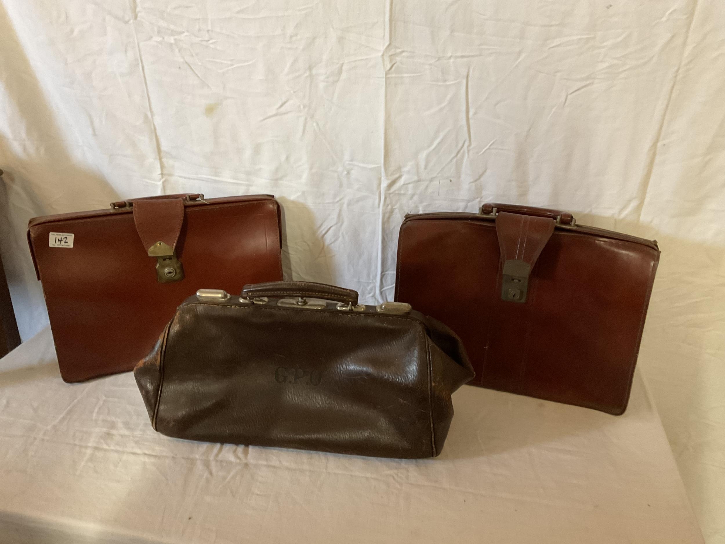VINTAGE LEATHER GLADSTONE BAG AND 2 BRIEFCASES