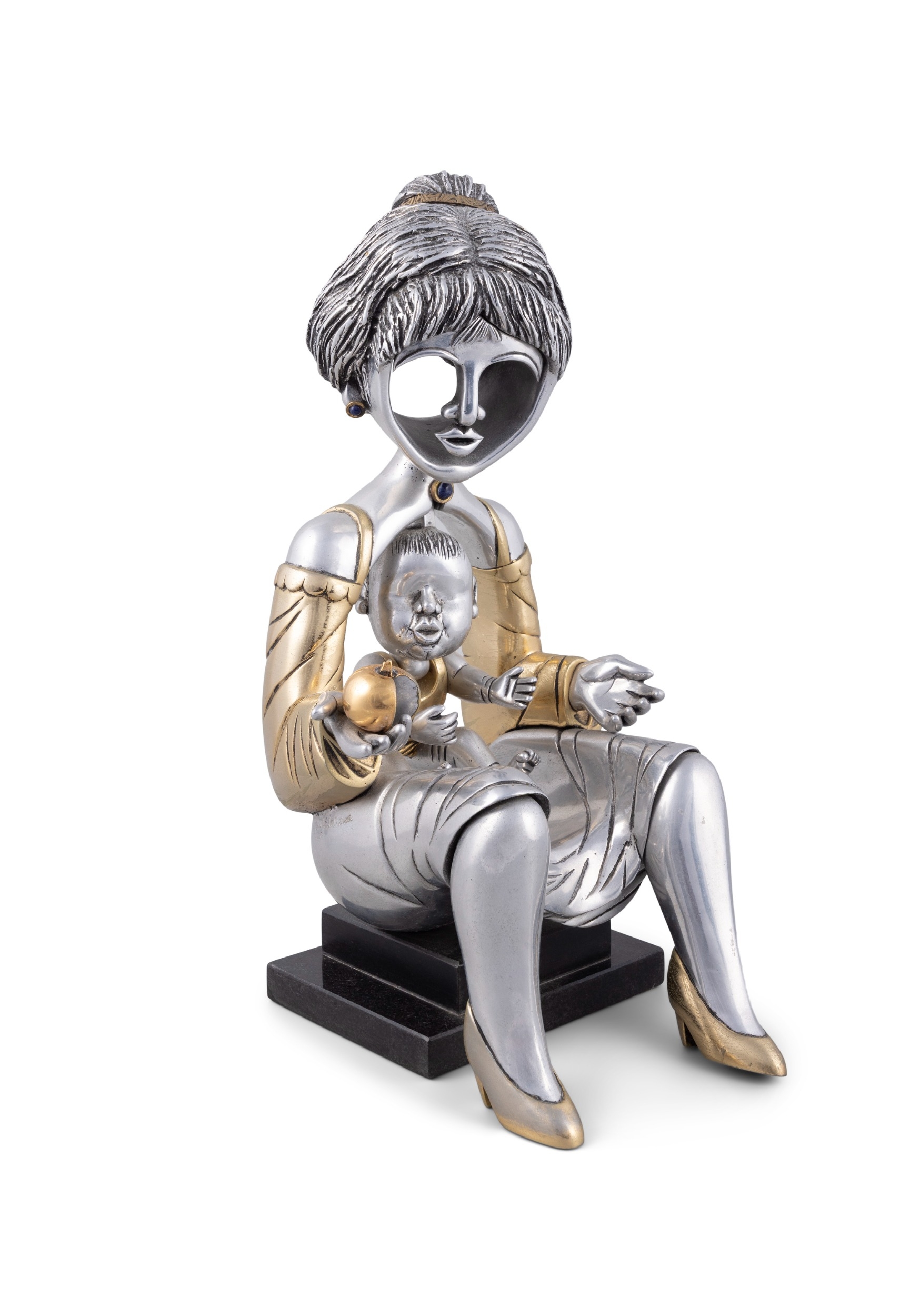 FRANK MEISLER (1929-2018) Mother and Child Silver and gold plate, on stepped black marble base, 42cm high (incl. base) Signed and numbered 4/120