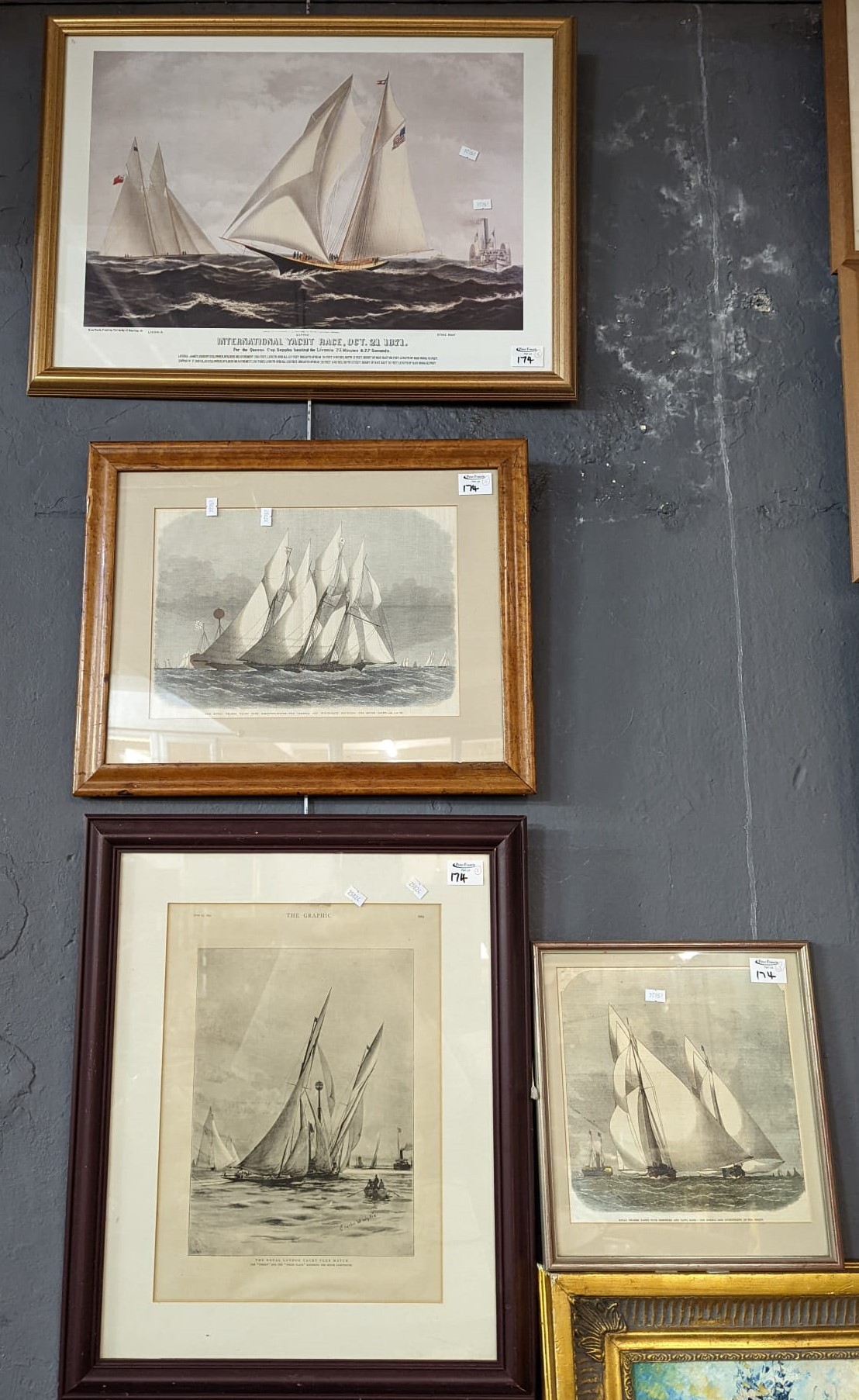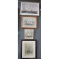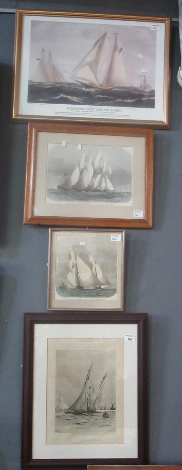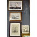 Group of four marine prints depicting J Class racing yachts and others. Various sizes. (4)