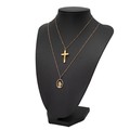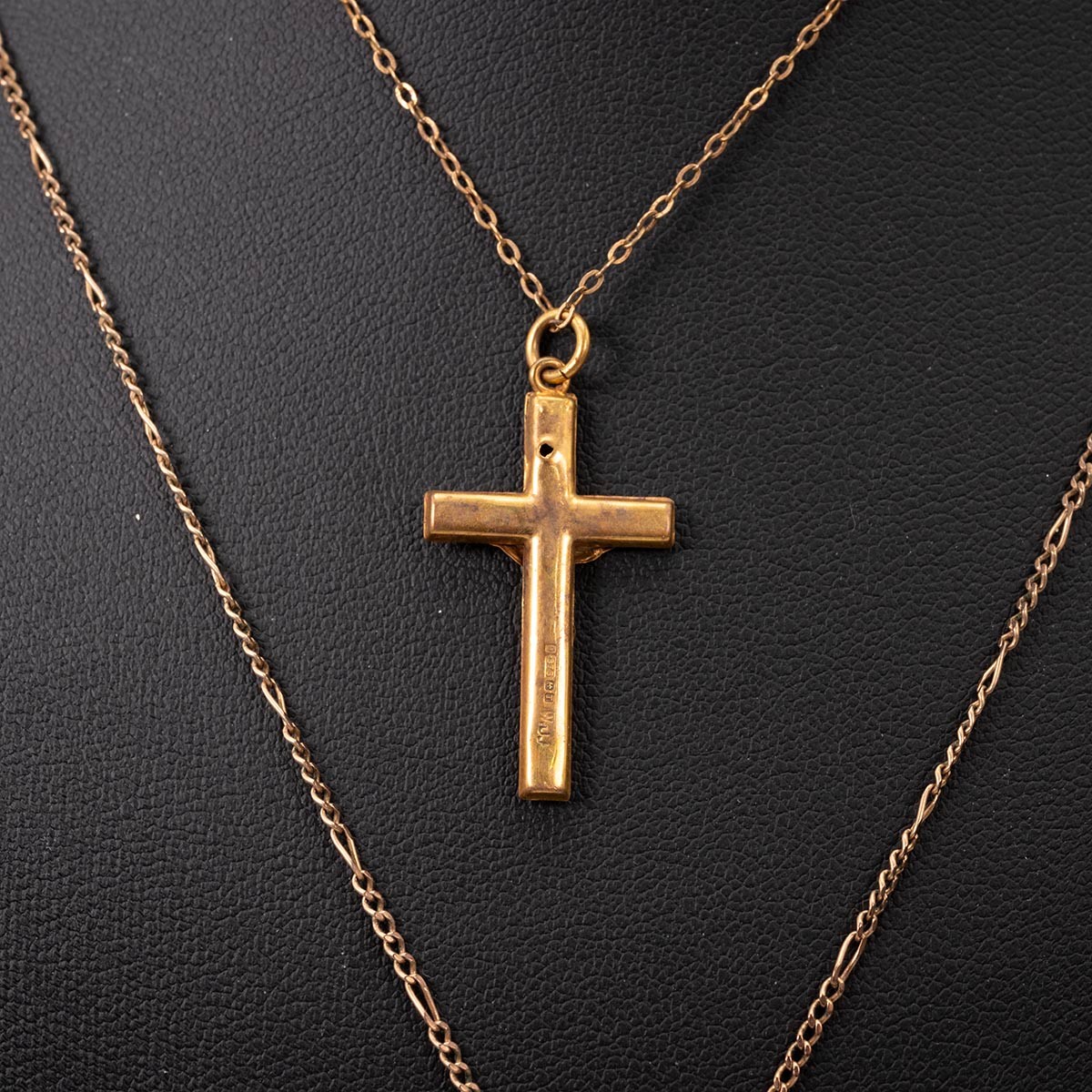 Two 9ct gold pendant necklaces, one with a cross, L54cm, and an open St Christopher, L52cm, gross weight 5.32 grams.