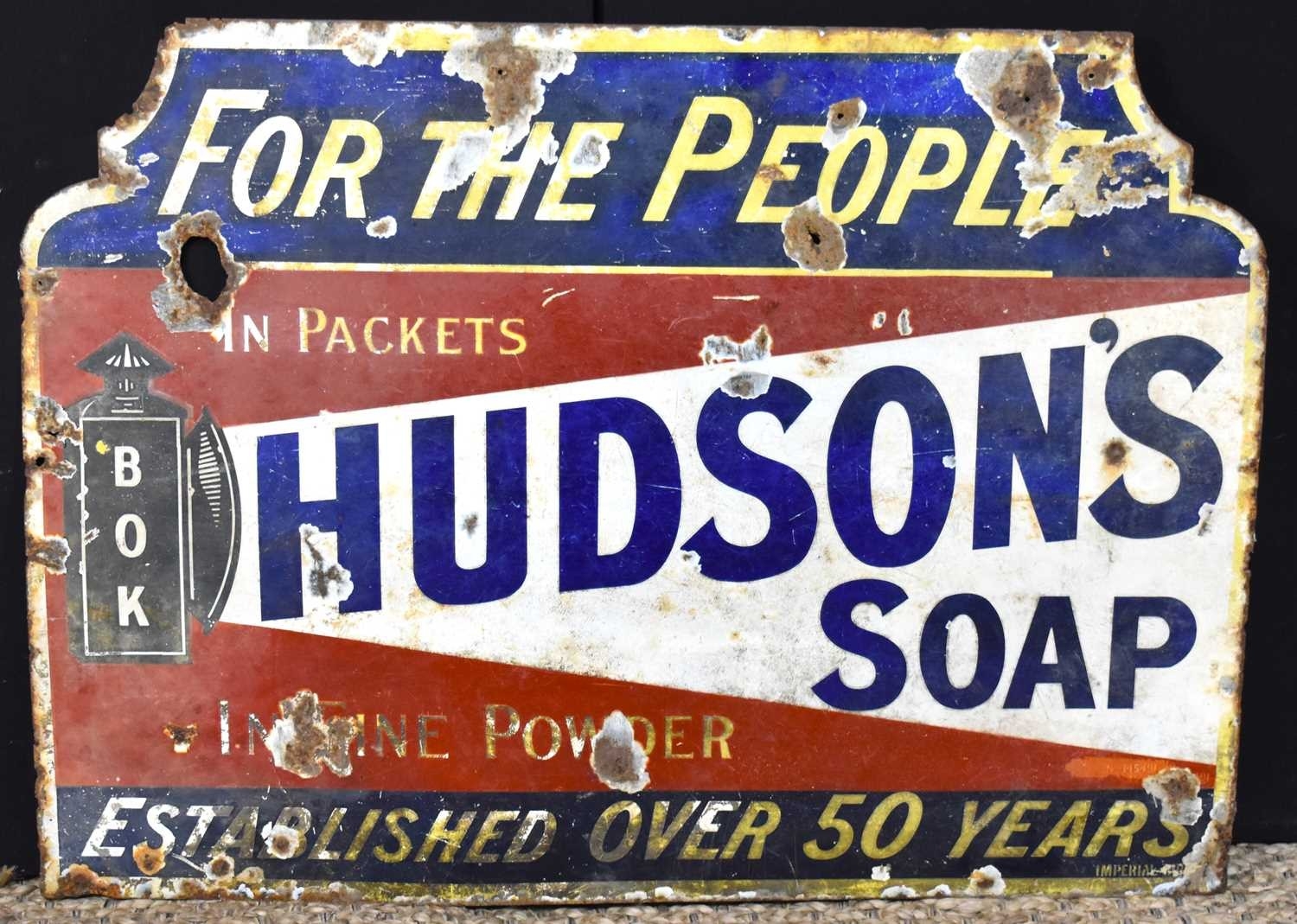 Enamel Signs: A vintage 'Hudsons Soap, For The People' enamel advertising sign, 96cm by 71.5cm.