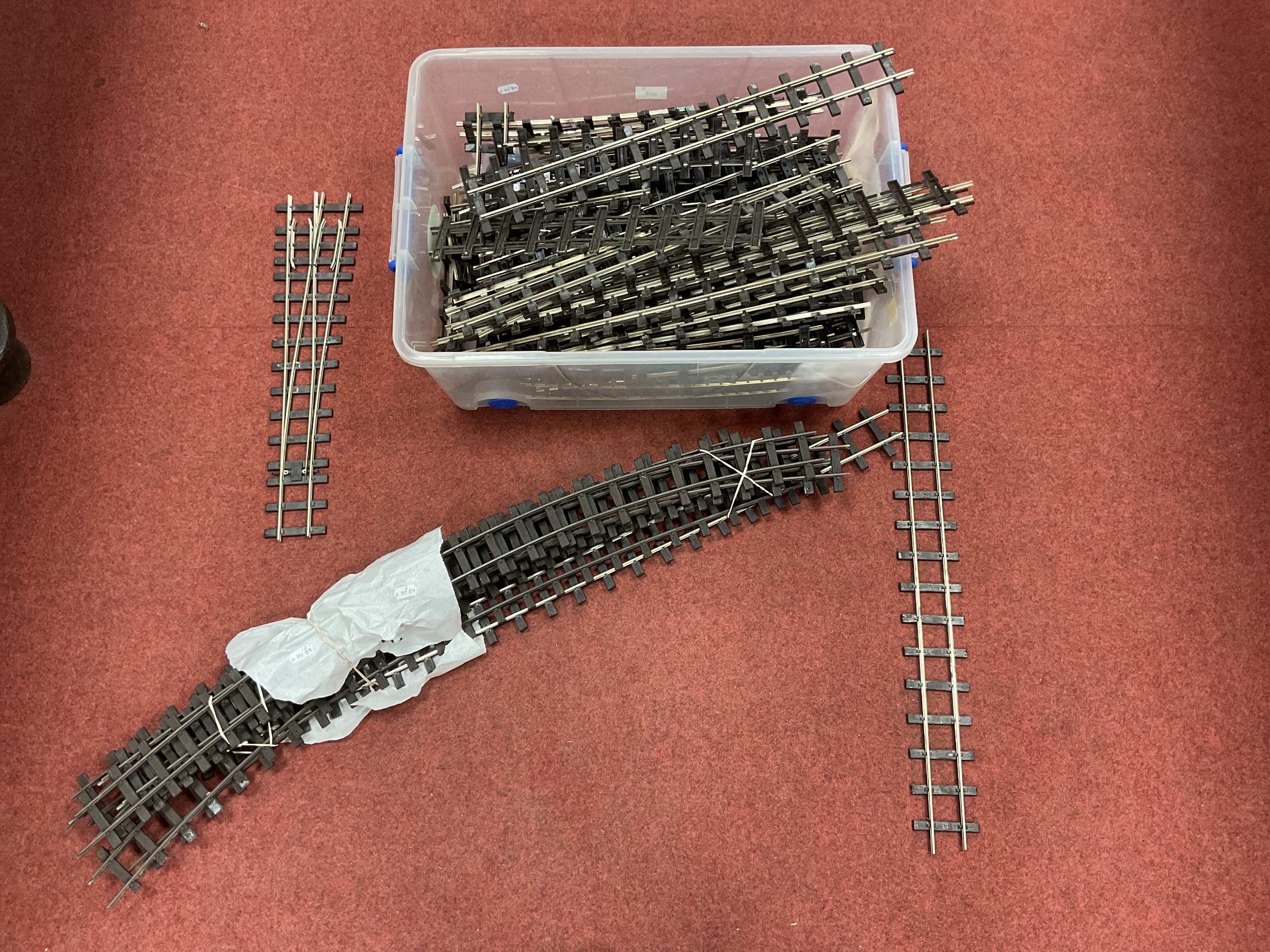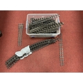 Approximately Seventy Pieces of SM-32 Narrow Gauge Track (16mm scale), by Peco and others, including a Peco right-hand point and seven long curves and a long straight; mostly used and playworn.