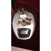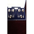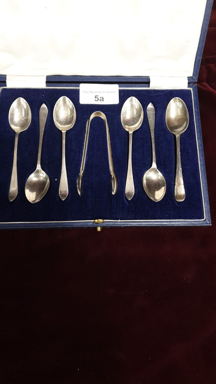 5 silver Hall marked sheffield spoons and matching tongs together with silver Hall marked spoon.