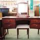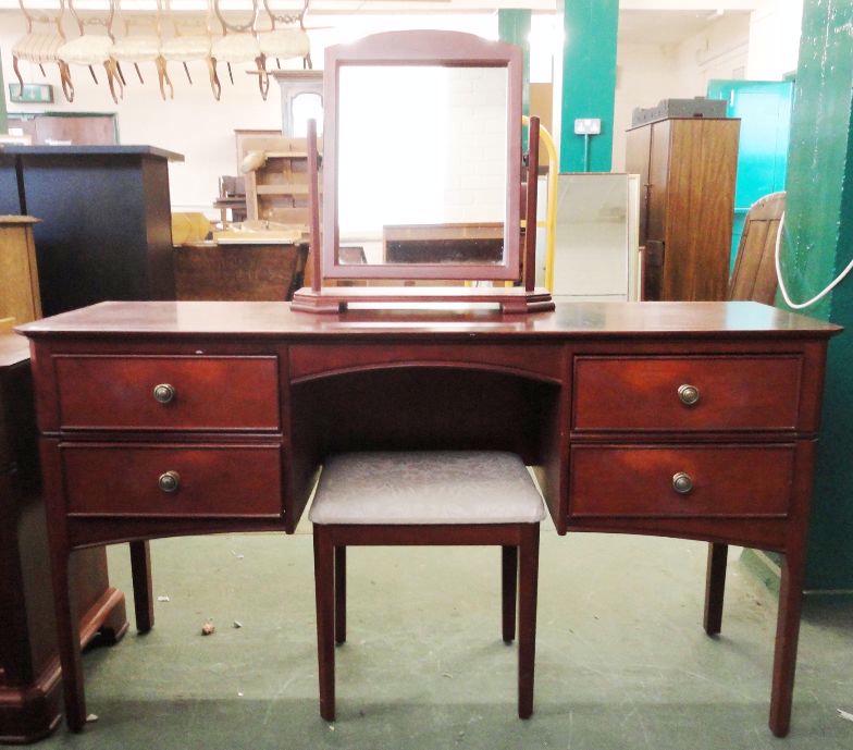 Modern Mahogany Effect Dressing Table with 2 banks short drawers on faceted supports, Matching Stool & Dressing Table Mirror by St. Michael from Marks & Spencer (3)