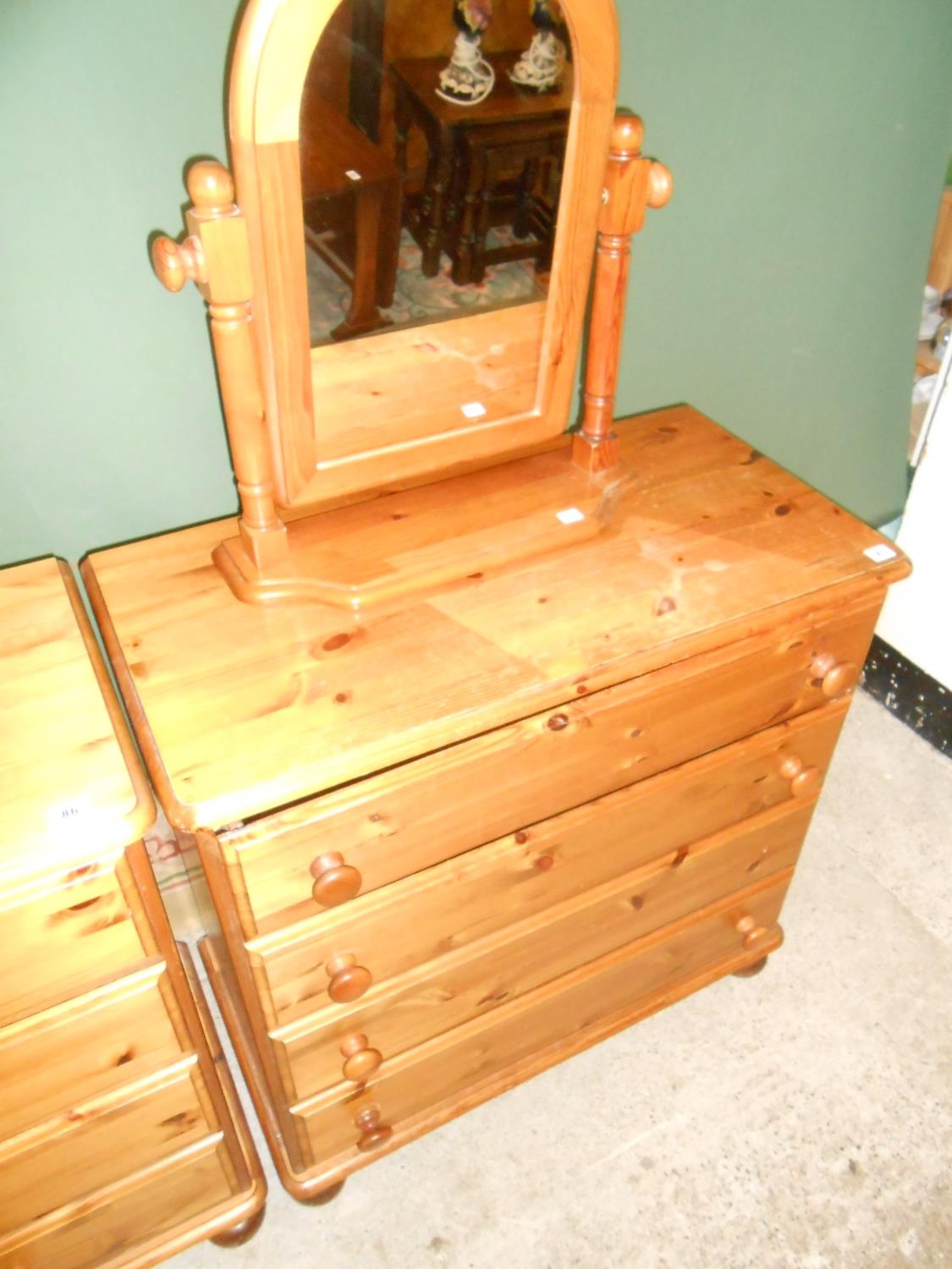 A modern pine chest fitted four drawers and a modern pine framed swing toilet mirror