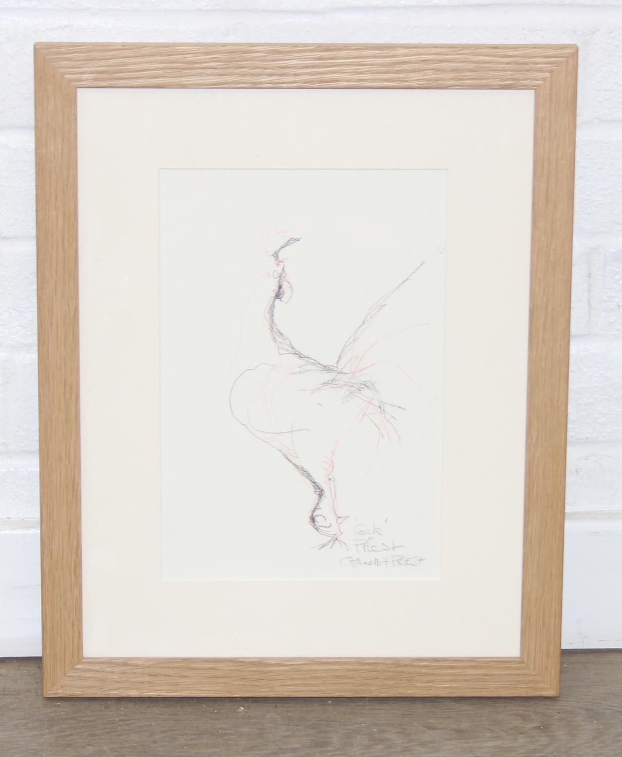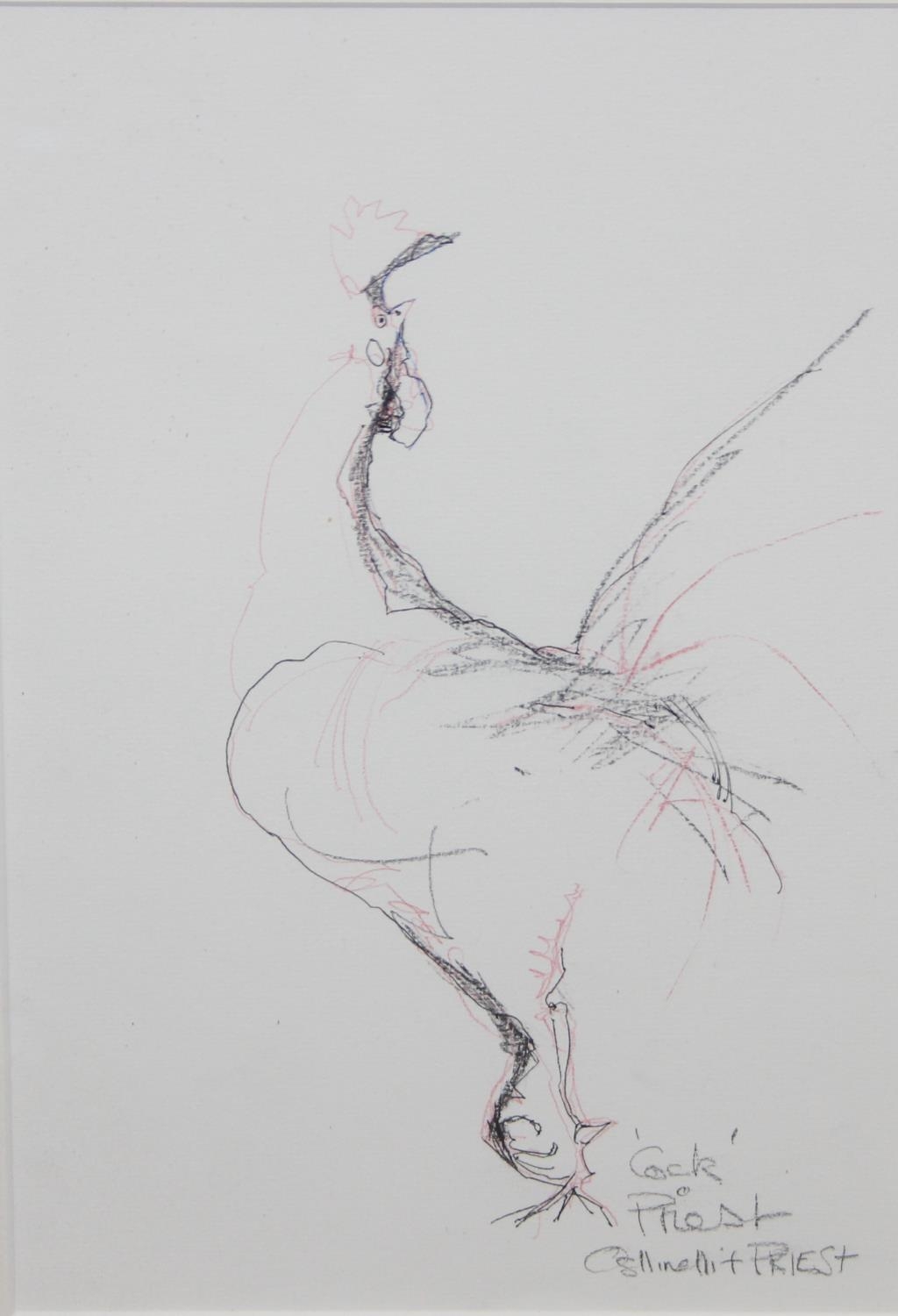 Ostinelli & Priest - a pencil and ink sketch entitled "Cock", likely a sketch for a ceramic model signed lower right and label verso, 43cm x 34cm