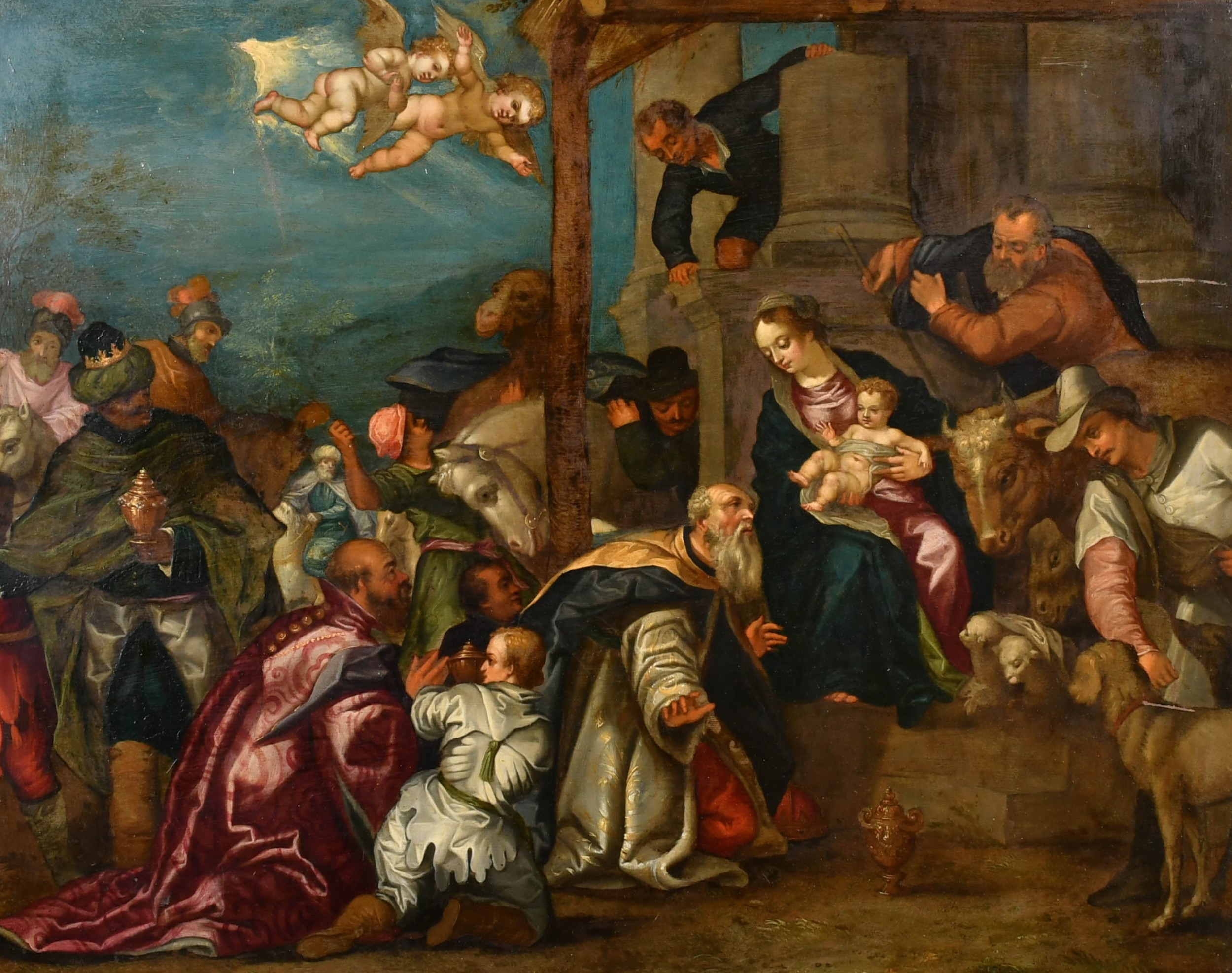 Hans Rottenhammer (1564-1625) German. The Adoration of the Magi, Oil on copper, 14.65" x 18.4" (37.3 x 46.8cm). Note: The copper bears the mark of P. Stas 1607 and the hand symbol denoting Antwerp