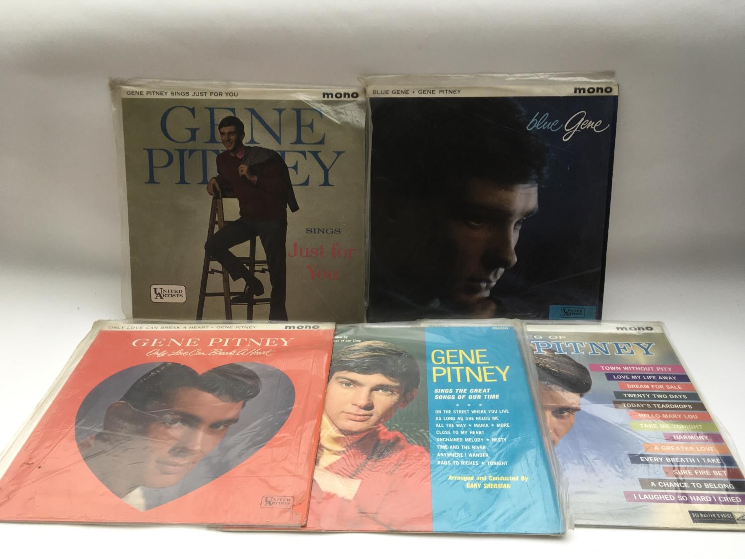 Five Gene Pitney LPs including 'Blue Gene', 'Only Love Can Break A Heart' and others.