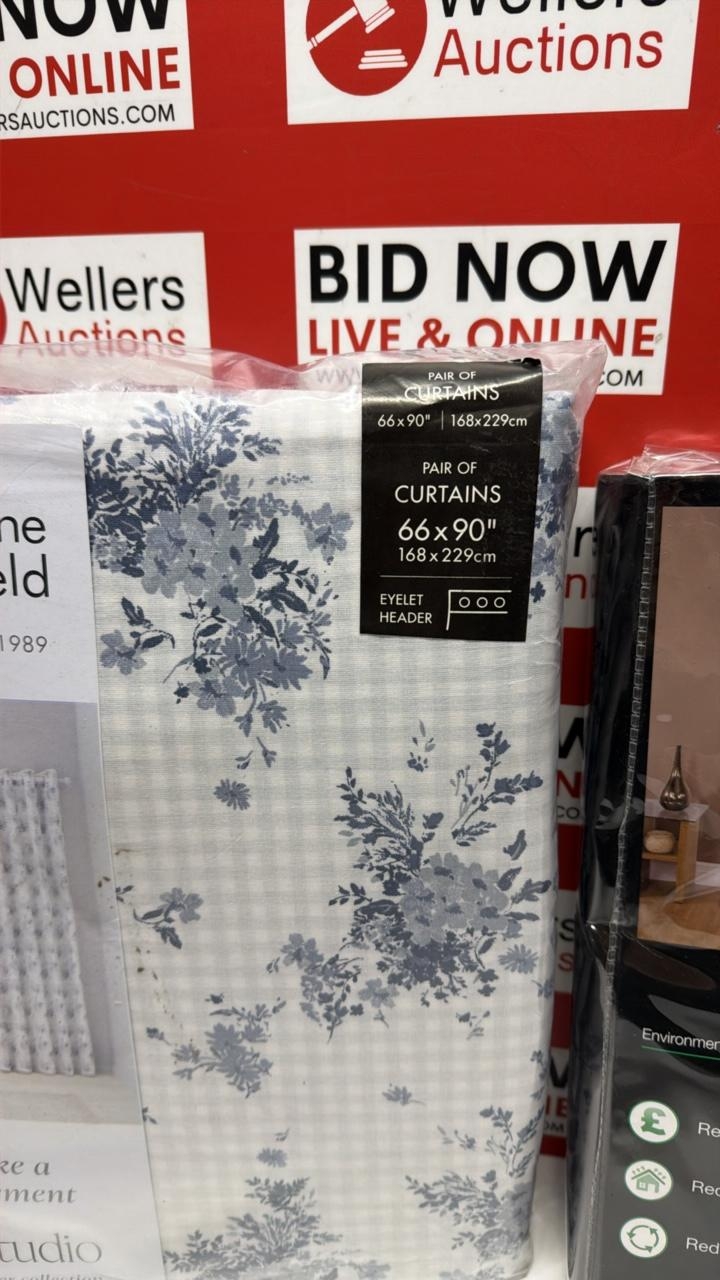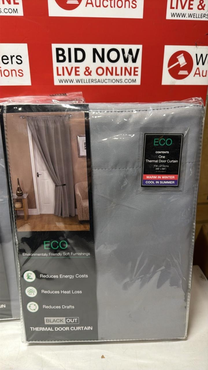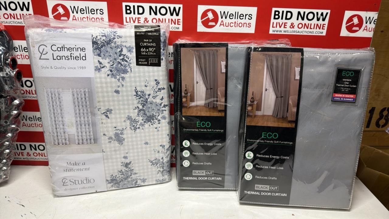 PAIR OF CURTAINS BY CATHERINE LANSFIELD 66" BY 90" & TWO ECO DOOR CURTAINS 45" BY 84"