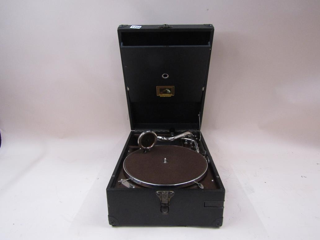 THE MASTERS VOICE PORTABLE WIND UP GRAMOPHONE