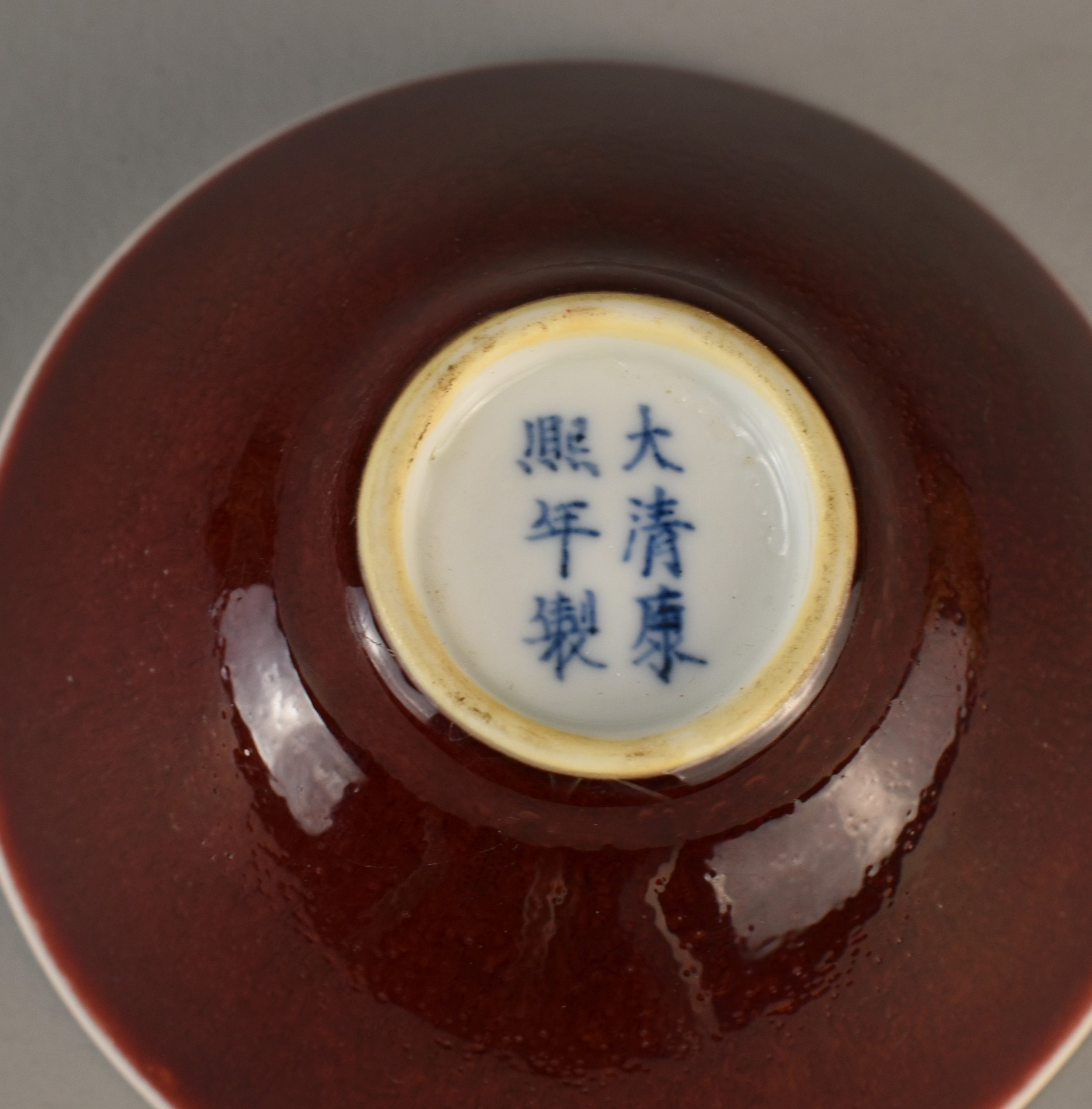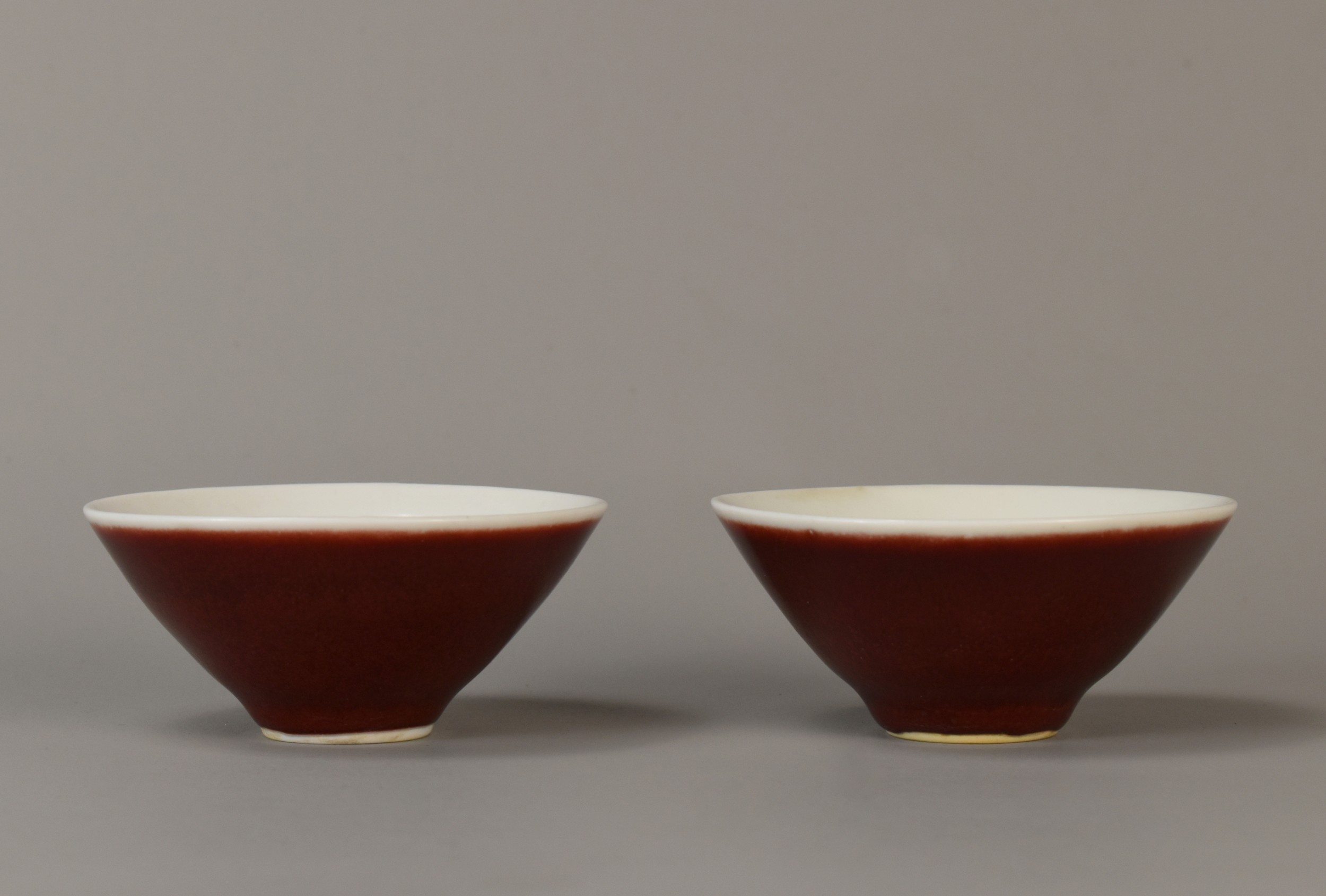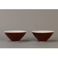 Two Chinese Ox-blood glazed porcelain small bowls.