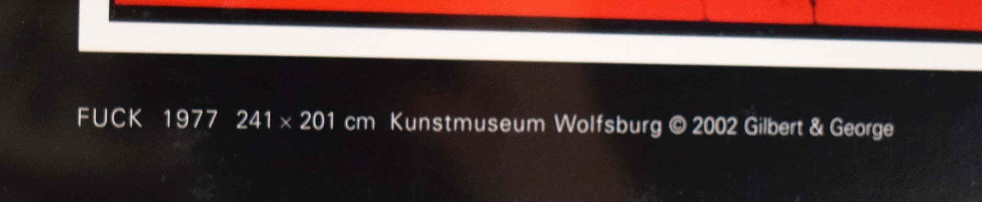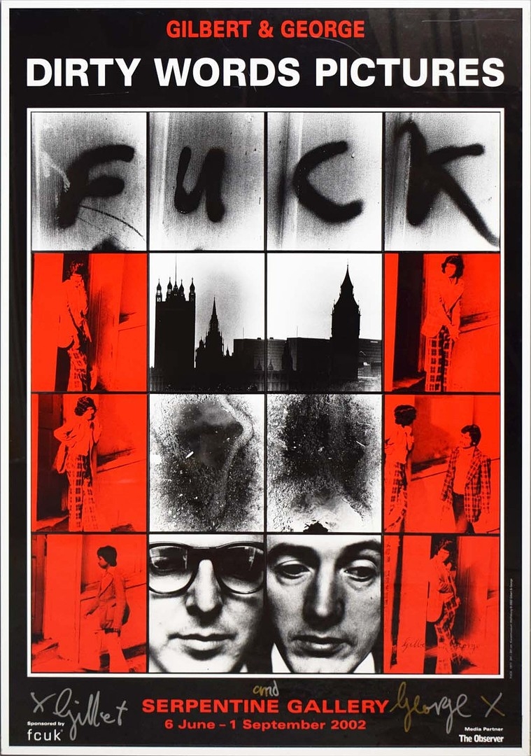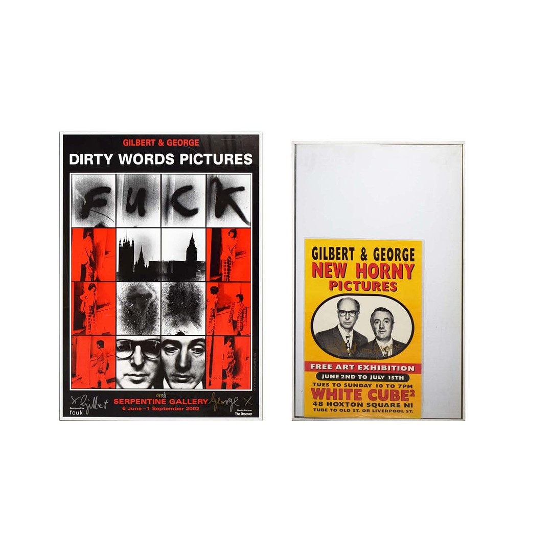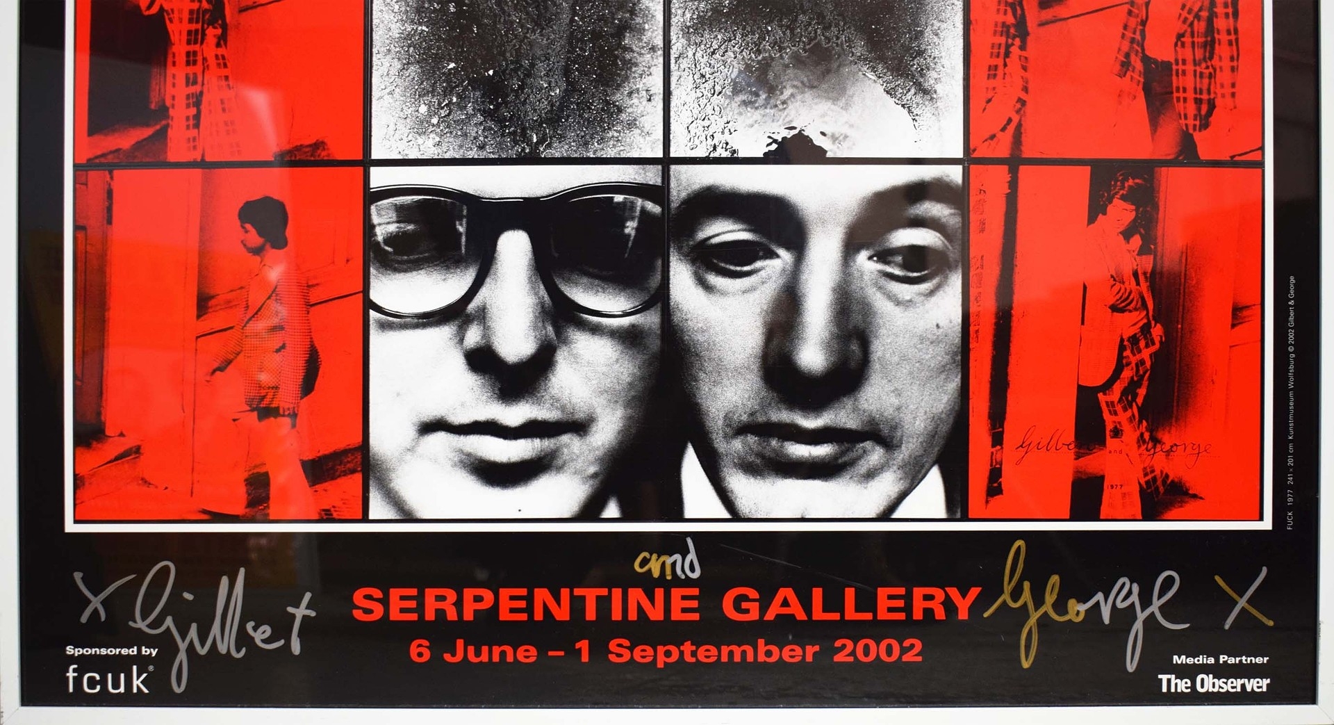 GILBERT & GEORGE. SERPENTINE GALLERY POSTER (2). signed, 101cm x 70cm, together with another unframed signed poster, 60cm x 42cm.