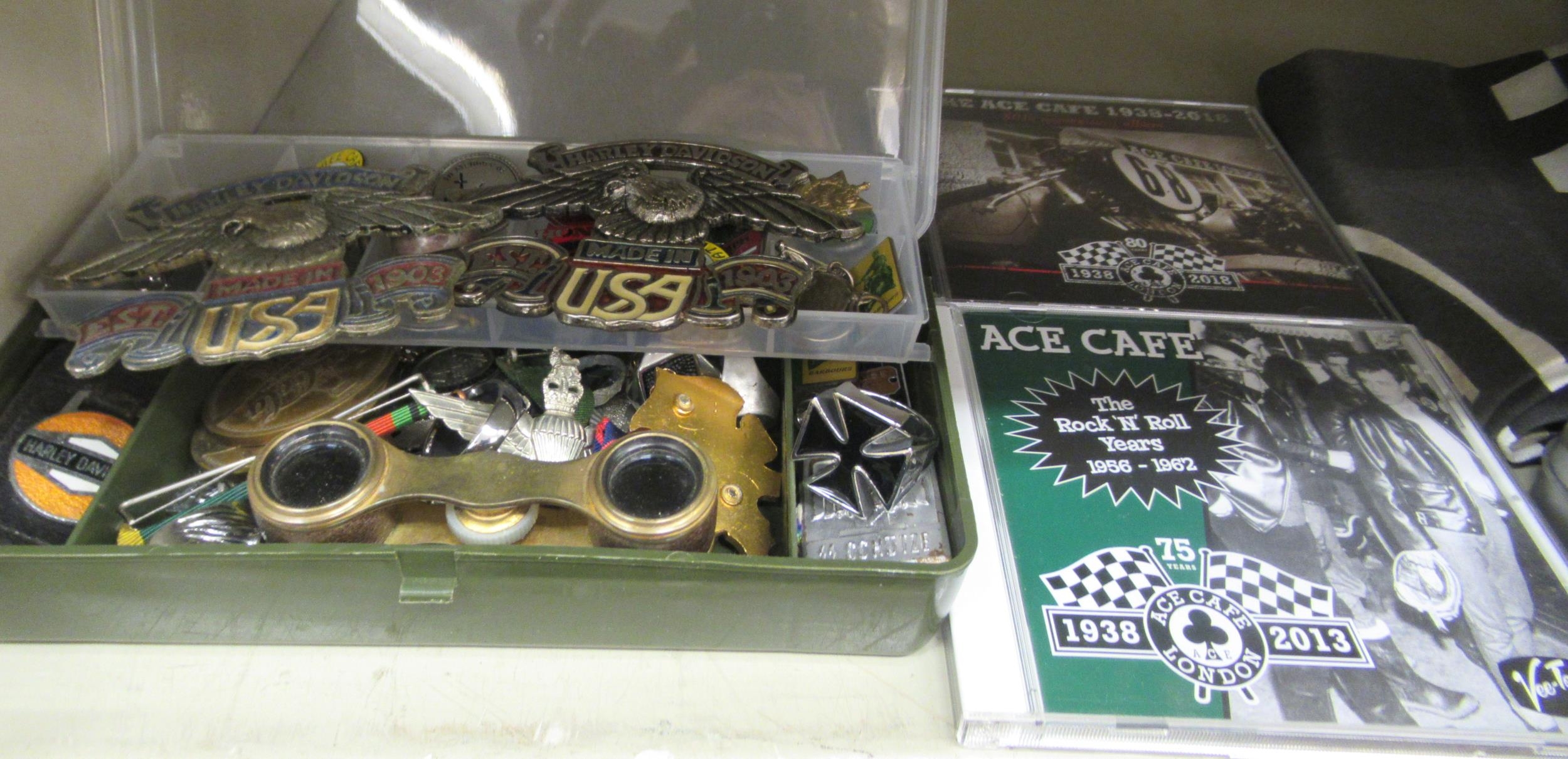 An uncollated collection of 20thC enamelled and other badges: to include Harley Davidson and other associated collectables
