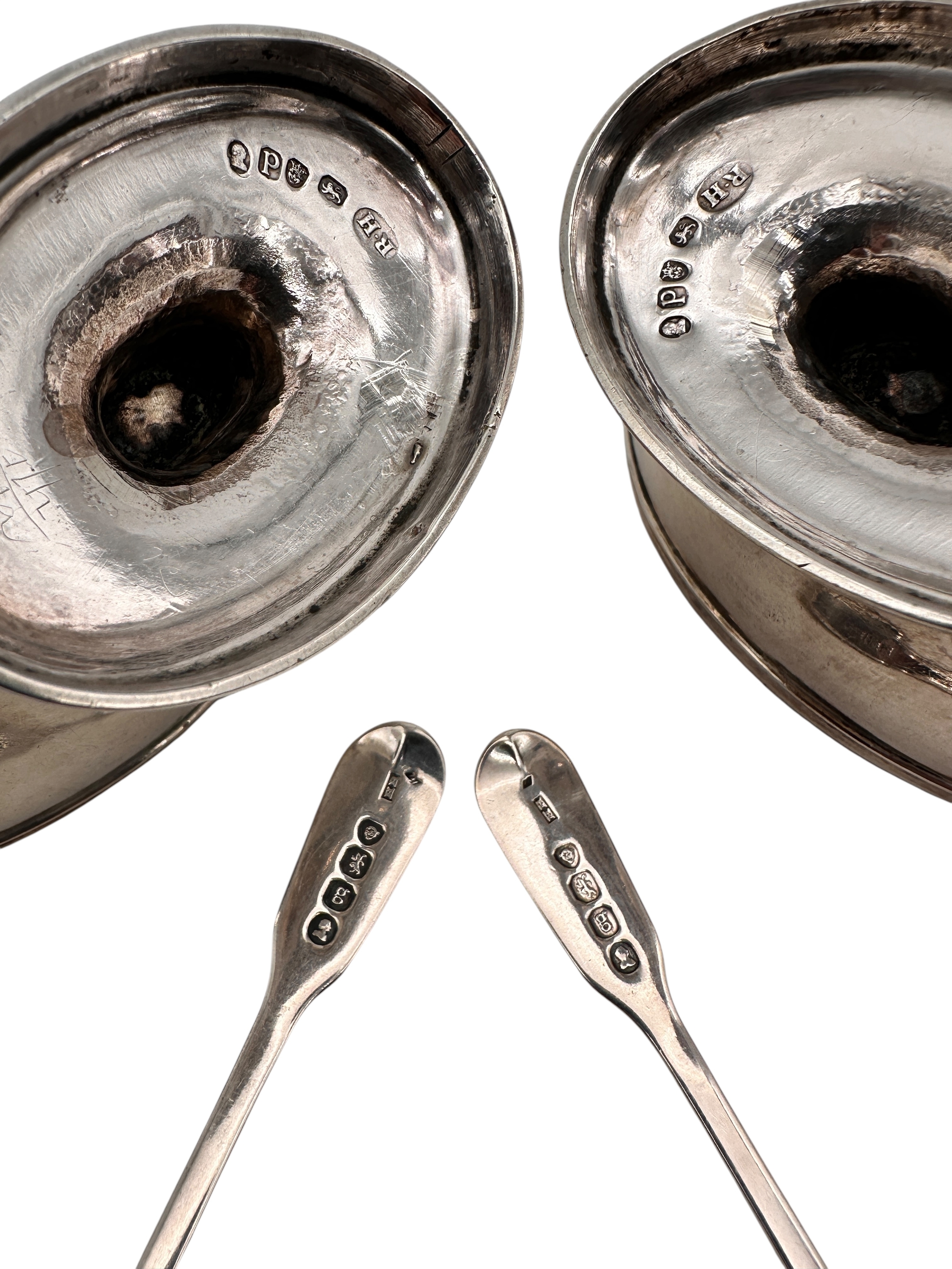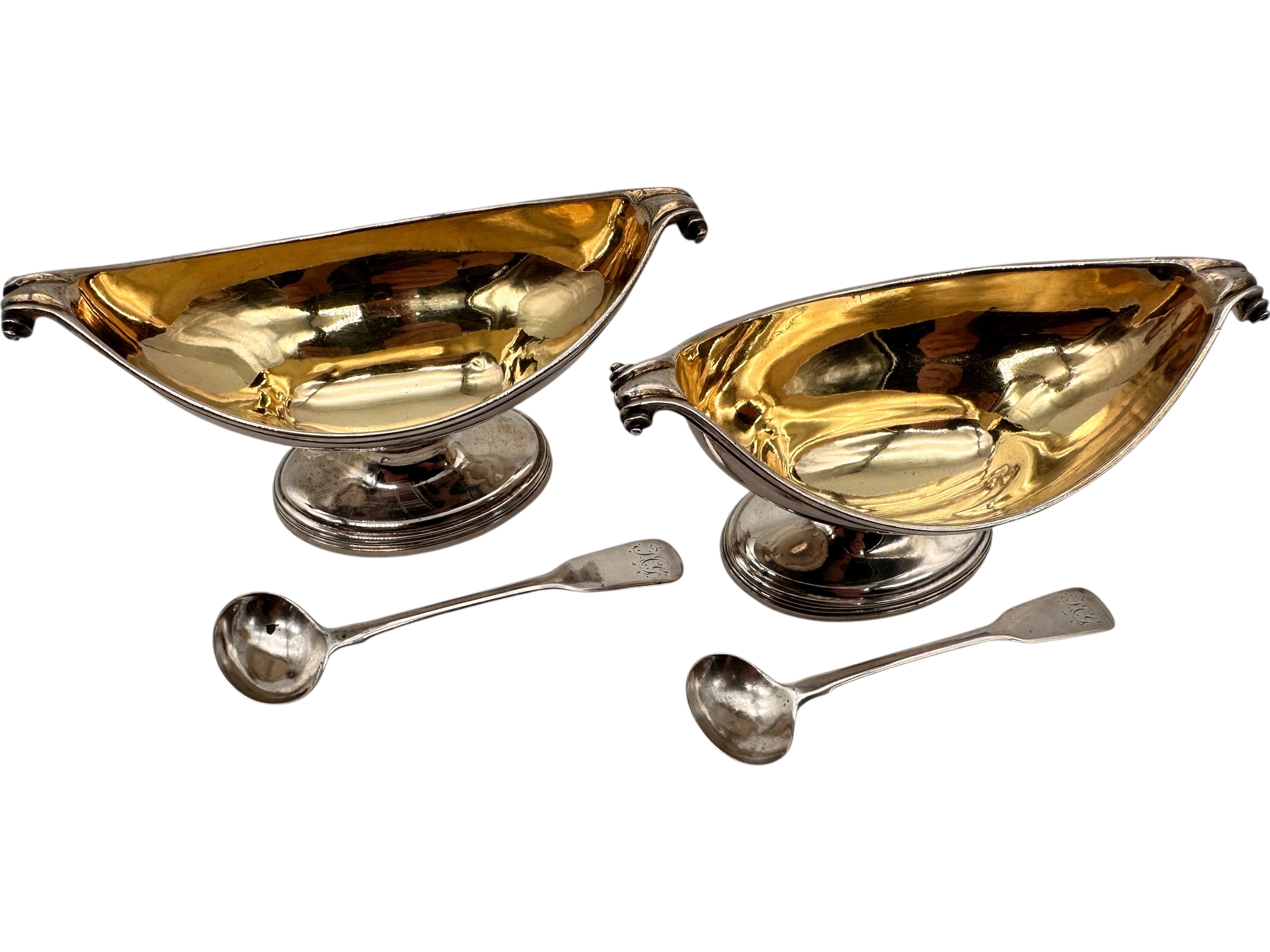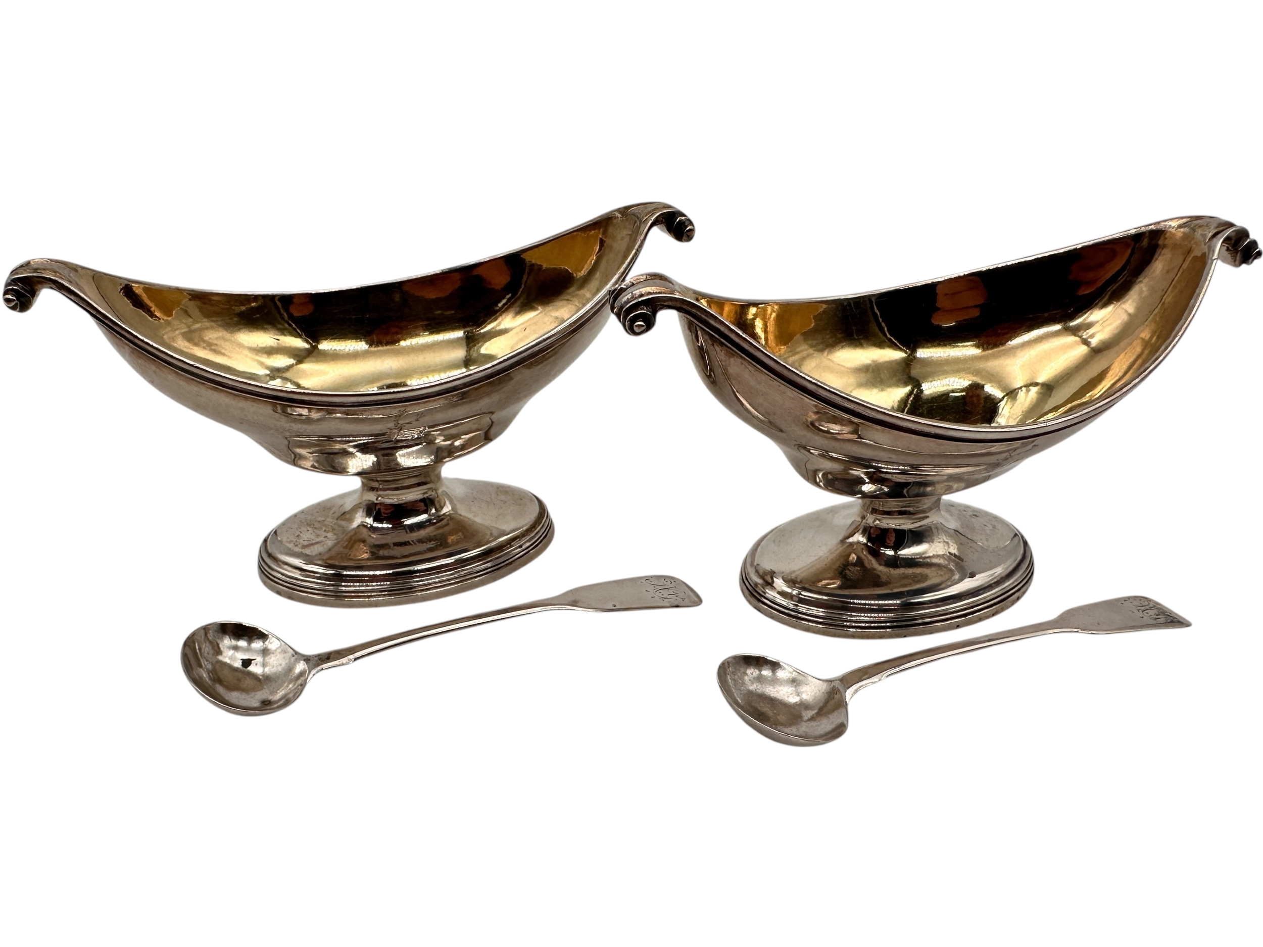Pair of Georgian Silver Salts with Matched Pair of Silver Spoons. 199g