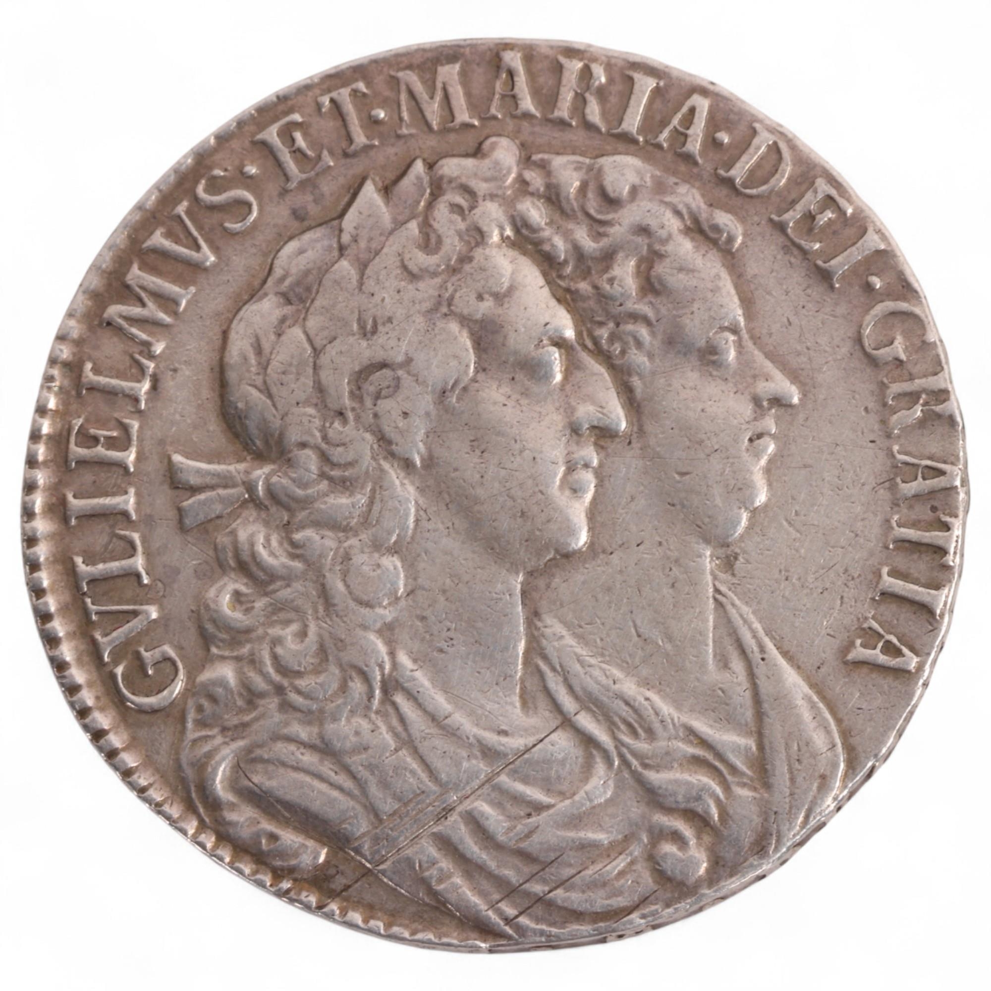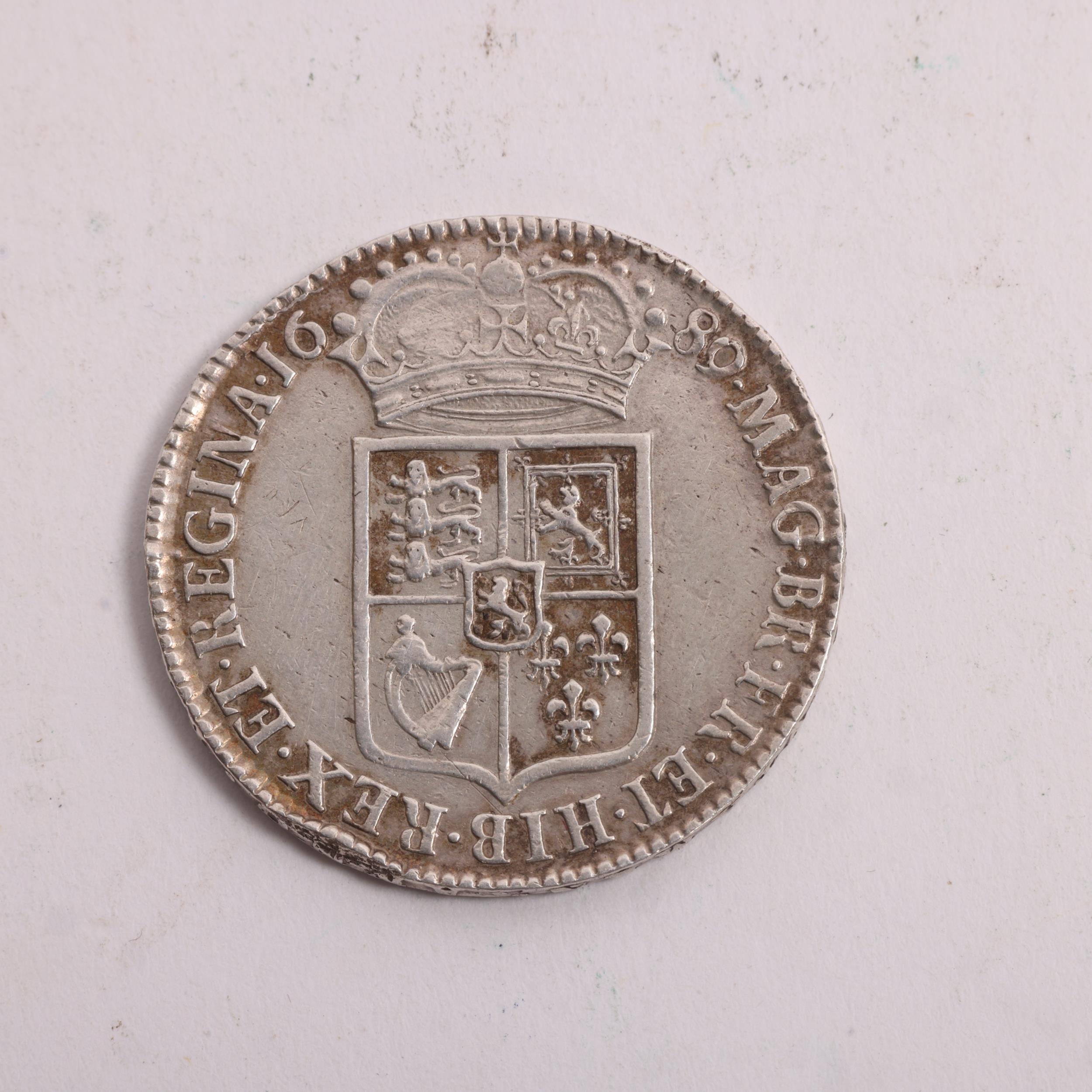 A William and Mary 1689 silver Halfcrown coin, dia 33mm. 14.7g
