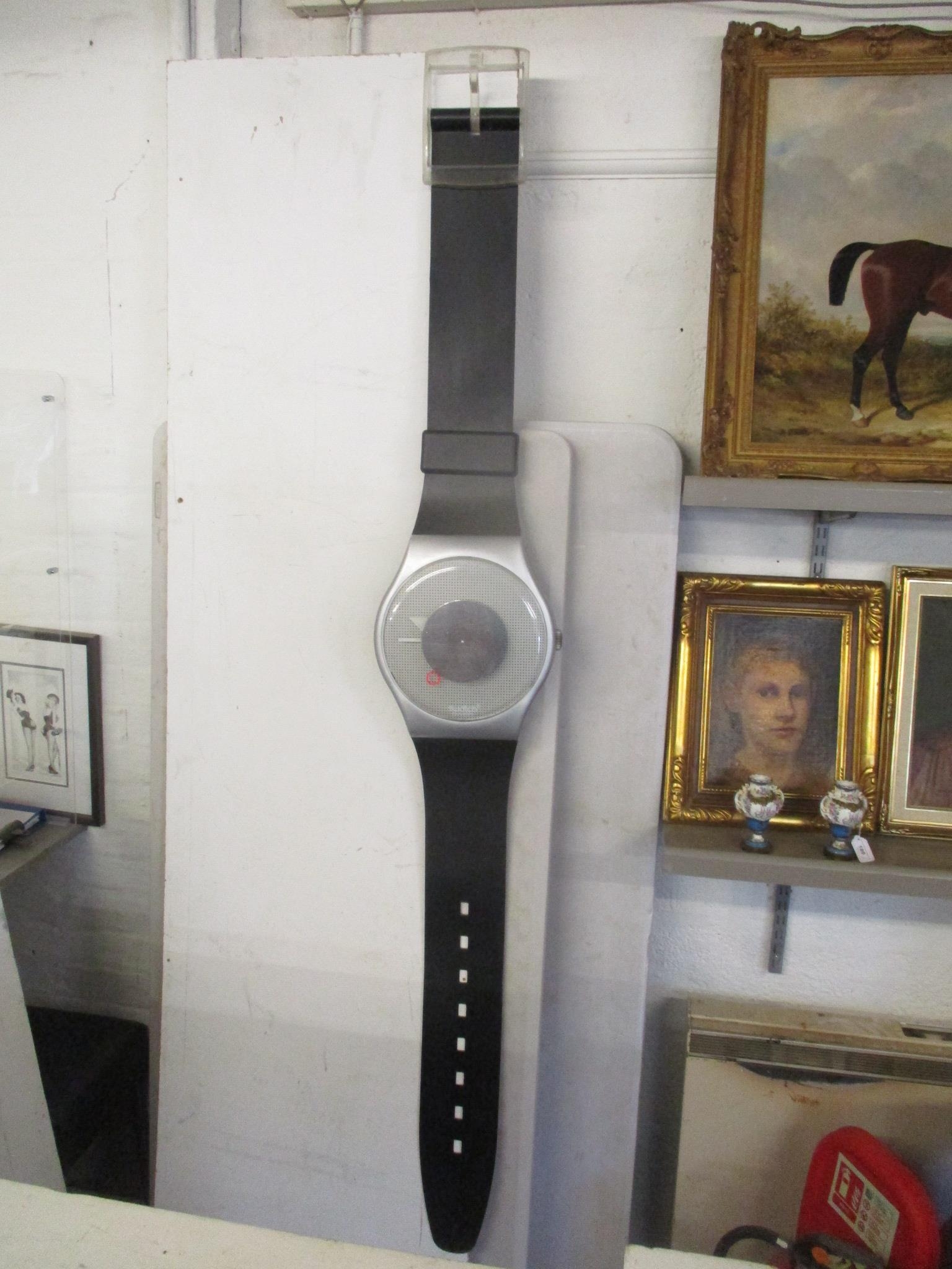 A large Swatch wall hanging clock 209cm h x 30cm wLocation: STAIRS