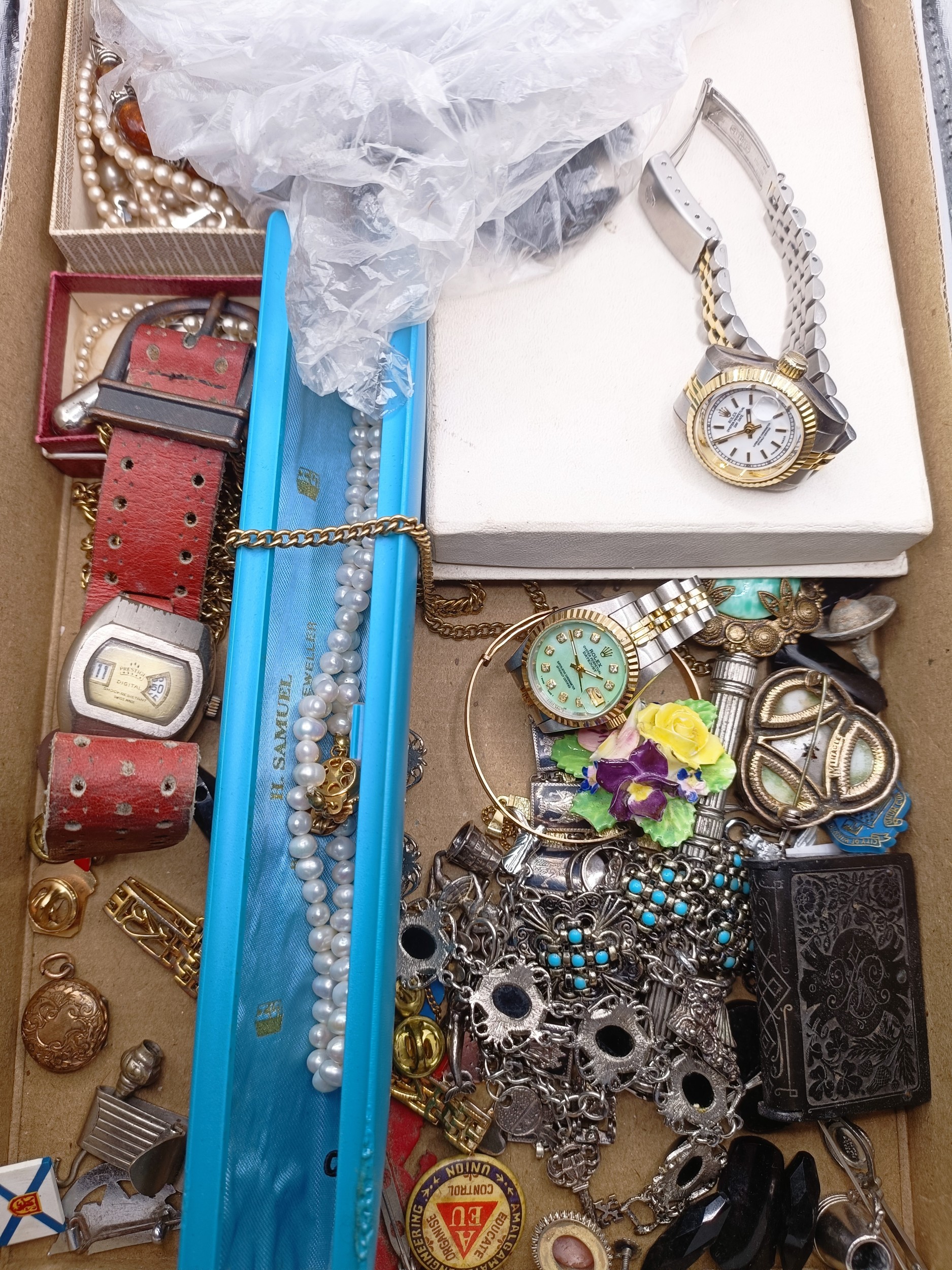 A silver charm bracelet, and assorted costume jewellery (box)
